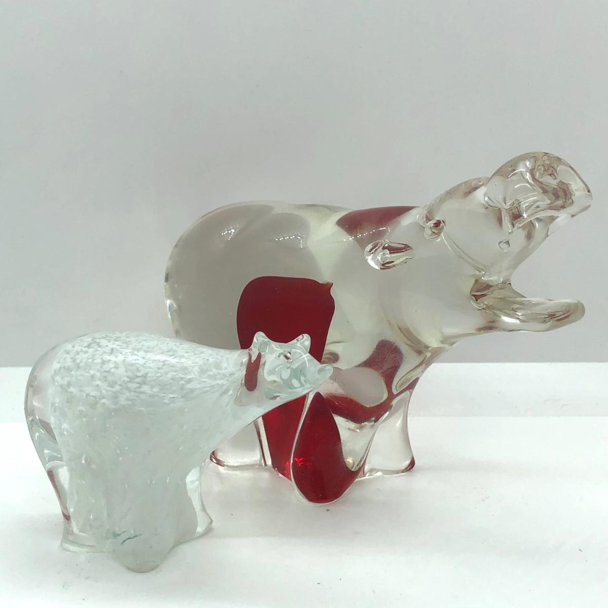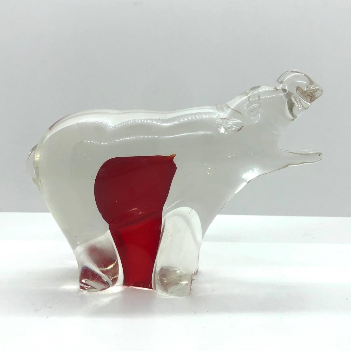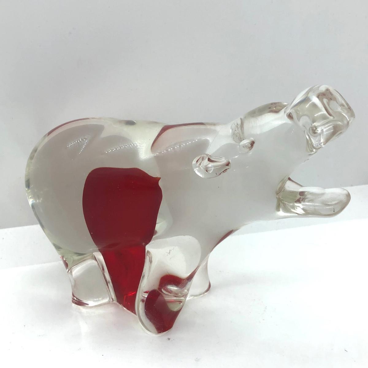 LOT 57D: Murano Style Glass Hippo & Glass Polar Bear Made in Sweden