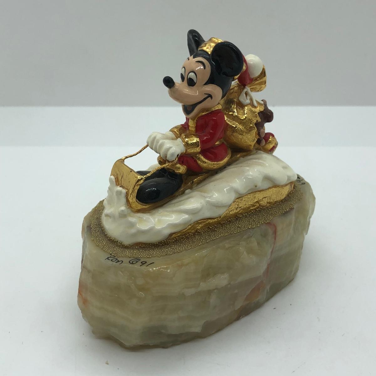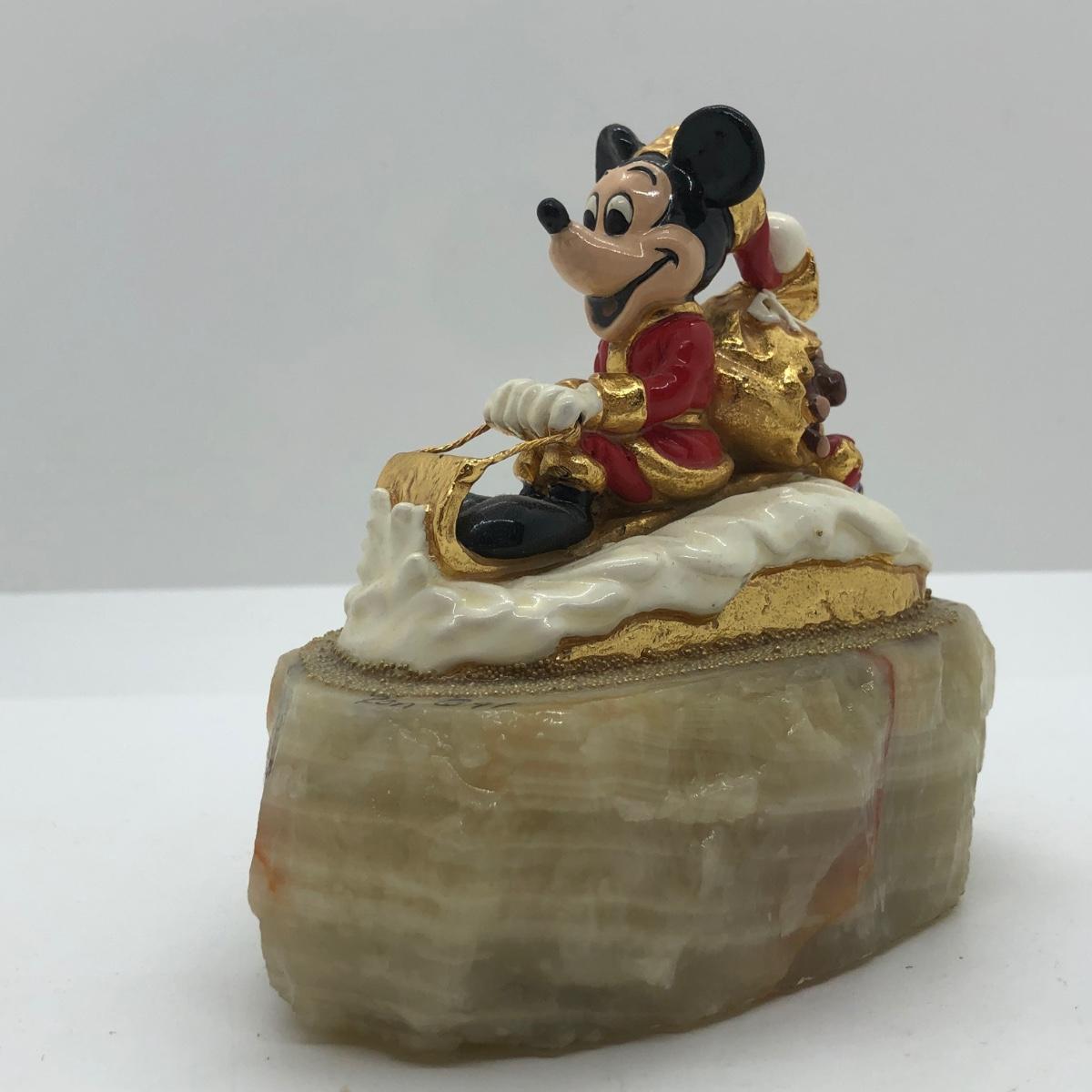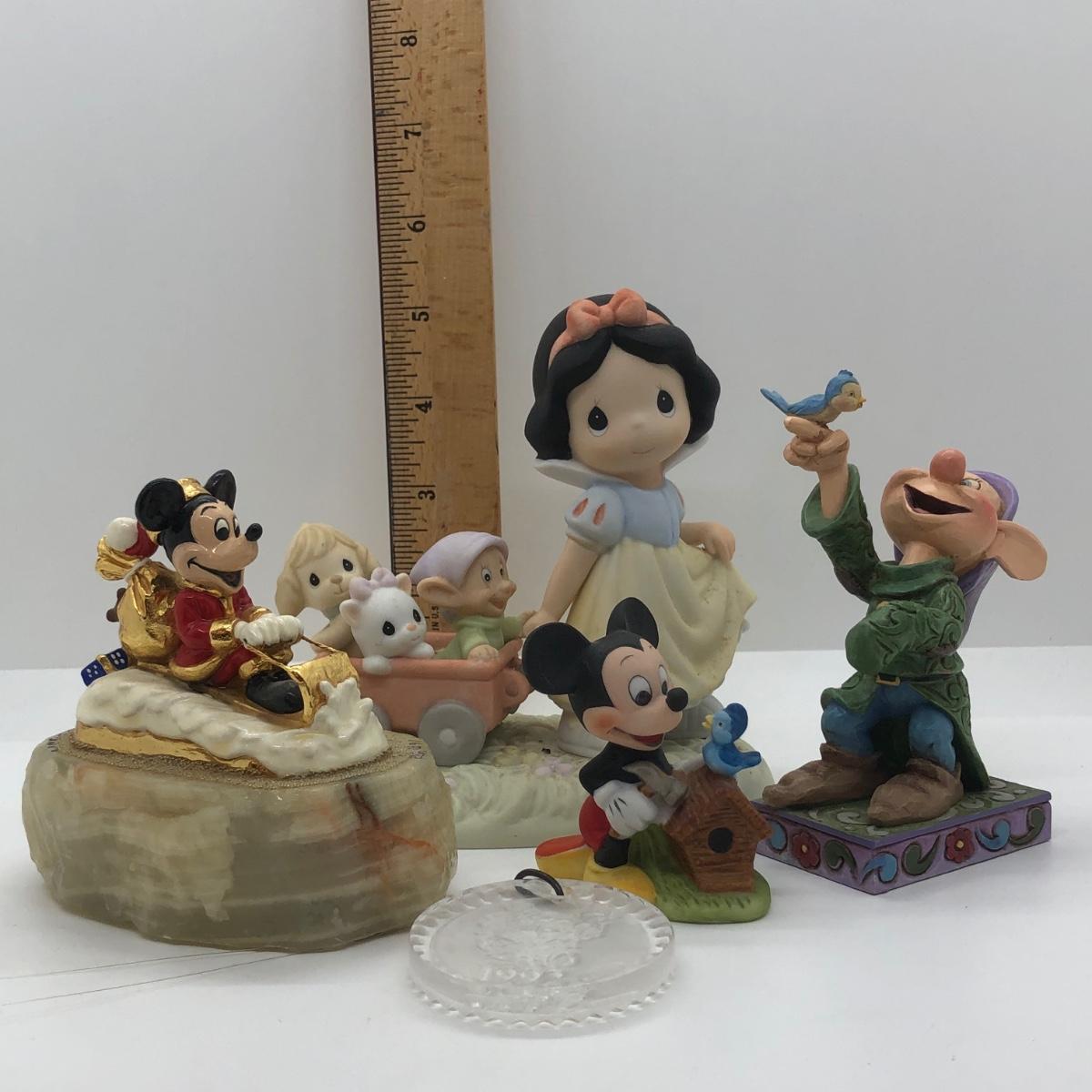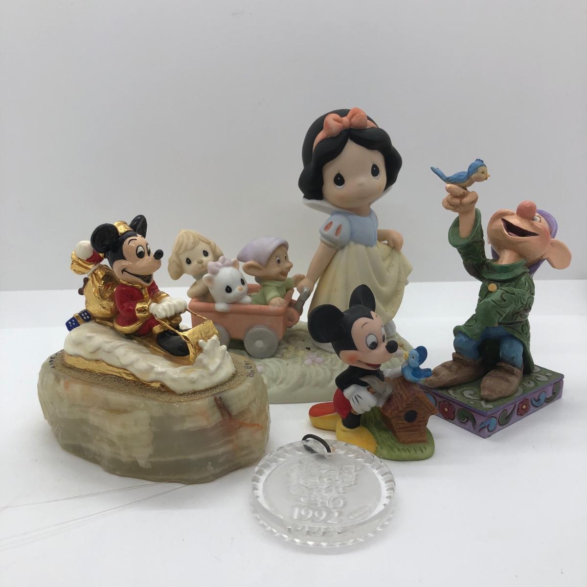 LOT 66K: Disney Collection - Signed 1991 Ron Lee Mickey Santa, 1992 Waterford Crystal Ornament (w/ Box), 2006 Precious Moments #630038 "Heigh Ho, it's Off to Play We Go," Jim Shore #4013982 Dopey
