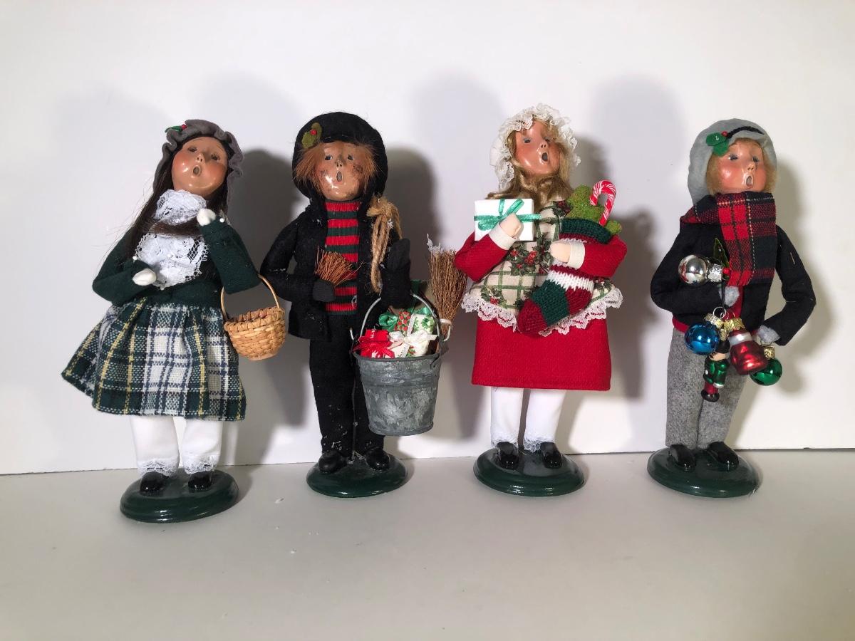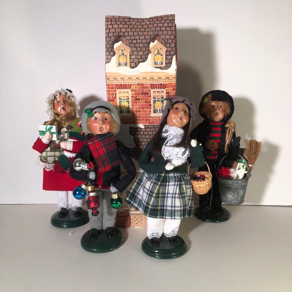LOT 78G: Byer's Choice The Carolers w/ Box - 1992 Chimney Boy, 2021 Stockings Family Girl & 2003 Girl w/ Ornaments