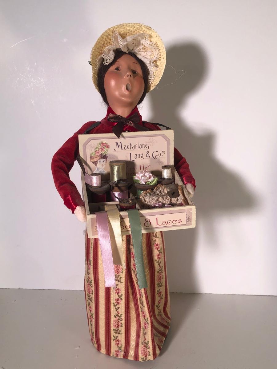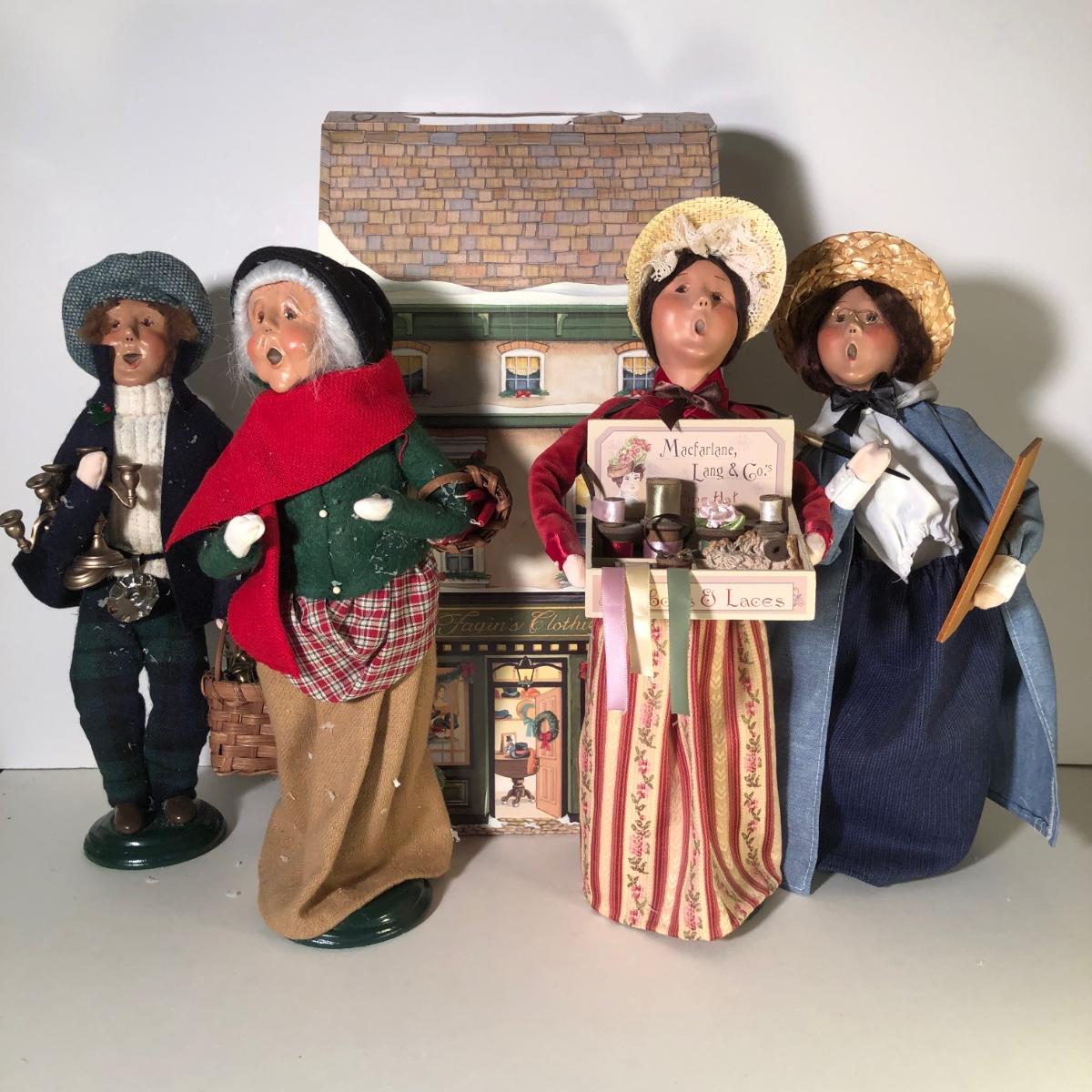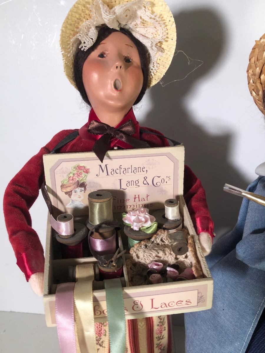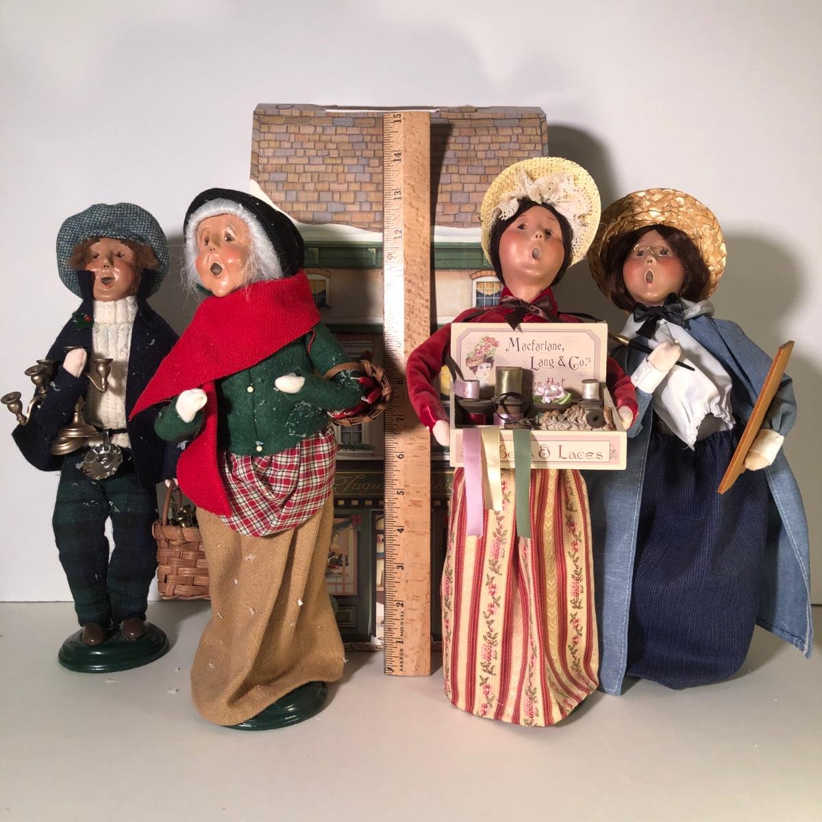 LOT 79G: Byer's Choice The Carolers w/ Box - 2007 Lace and Ribbon Vendor, 2000 Artist, 1998 Woman w/ Candles & 1998 Candlestick Maker