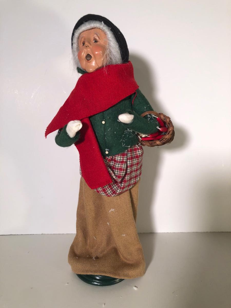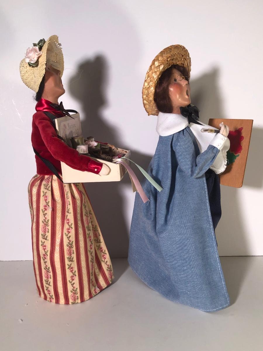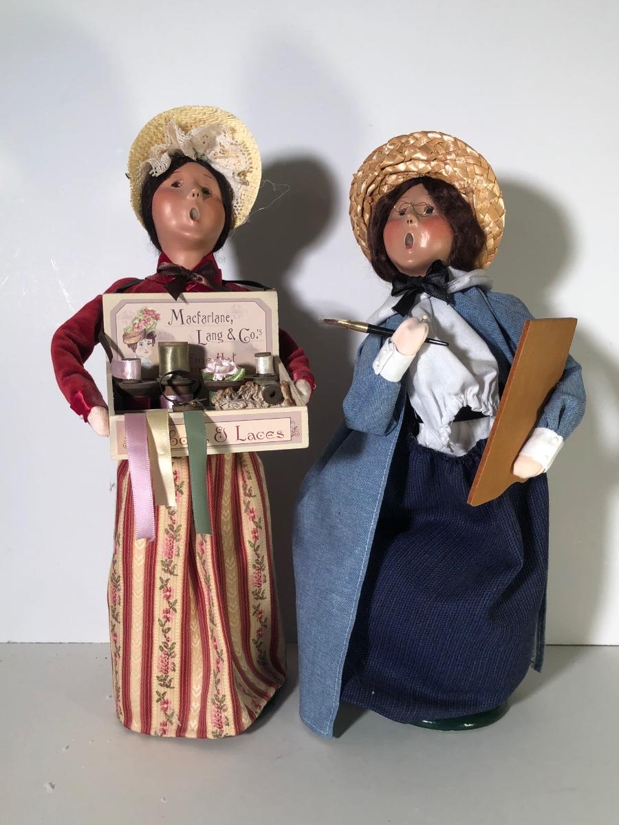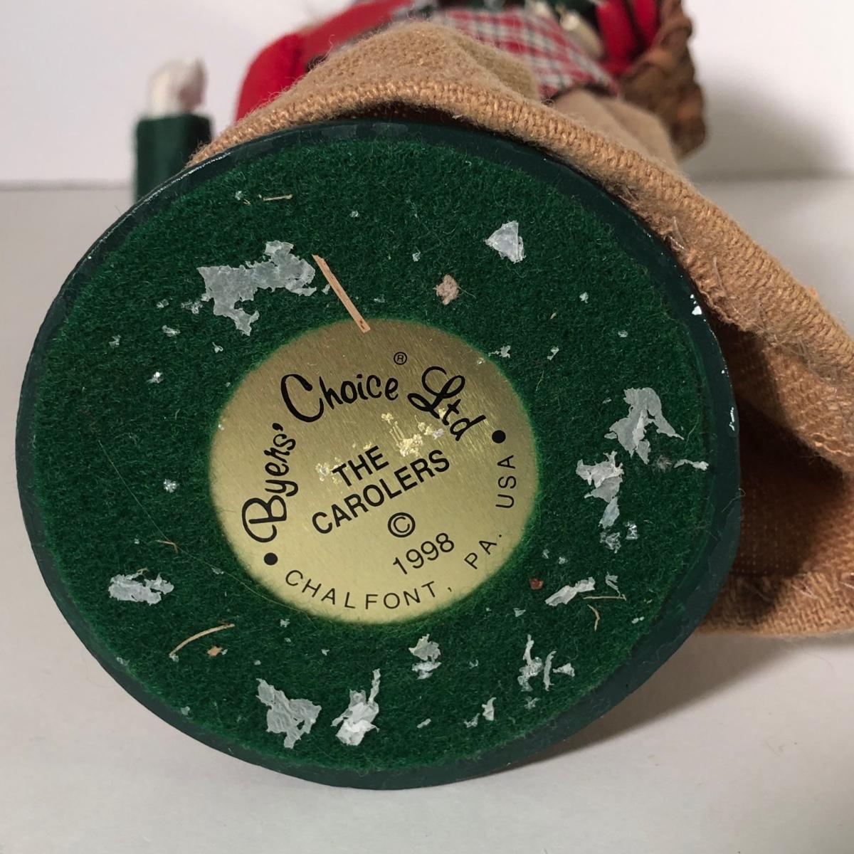 LOT 79G: Byer's Choice The Carolers w/ Box - 2007 Lace and Ribbon Vendor, 2000 Artist, 1998 Woman w/ Candles & 1998 Candlestick Maker