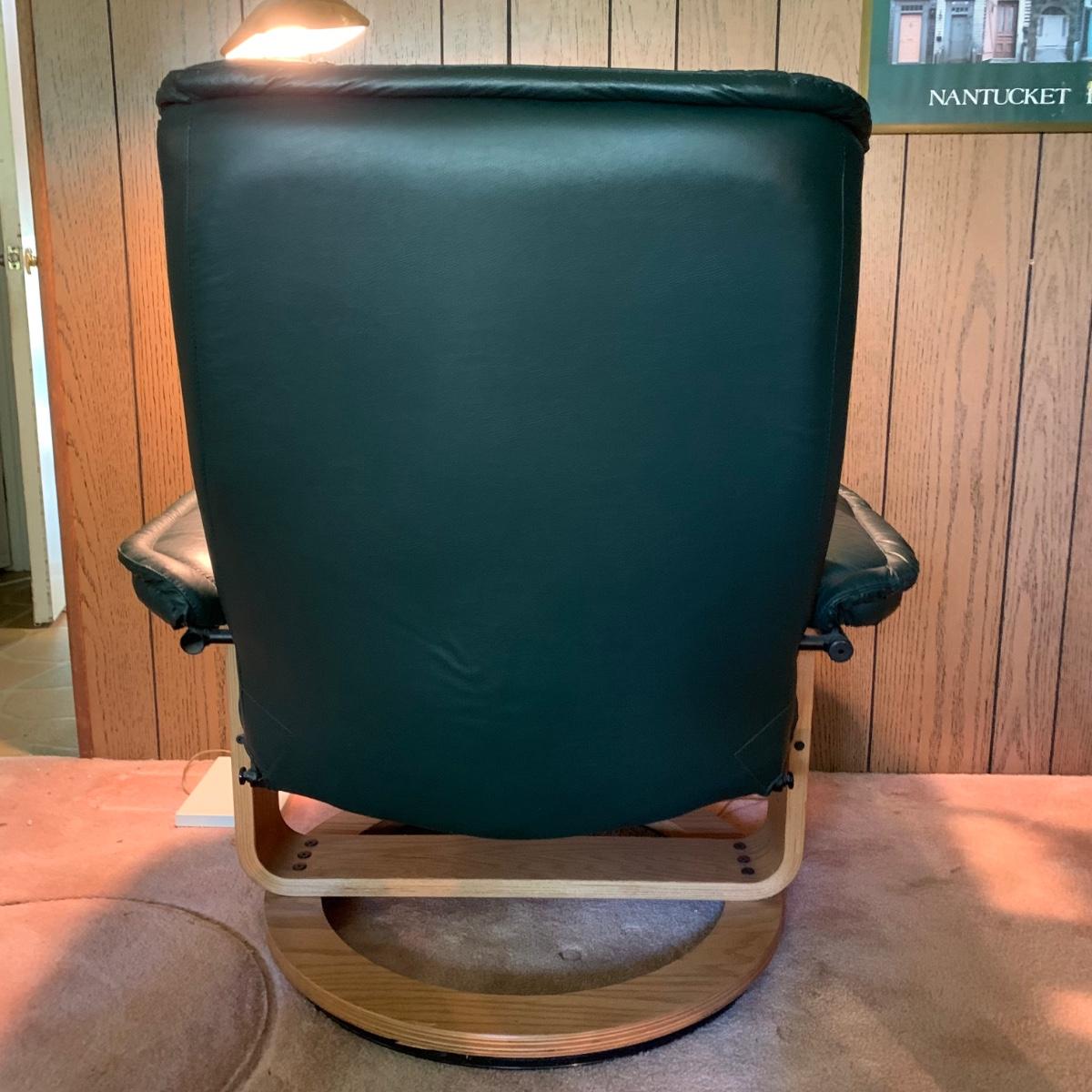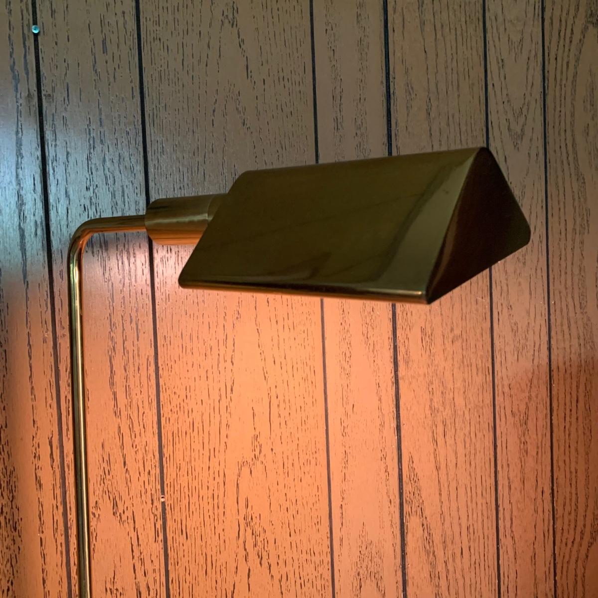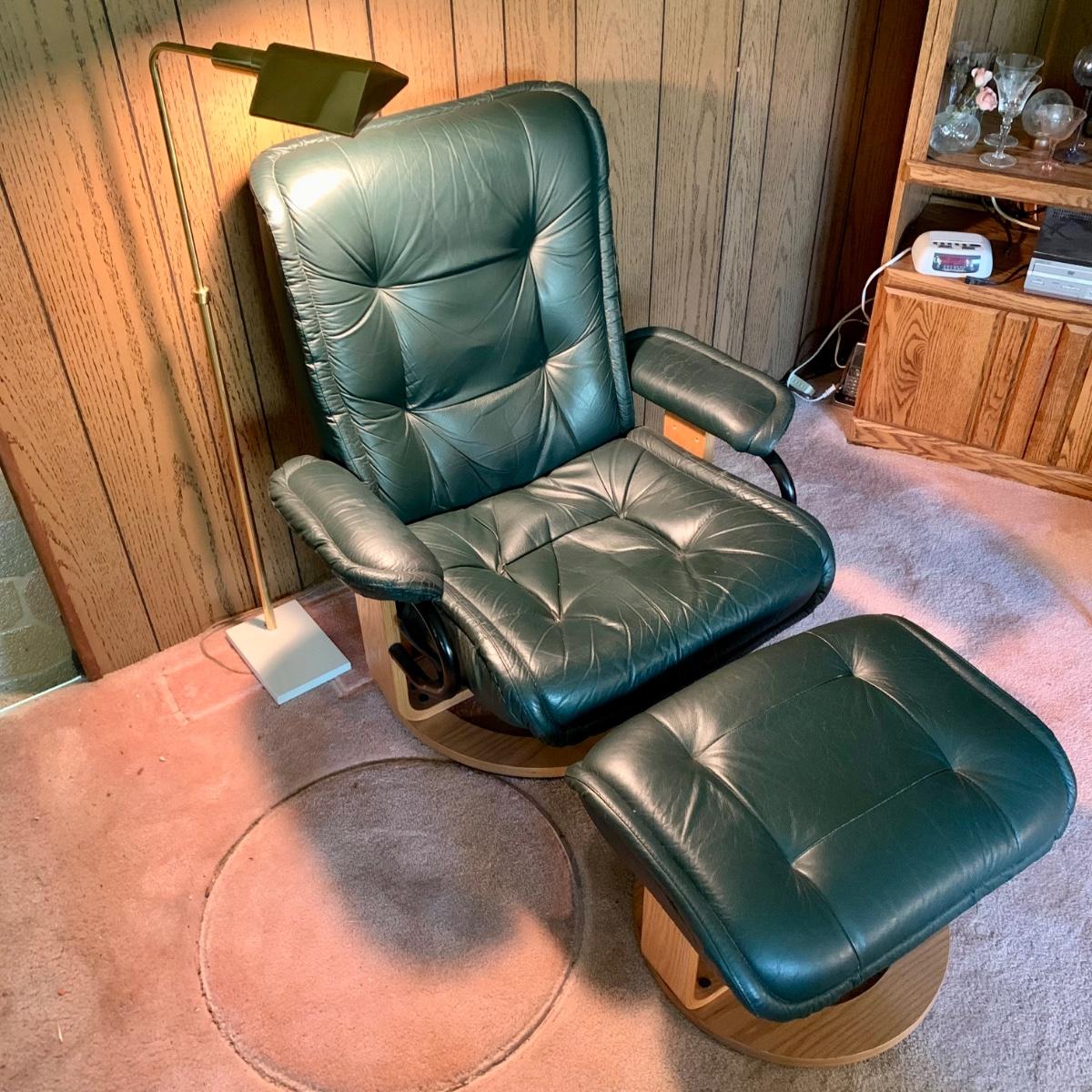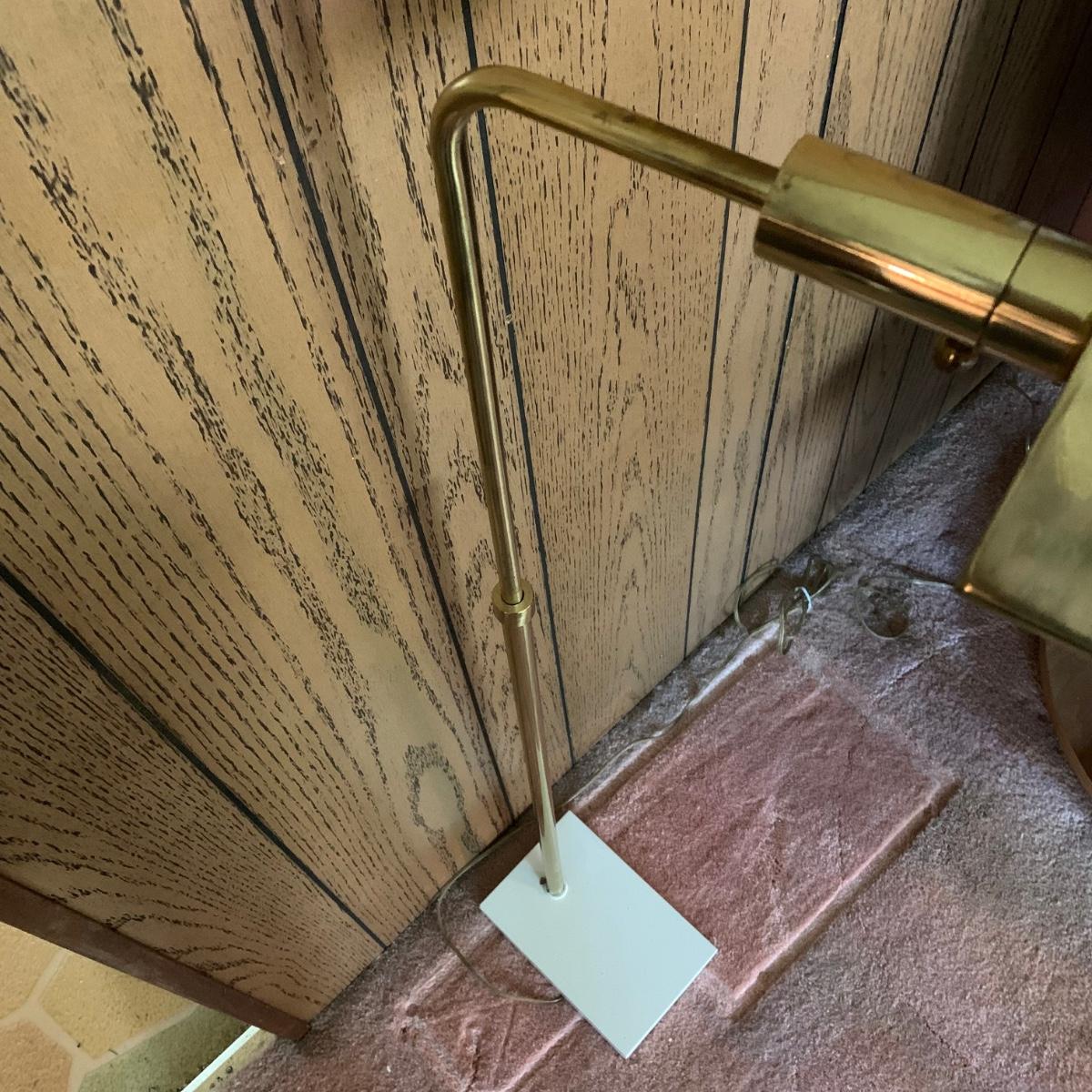 LOT 81 F: Genesis Design Stressless Leather Swivel Chair & Ottoman W/ Mid Century Modern Brass Adjustable Floor Lamp