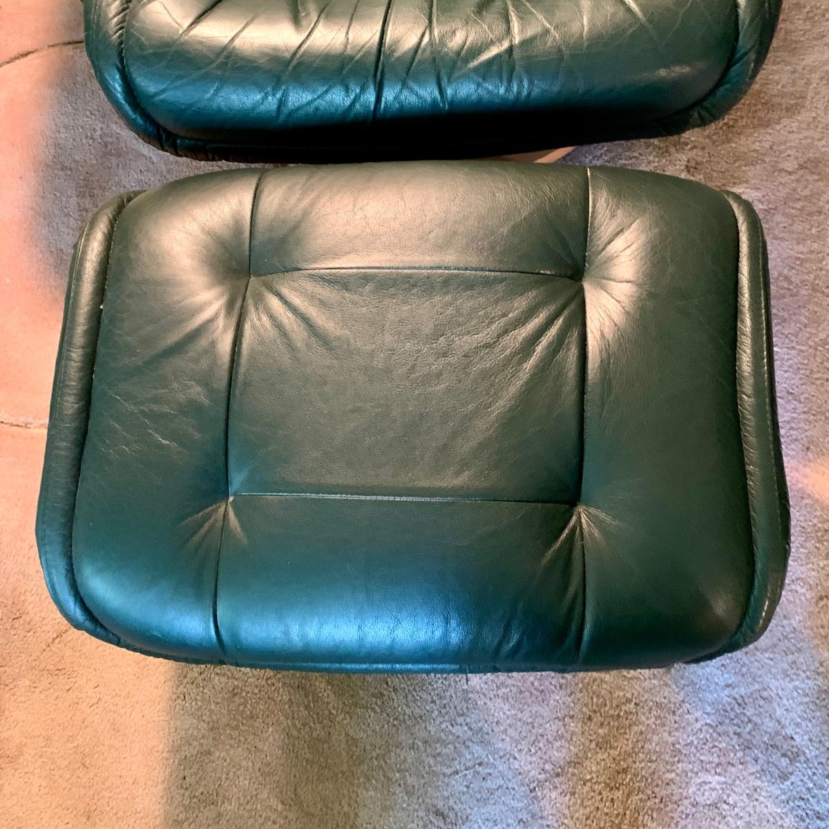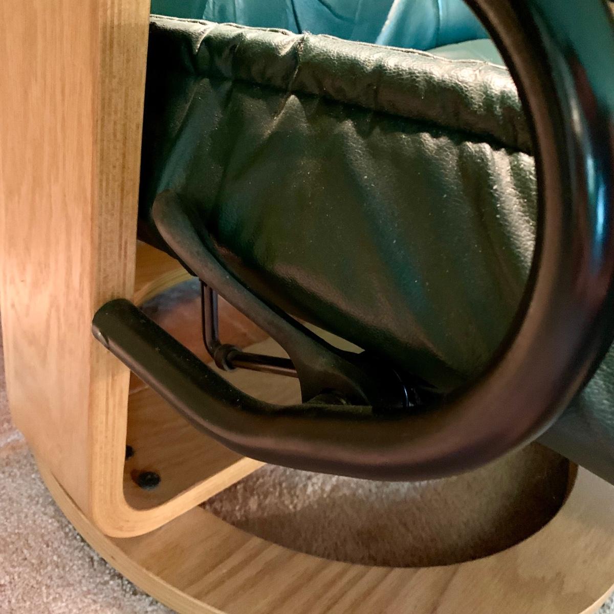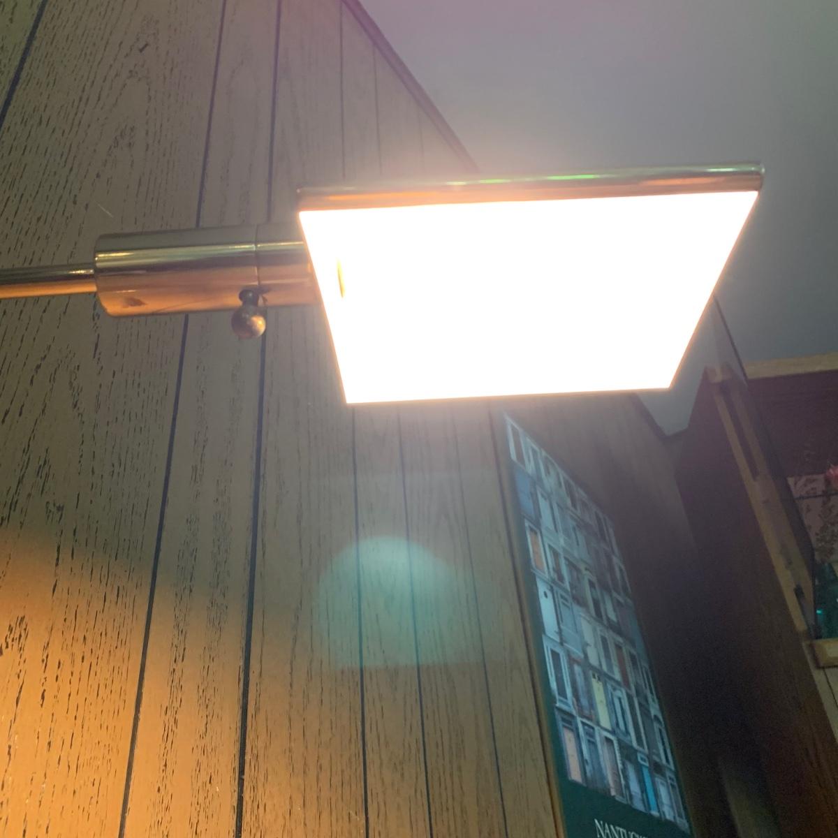 LOT 81 F: Genesis Design Stressless Leather Swivel Chair & Ottoman W/ Mid Century Modern Brass Adjustable Floor Lamp