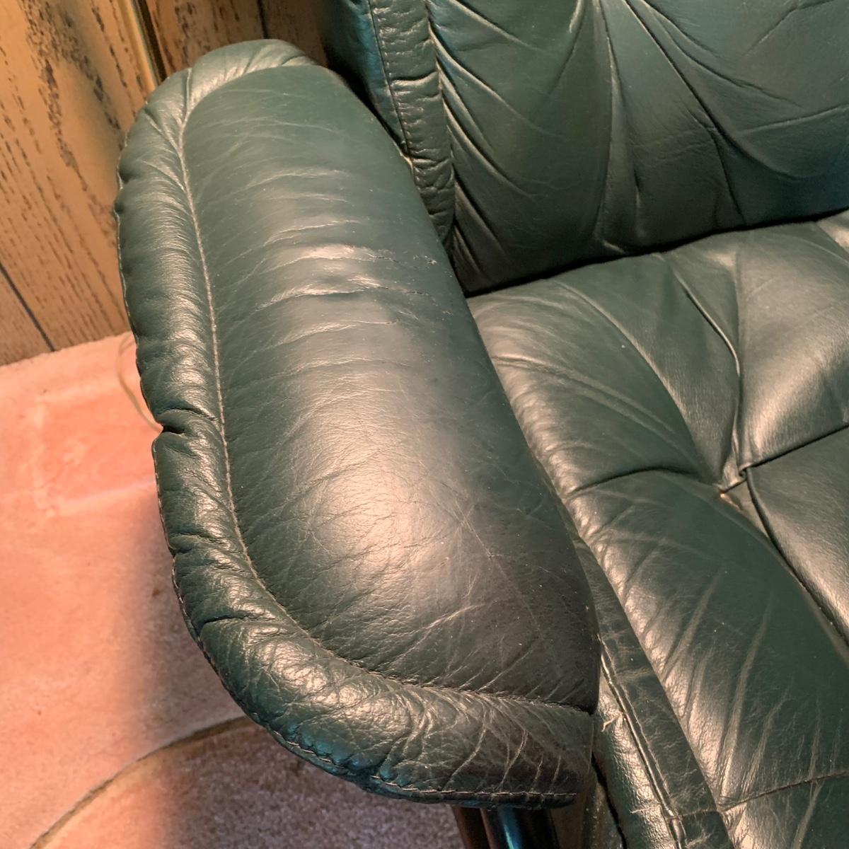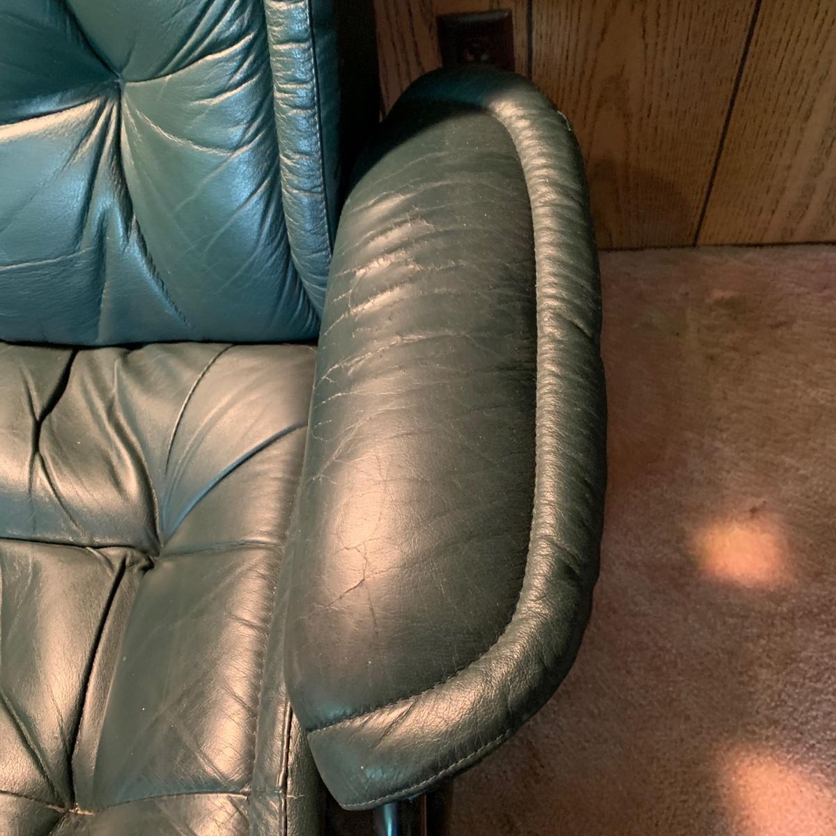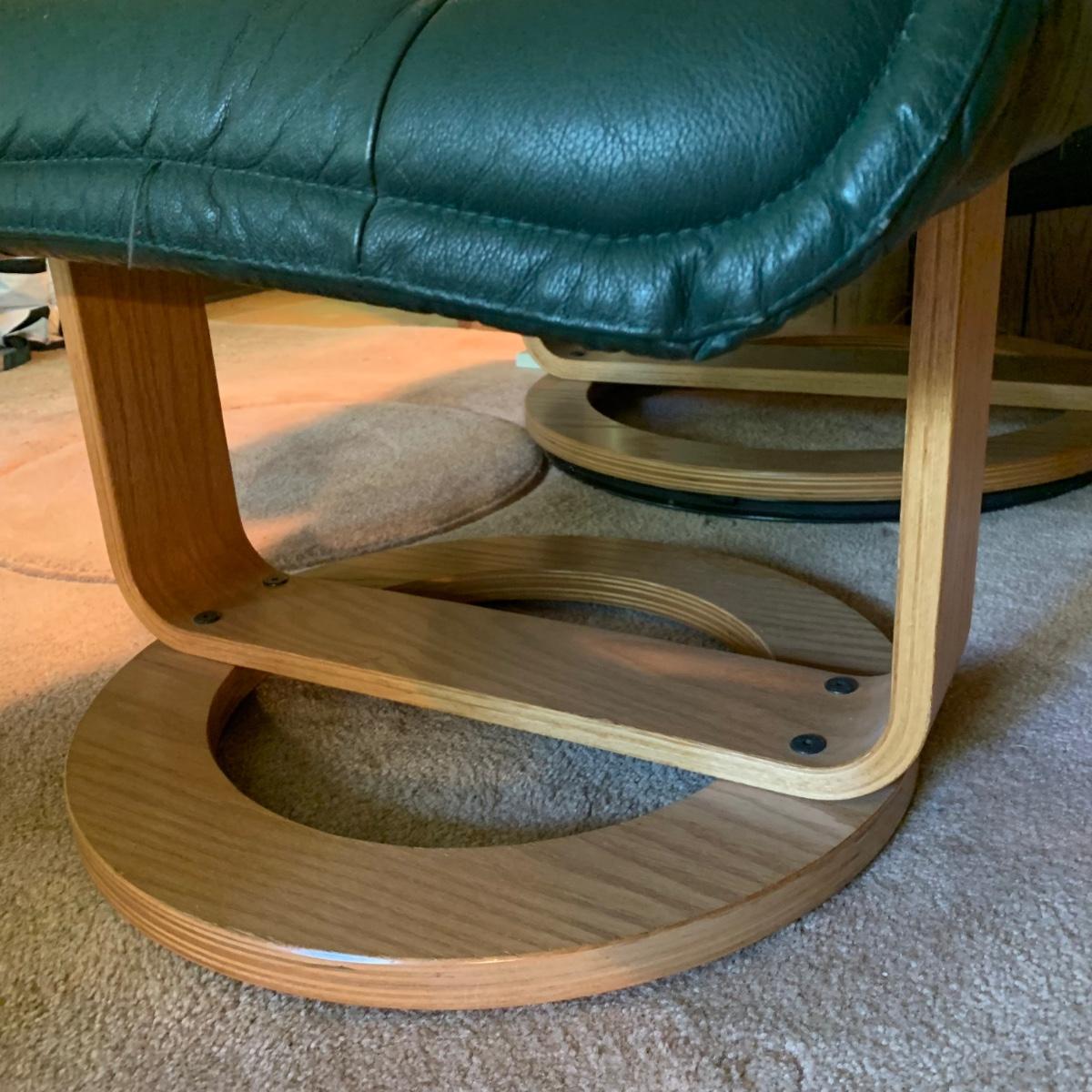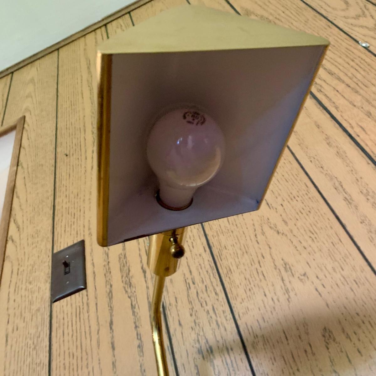 LOT 81 F: Genesis Design Stressless Leather Swivel Chair & Ottoman W/ Mid Century Modern Brass Adjustable Floor Lamp