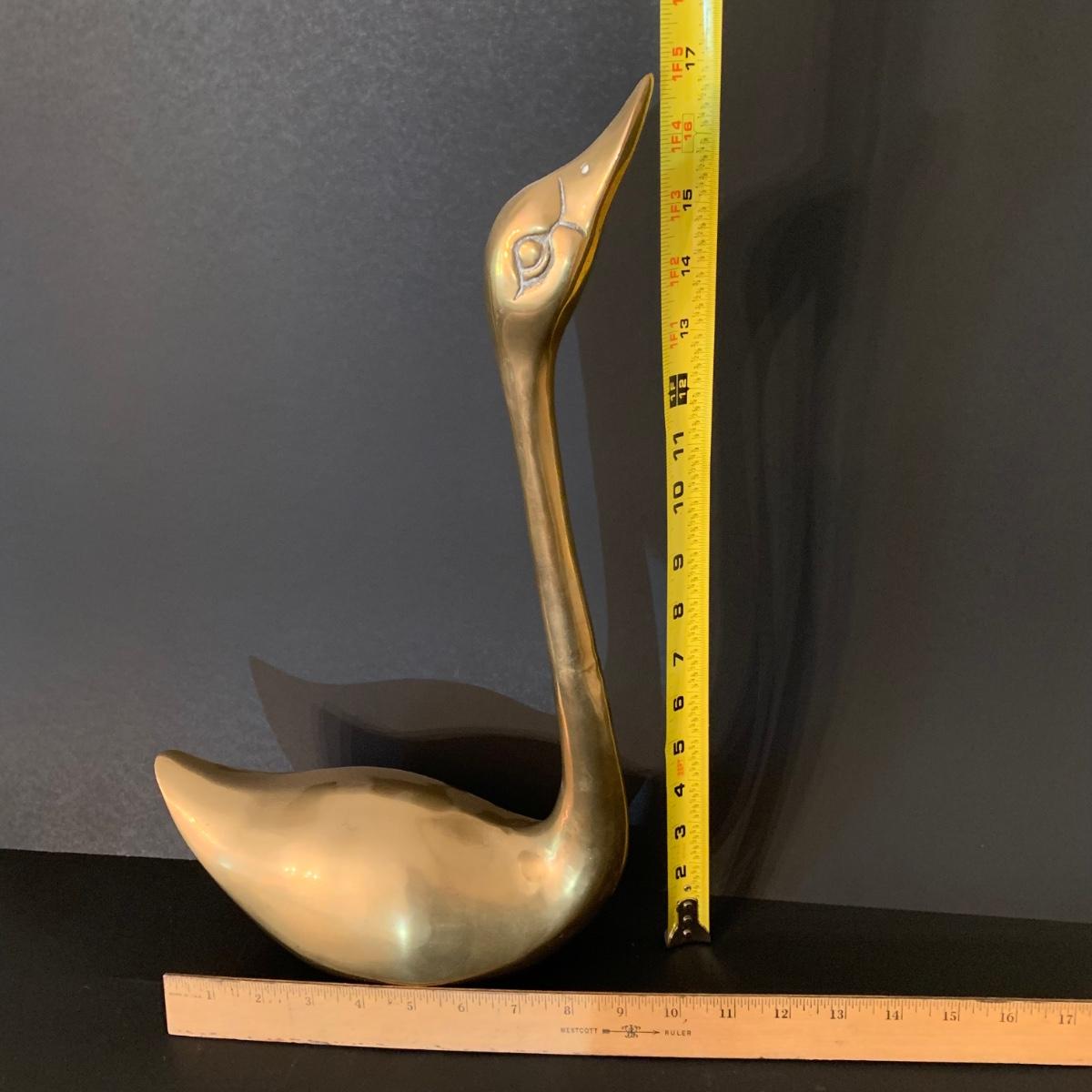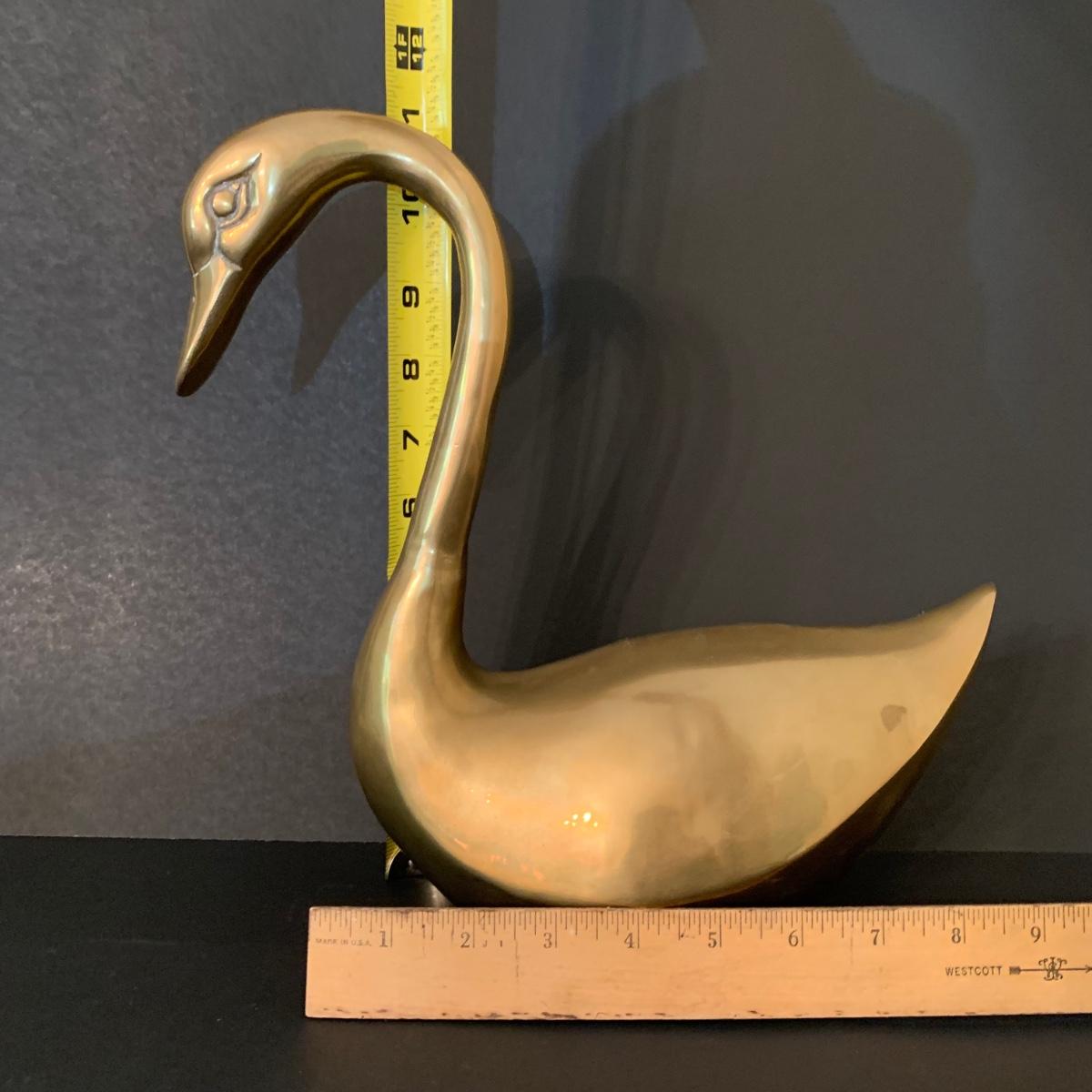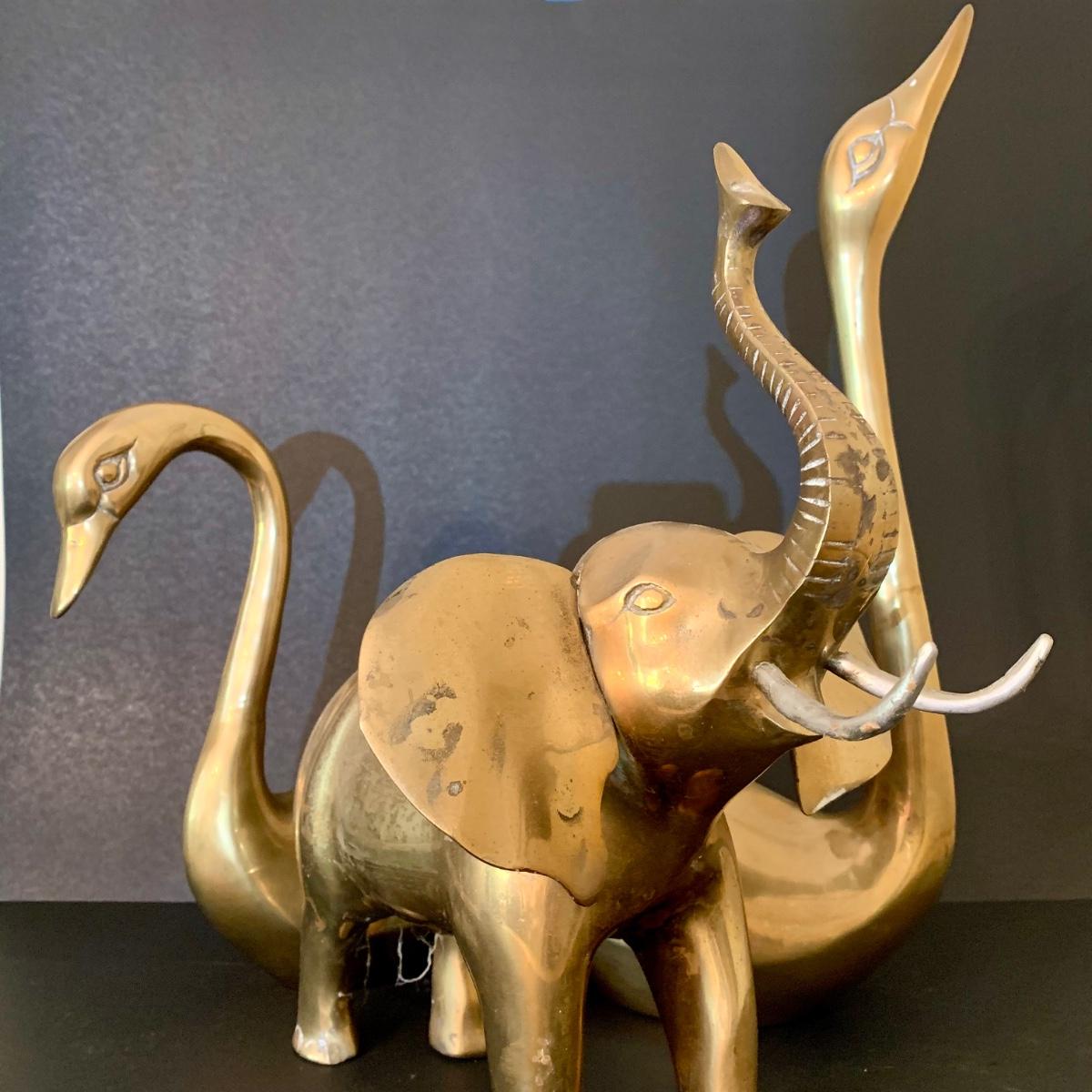 LOT 82 F: Vintage Brass Pair of Swans & Solid Brass Elephant