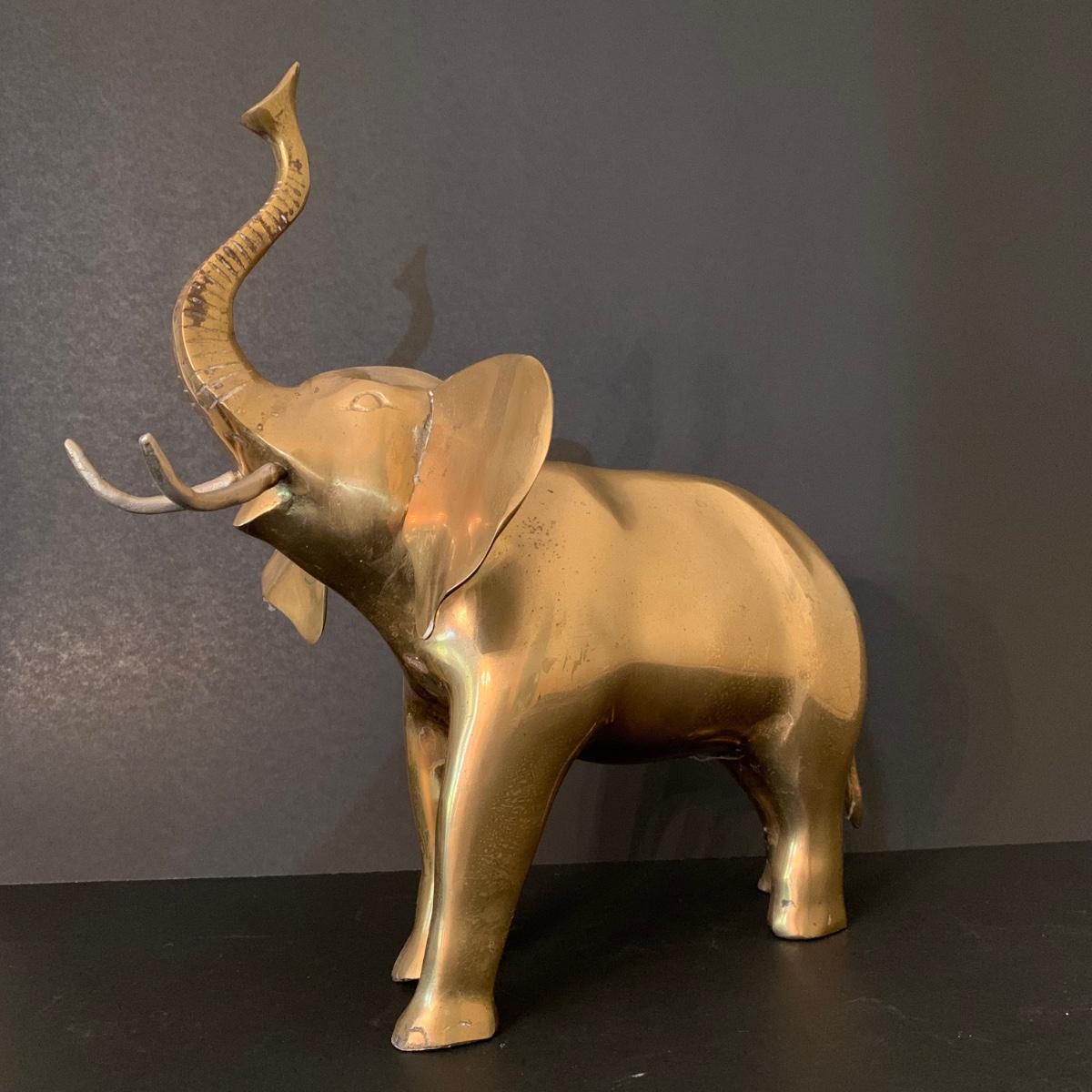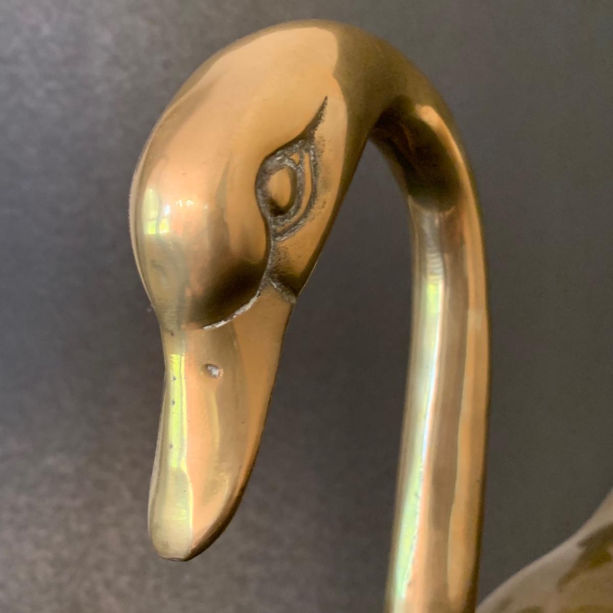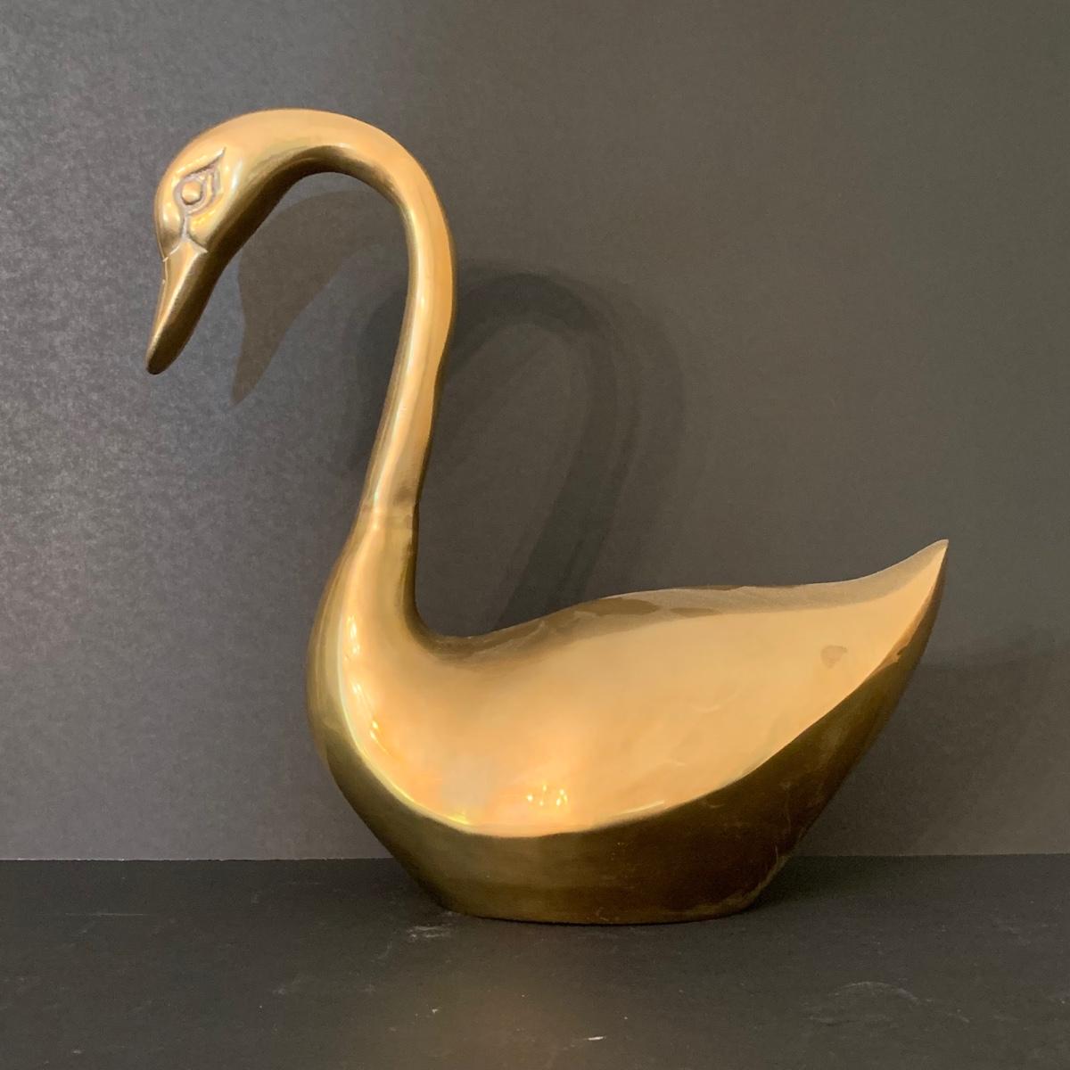 LOT 82 F: Vintage Brass Pair of Swans & Solid Brass Elephant