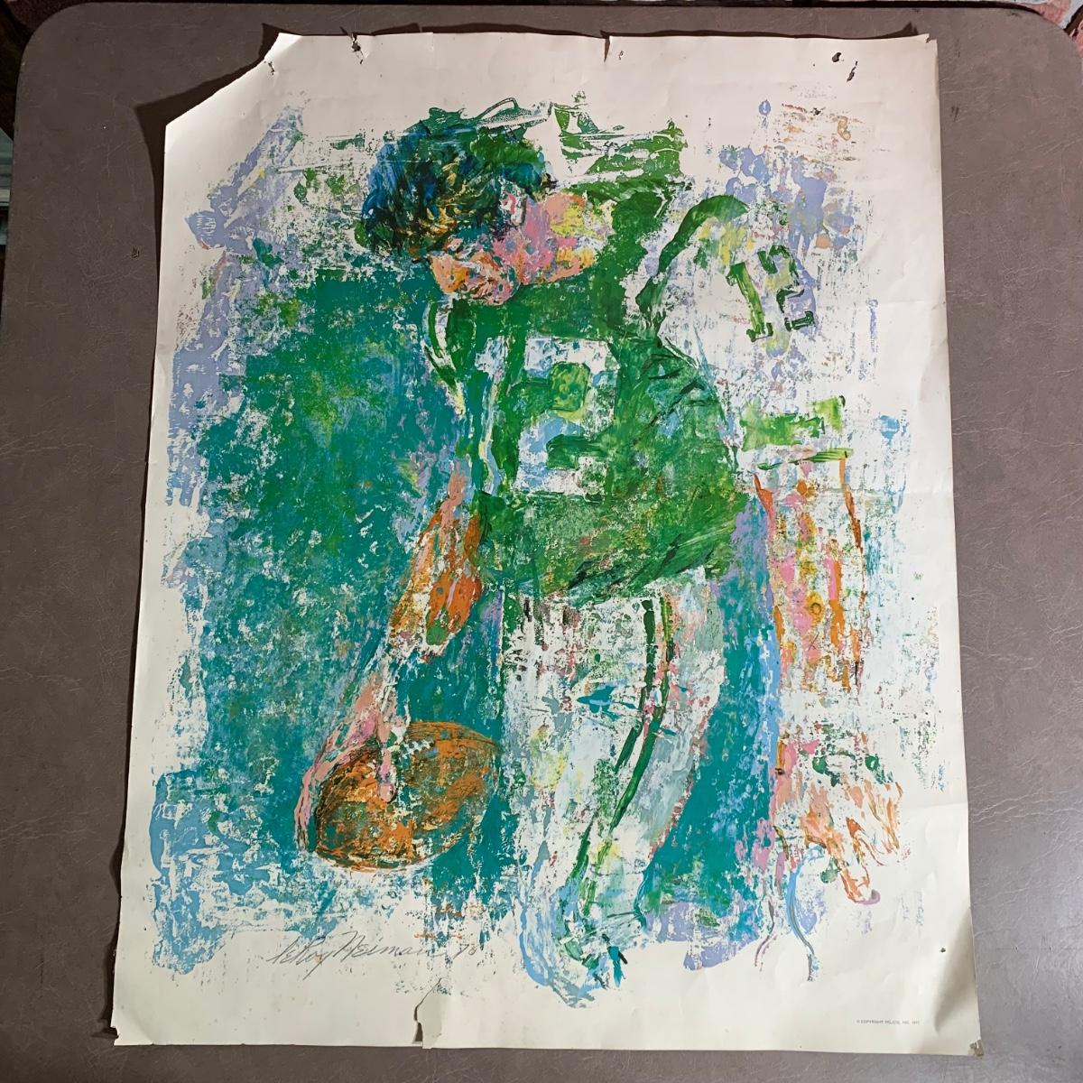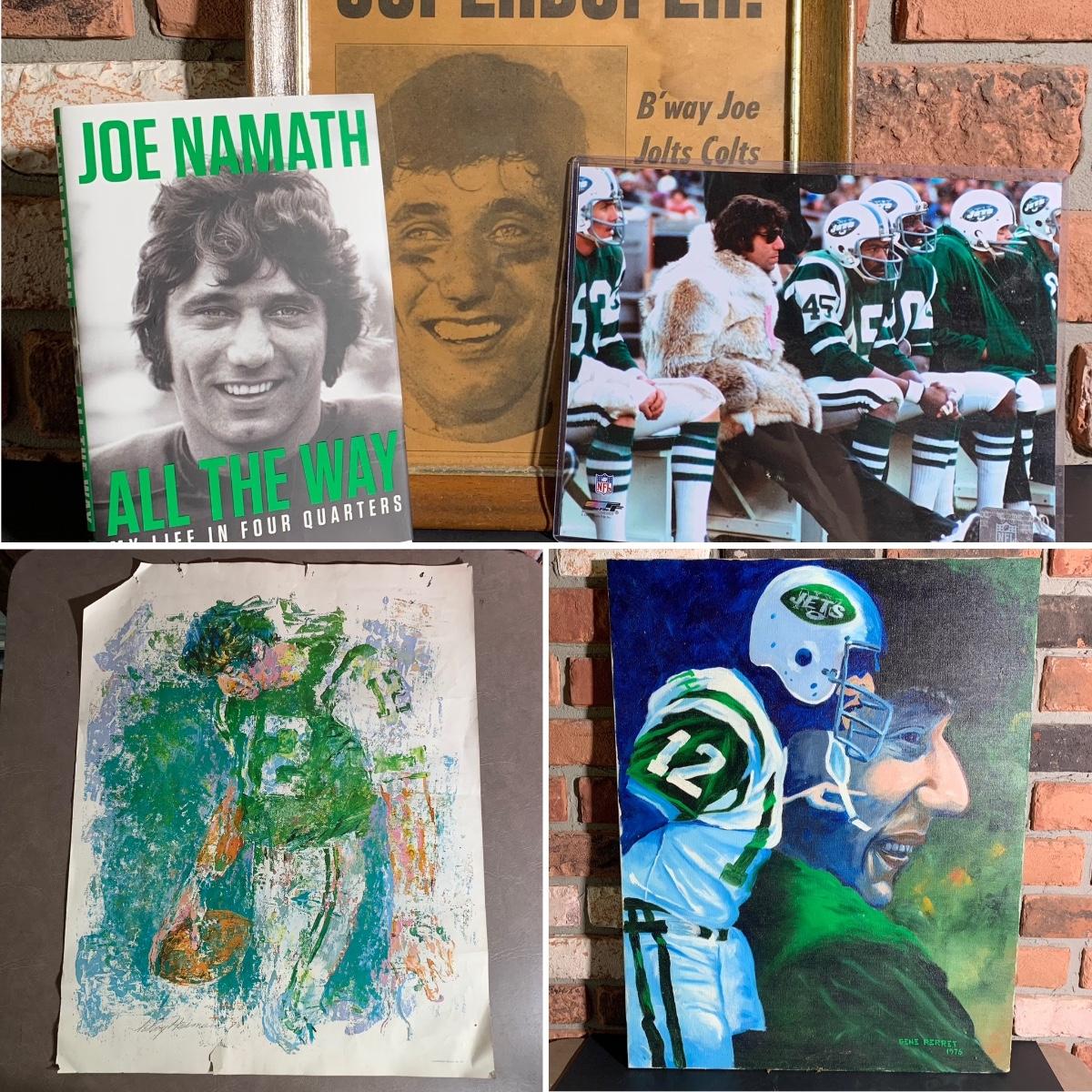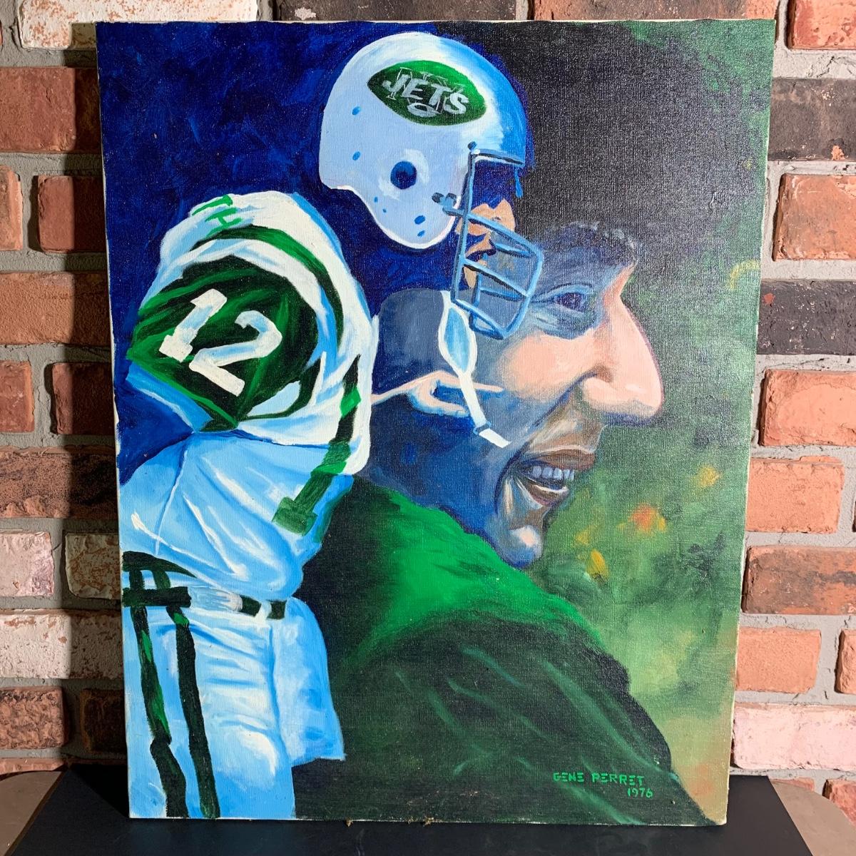 LOT 84 G: Joe Namath Collection: 1976 Painting by Gene Perret, 1970 LeRoy Neiman Print, Official Numbered NFL Photo & More