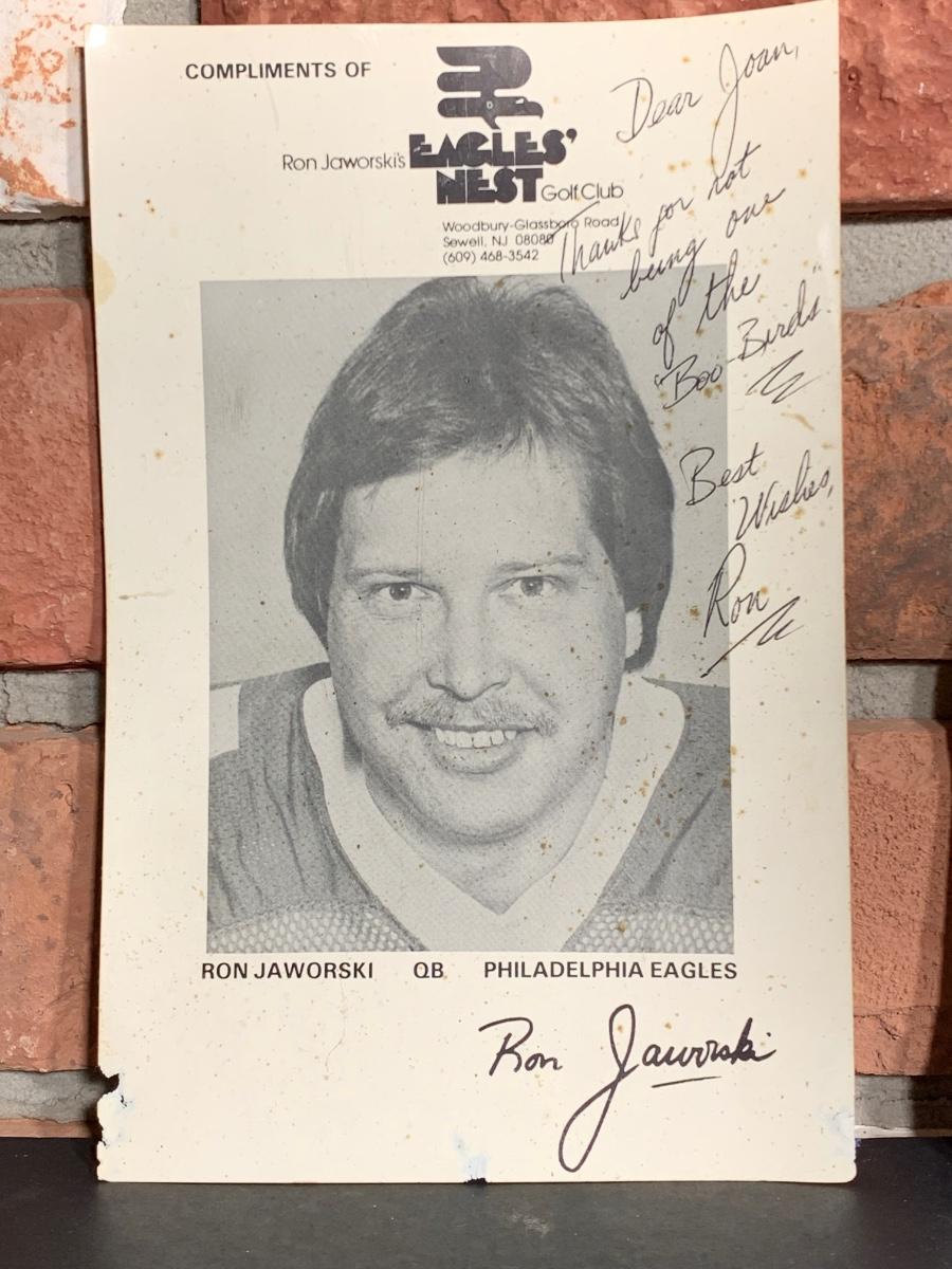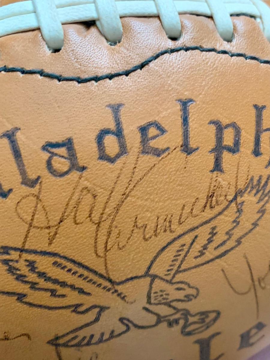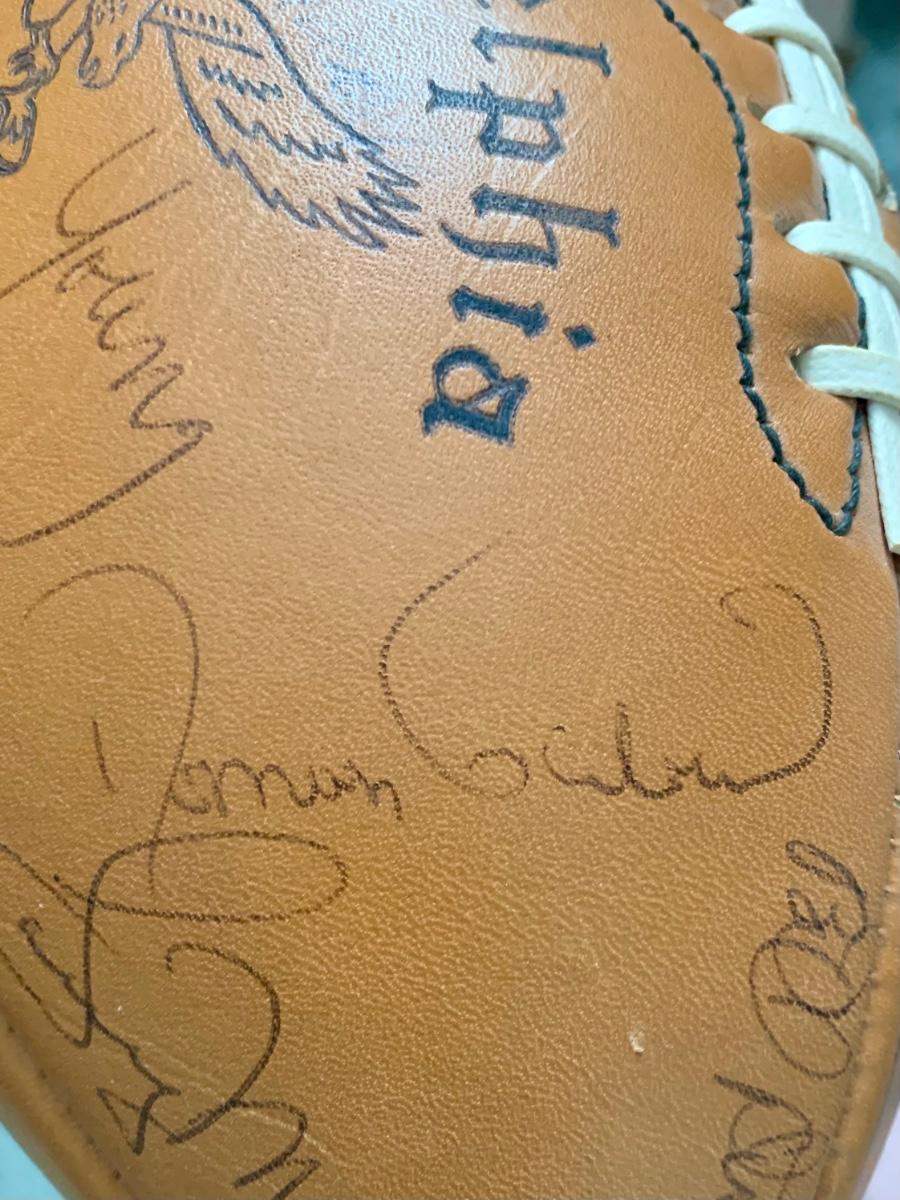 LOT 85 G: Philadelphia Eagles Collection: 1975 Team Signed Football including Bill Bergey, Roman Gabriel, & Harold Carmichael, Signed Ron Jaworski Image, 1967 Bobble Head/Nodder & More