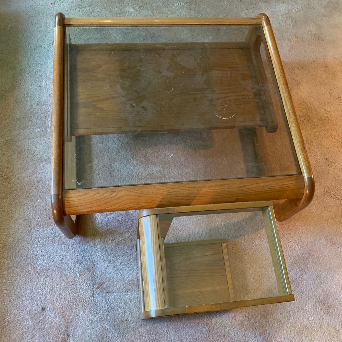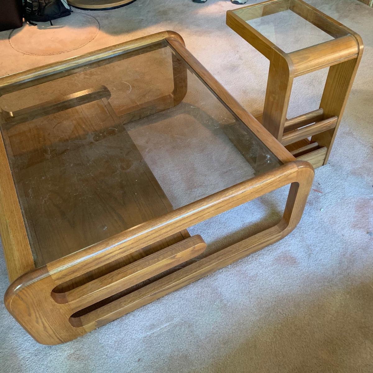 LOT 86 F: Vintage Mid Century Modern Lou Hodges Coffee Table & Glass Top Side Table/Magazine Rack