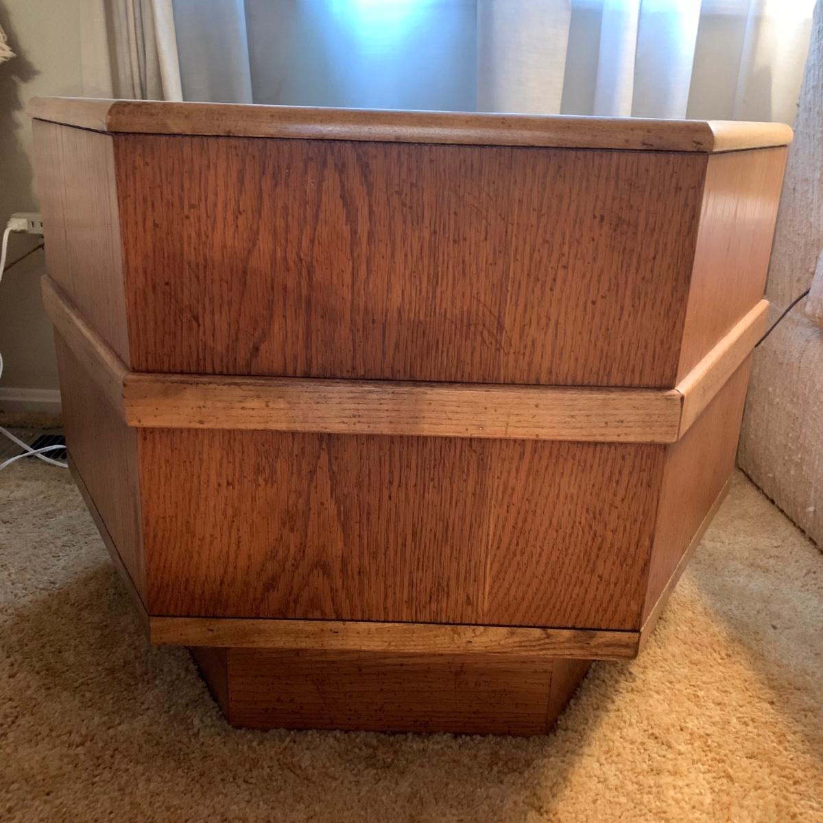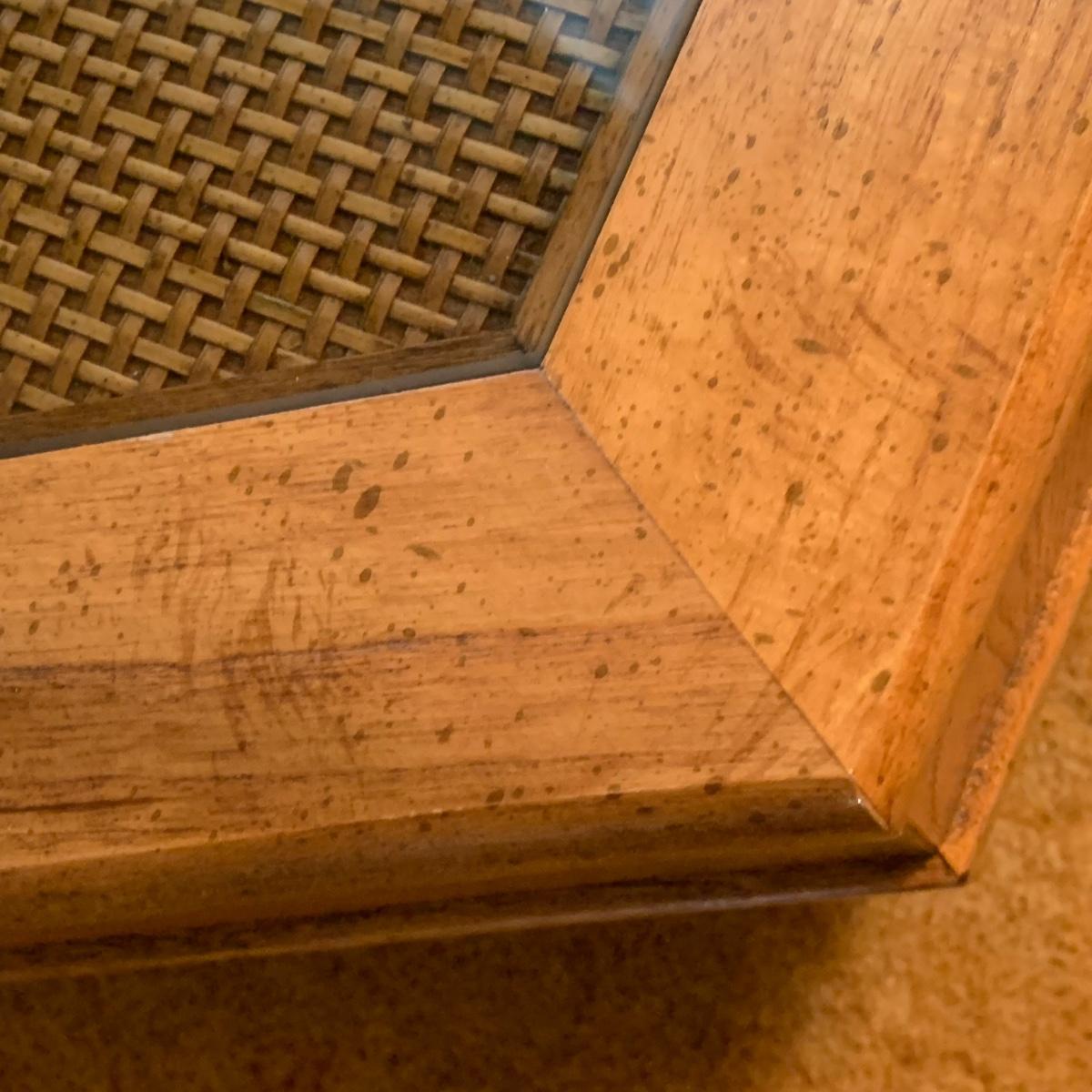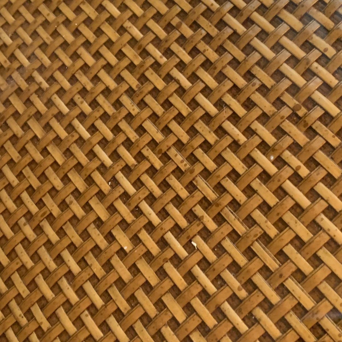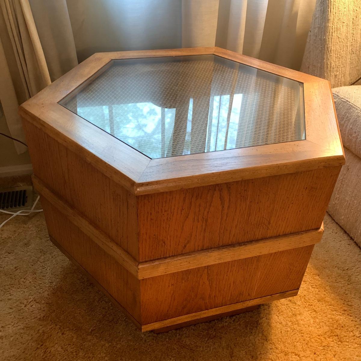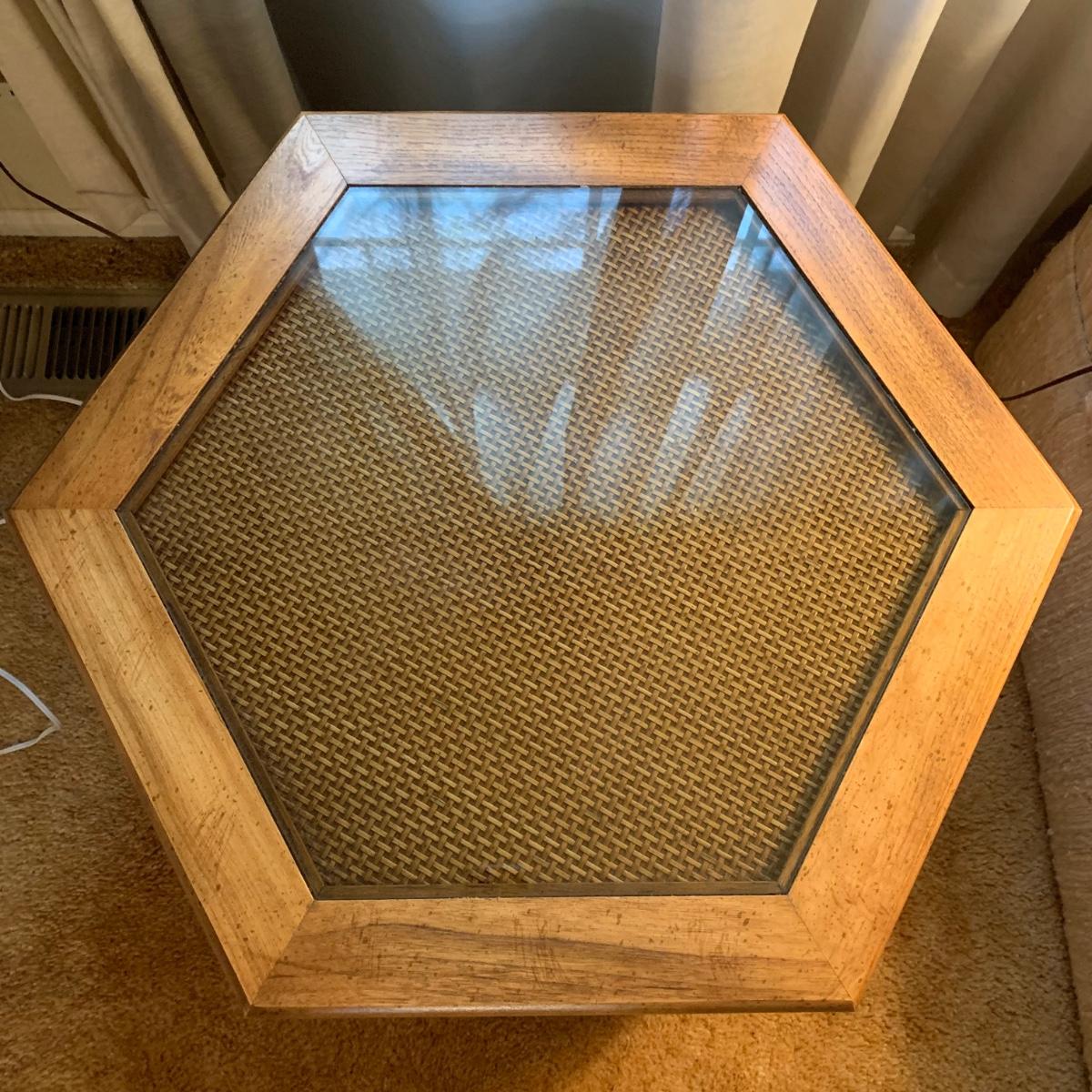 LOT 91 L: Vintage 1970's Hexagonal Side Table W/ Glass Over Cane Top