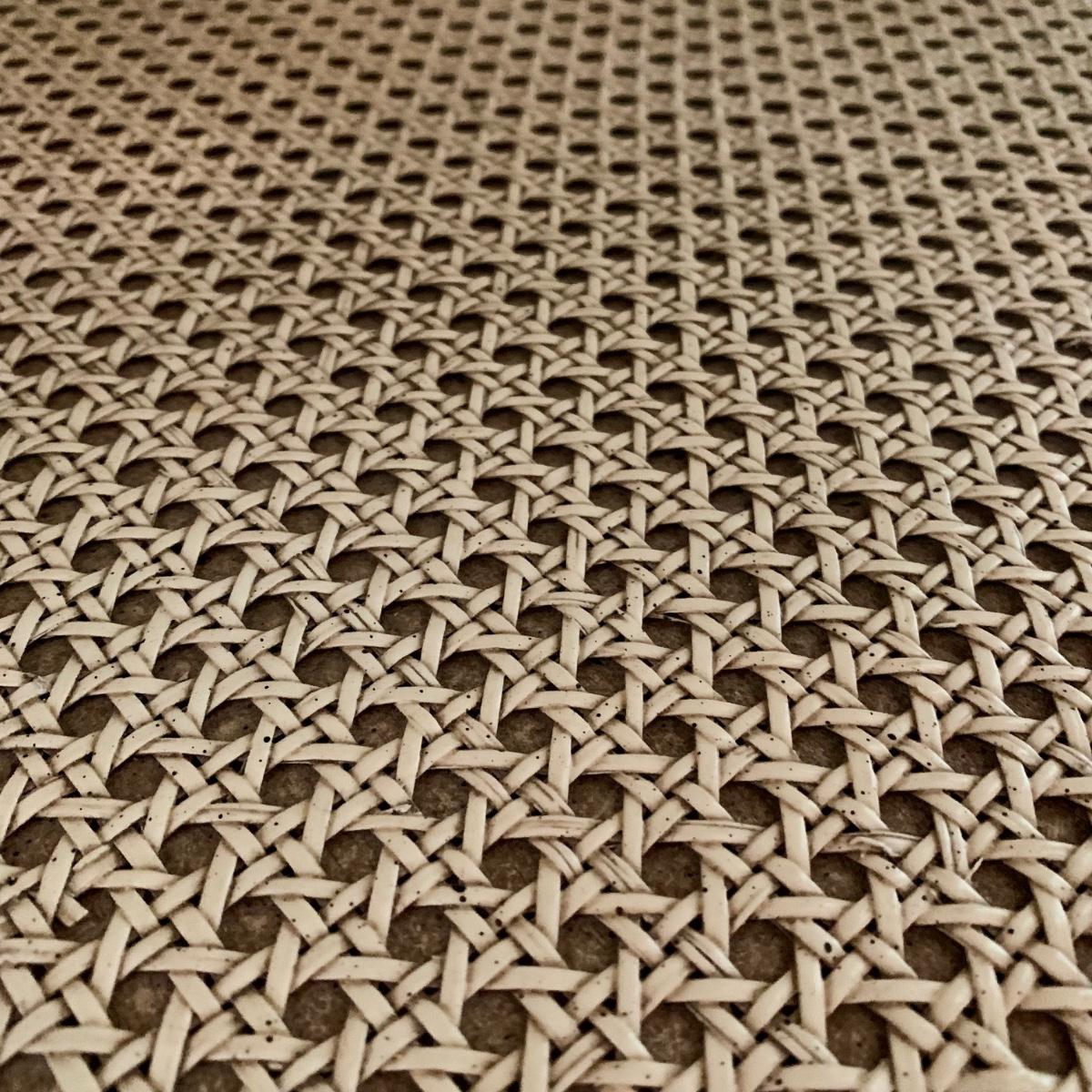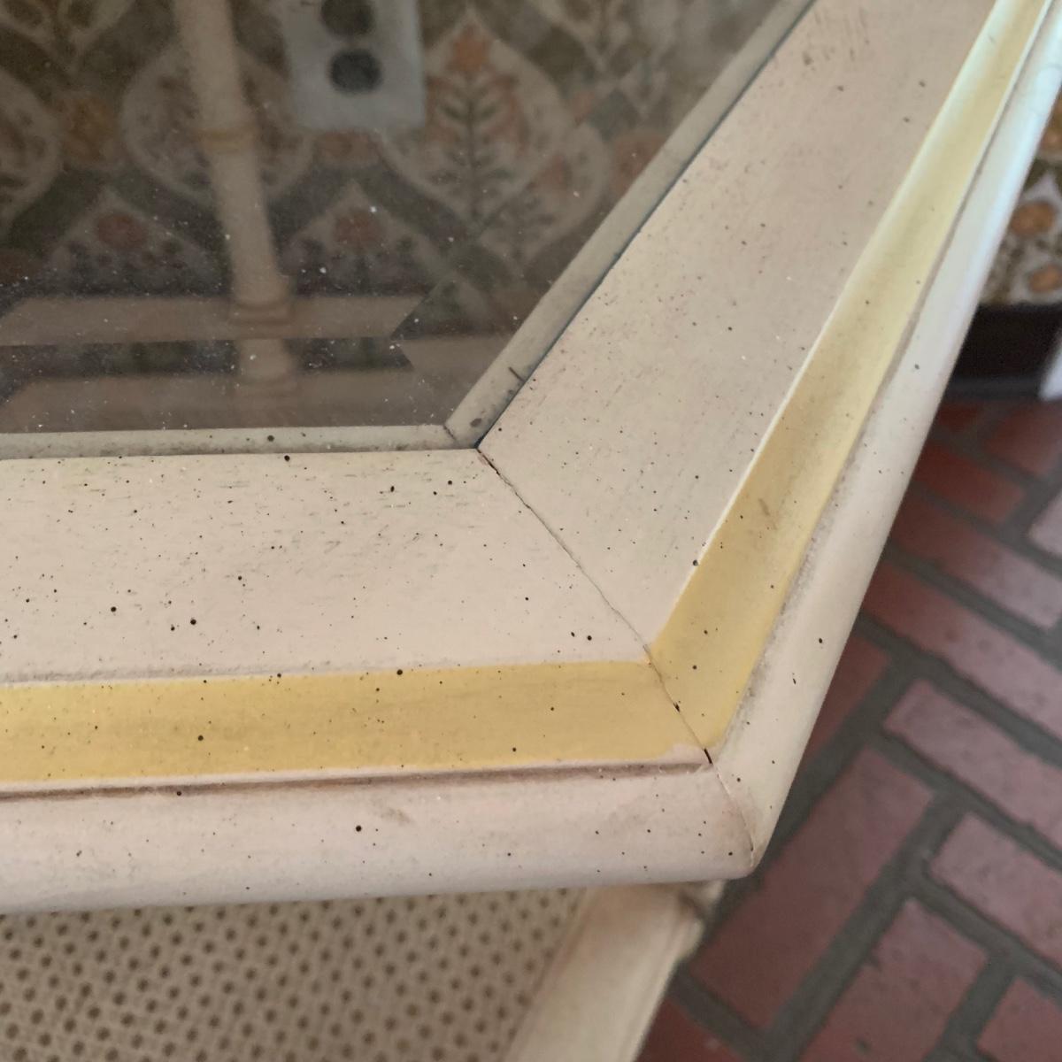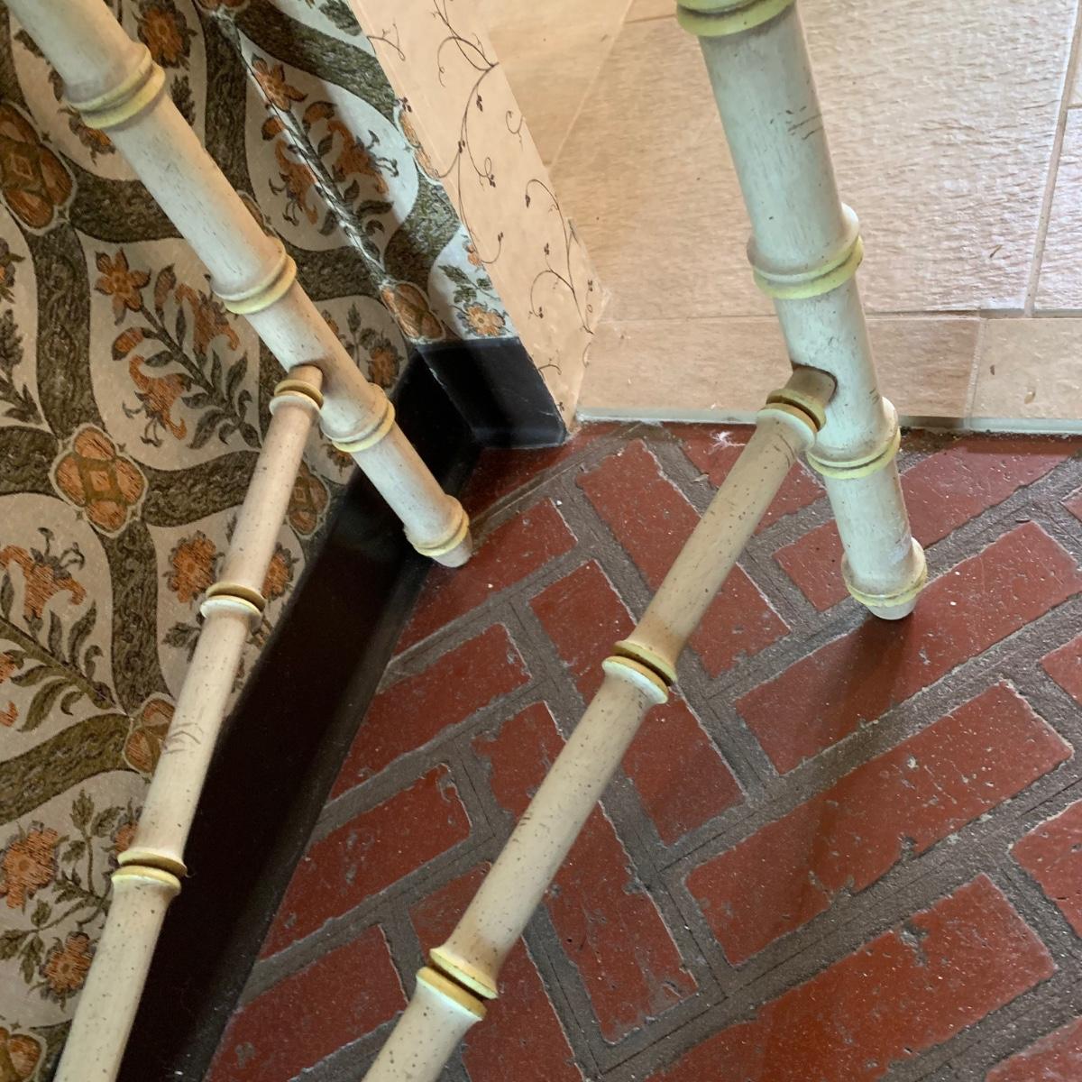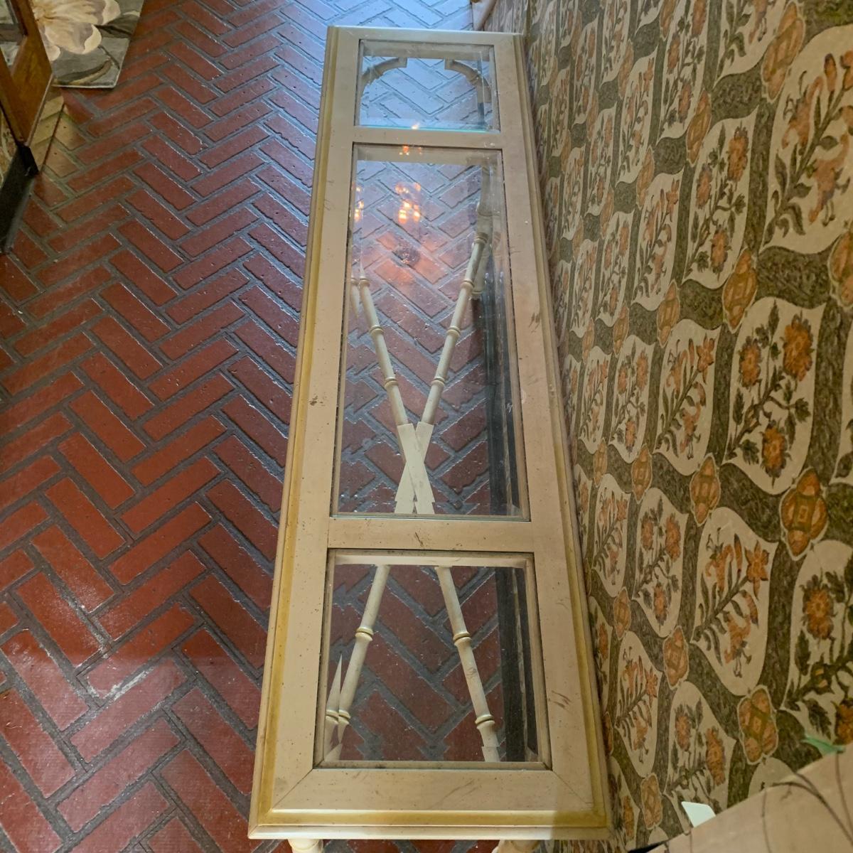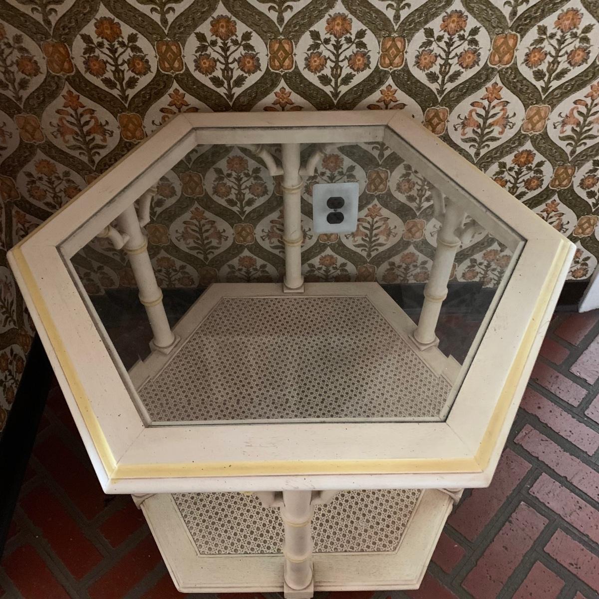 LOT 98 L: Vintage 1960's Lane Faux Bamboo Console Table & Hexagonal Cane & Faux Bamboo Side Table