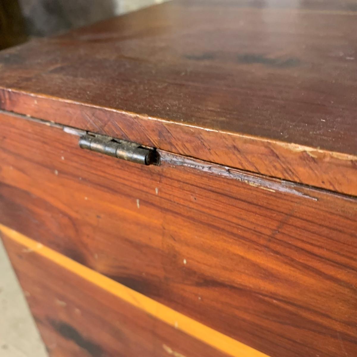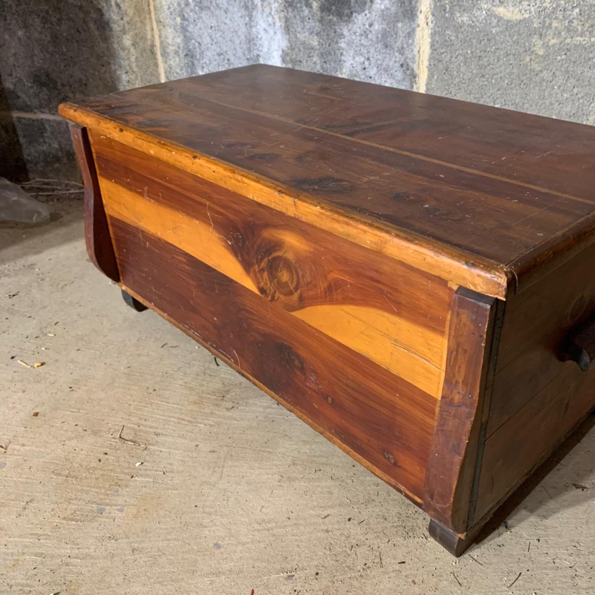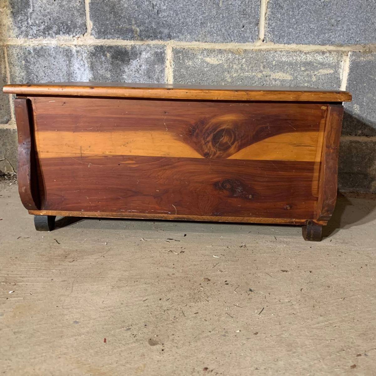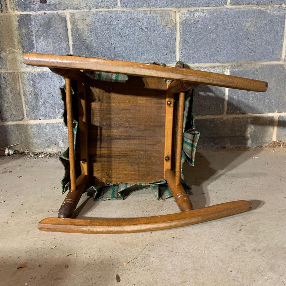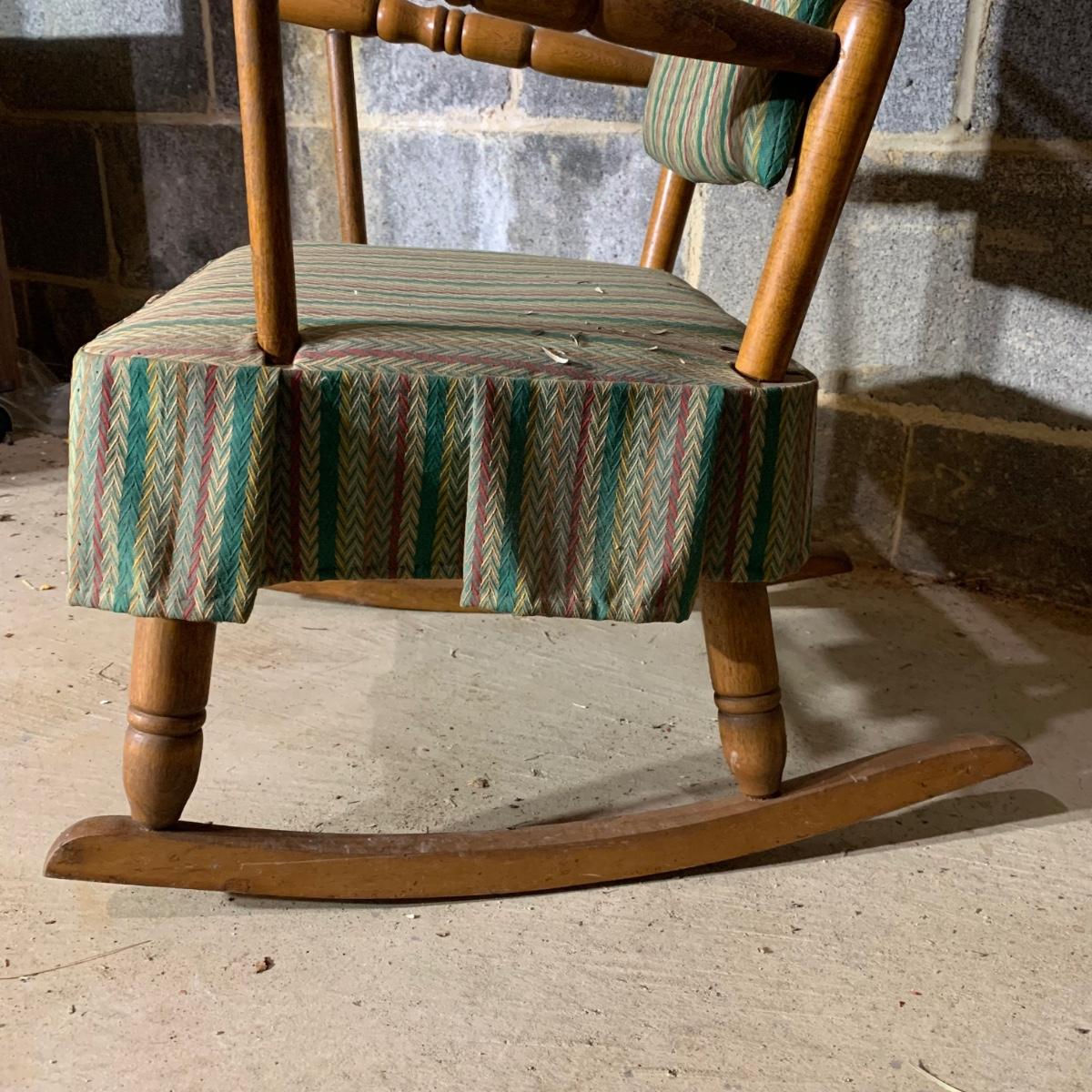 LOT 112 B: Vintage Frank Wisig Chest, Matilda Round Back Spindle Children's Rocking Chair, & Cricket Style Ladder Back Children's Rocking Chair