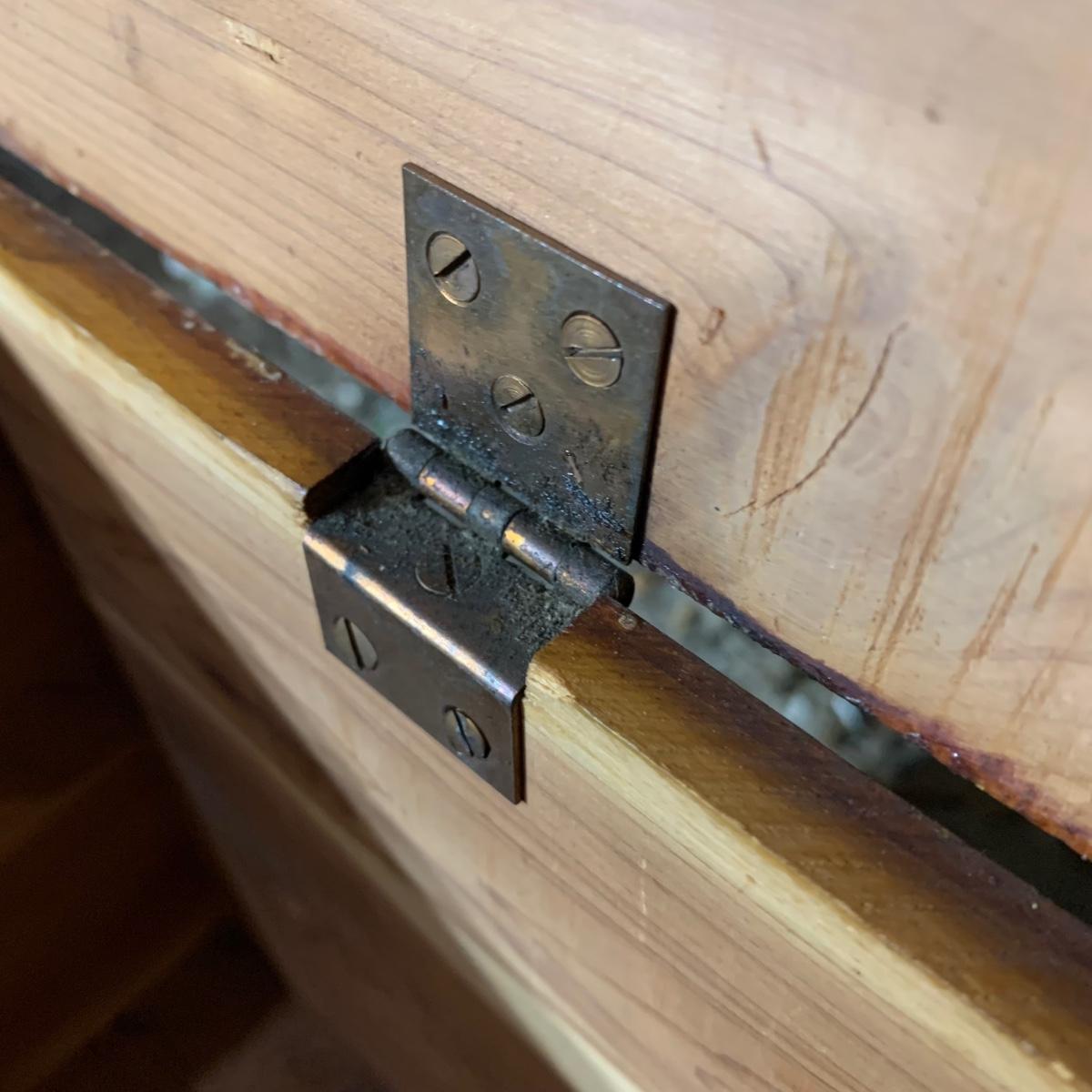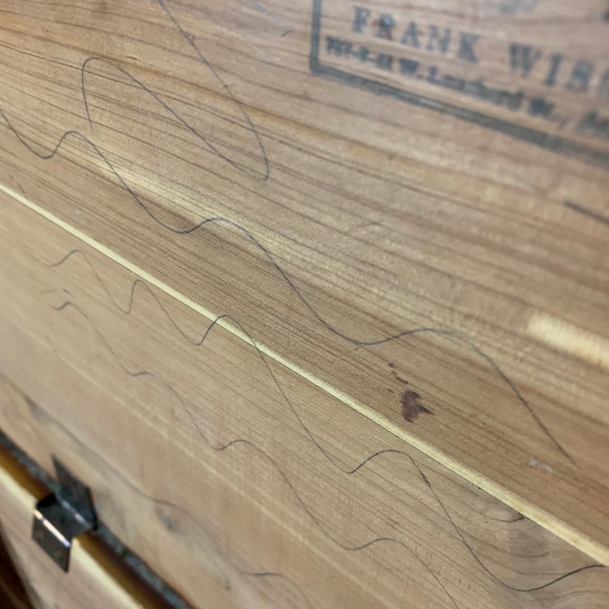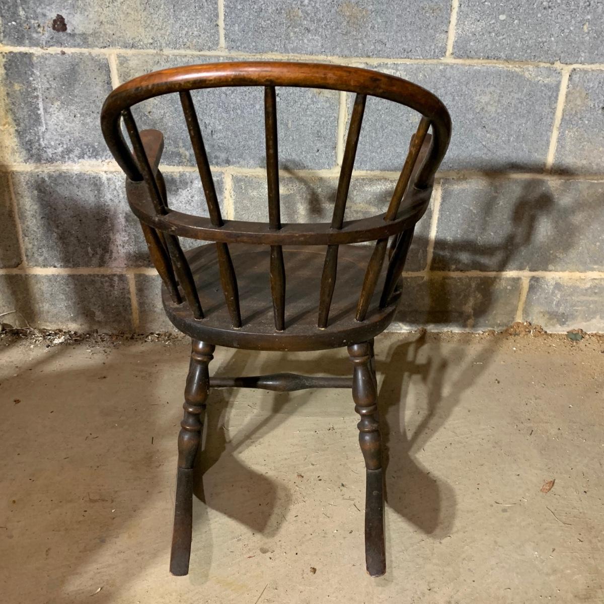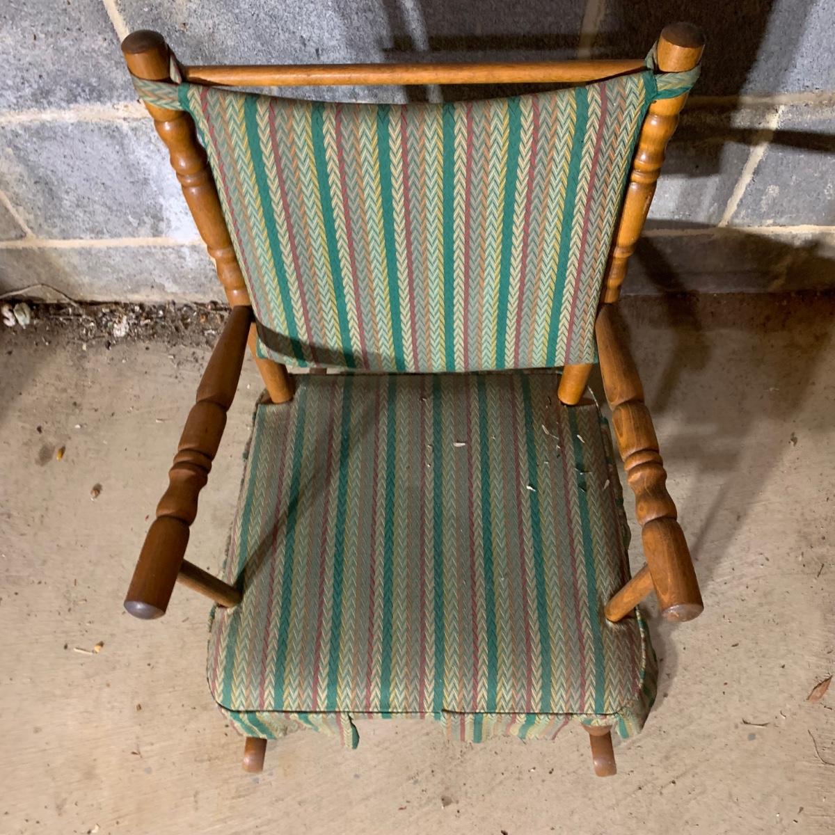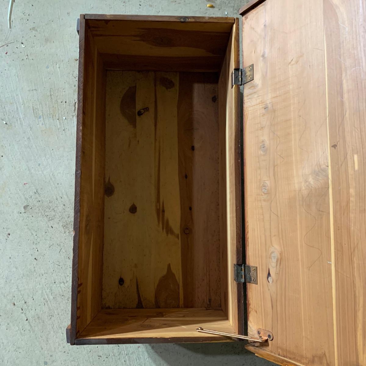 LOT 112 B: Vintage Frank Wisig Chest, Matilda Round Back Spindle Children's Rocking Chair, & Cricket Style Ladder Back Children's Rocking Chair