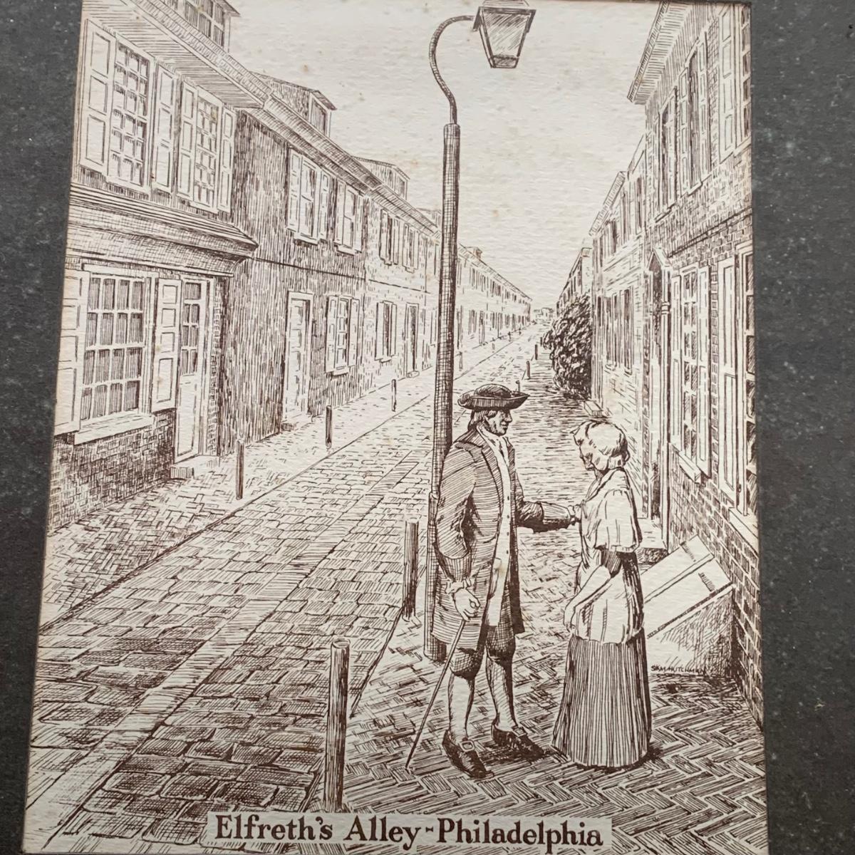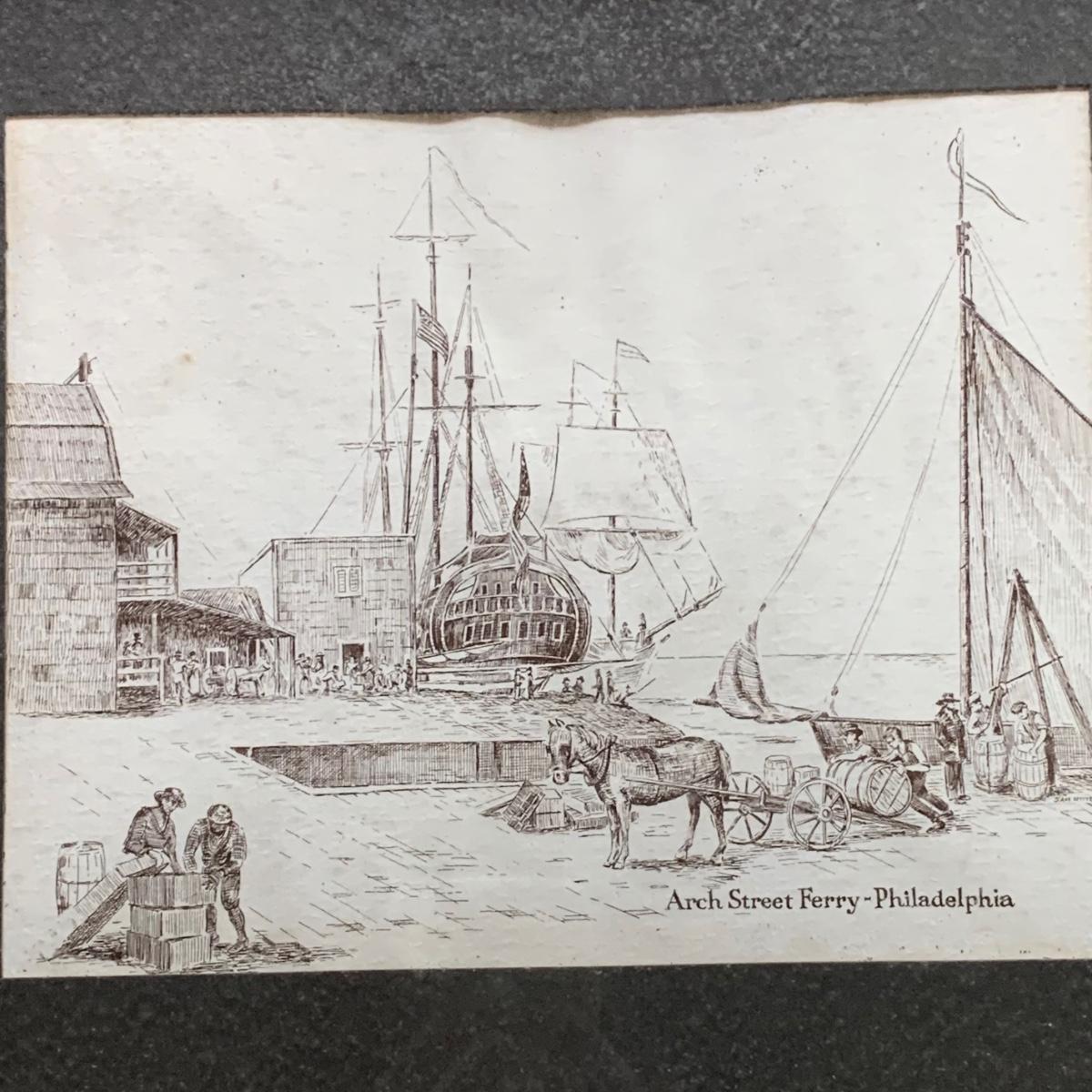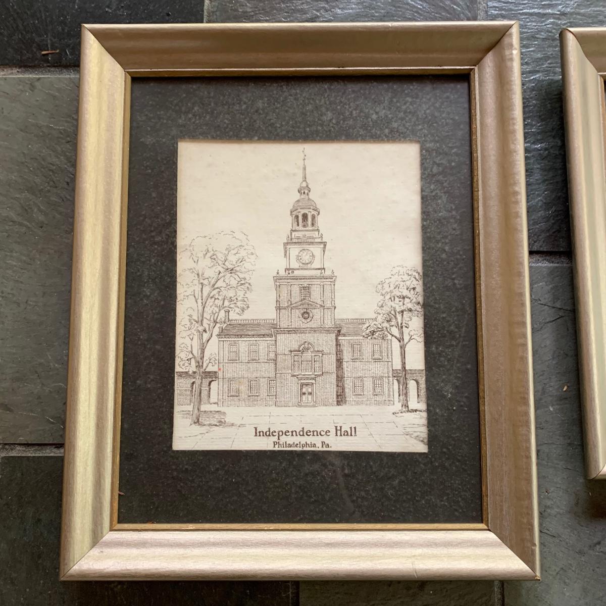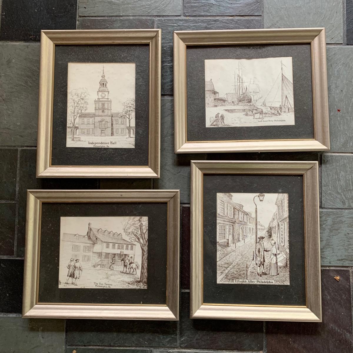 LOT 120 B: Vintage Framed Historic Philadelphia Prints including Independence Hall, Arch Street Ferry, Elfreth's Alley, & The Tun Tavern