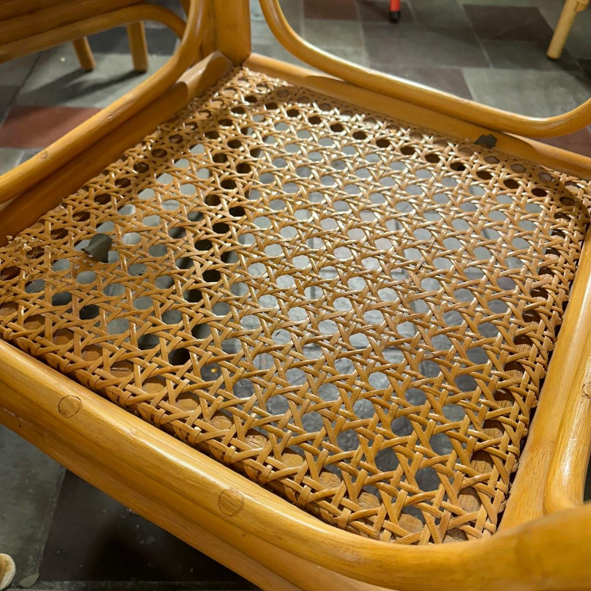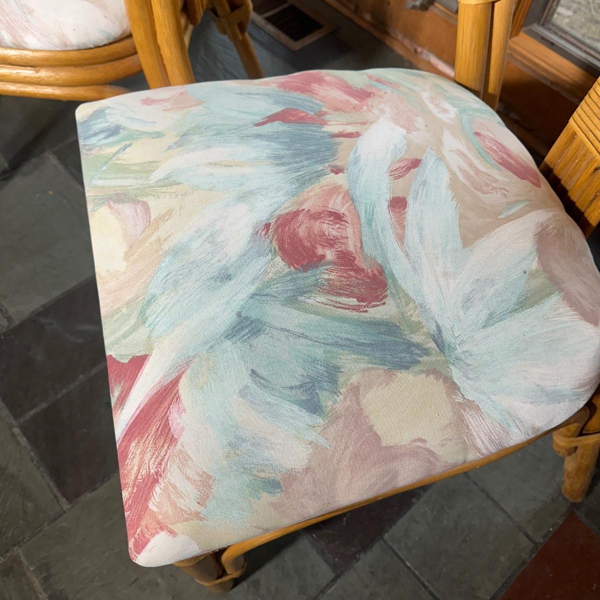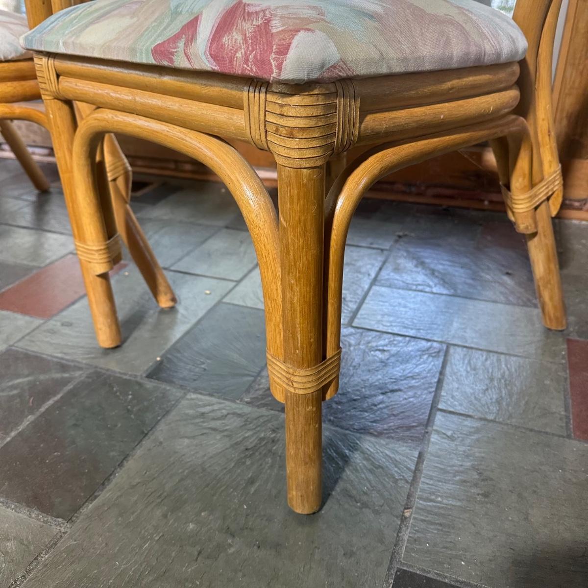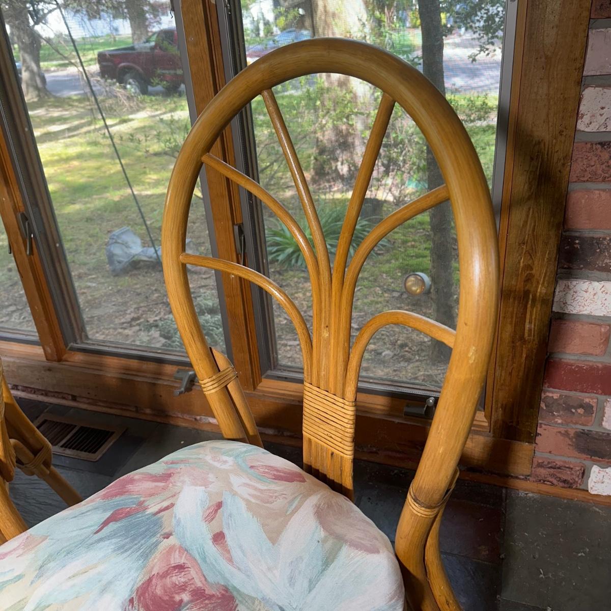 LOT 127P: Round Glass Top Rattan Dining Table & Chairs