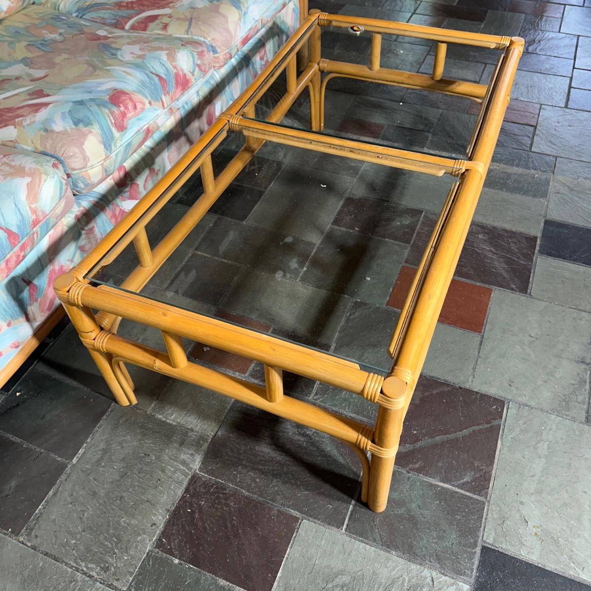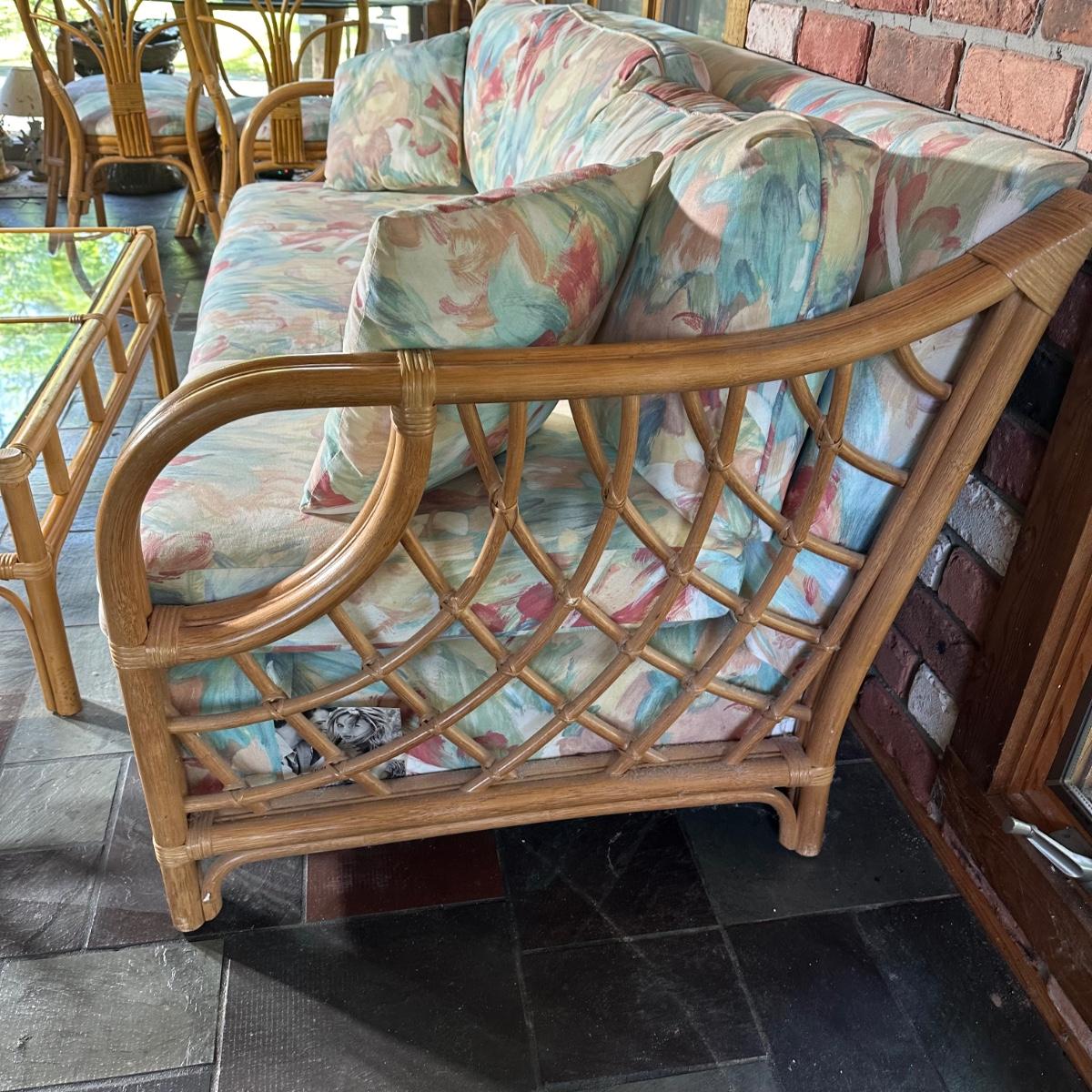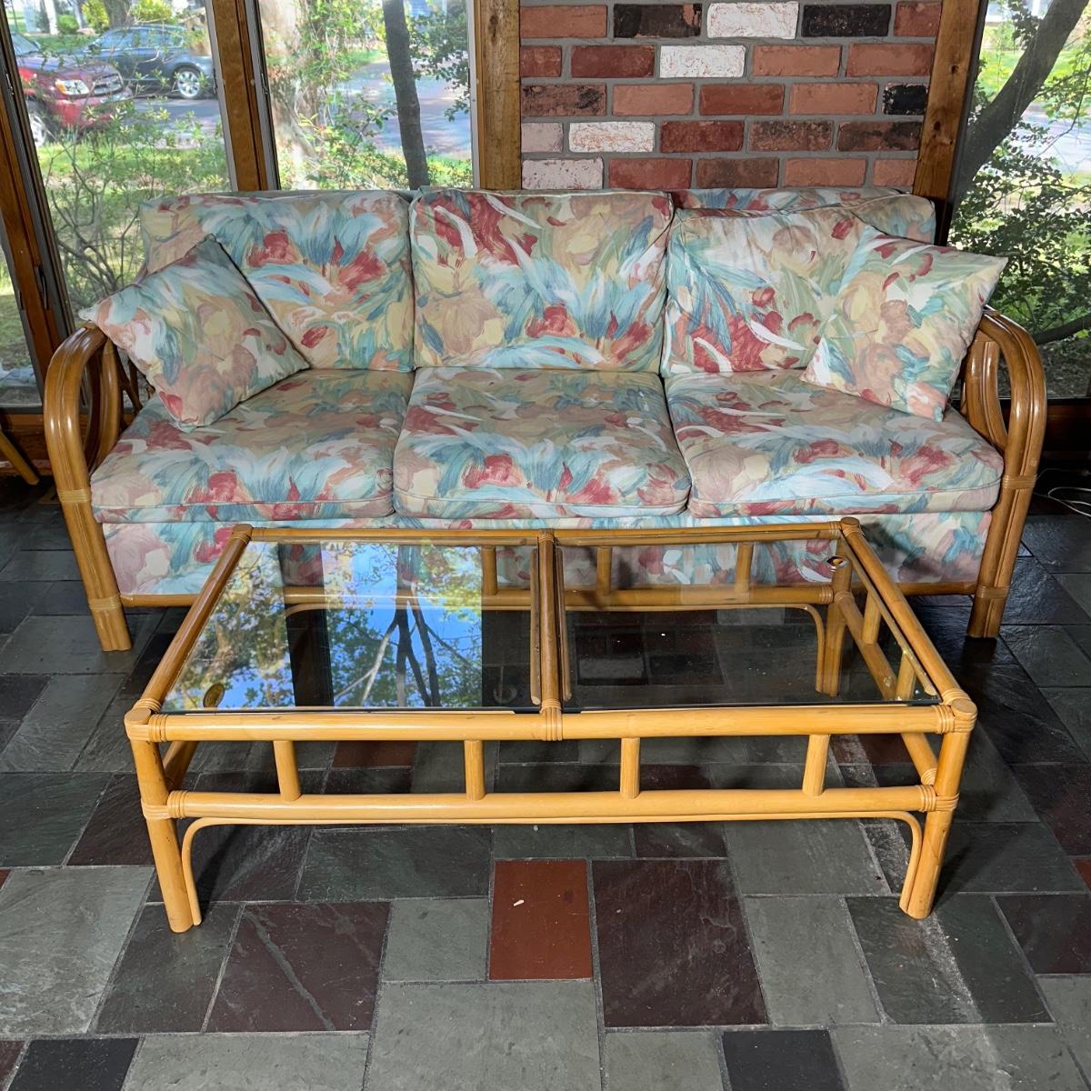 LOT 128P: Lane Venture Rattan Couch w/ Matching Coffee Table