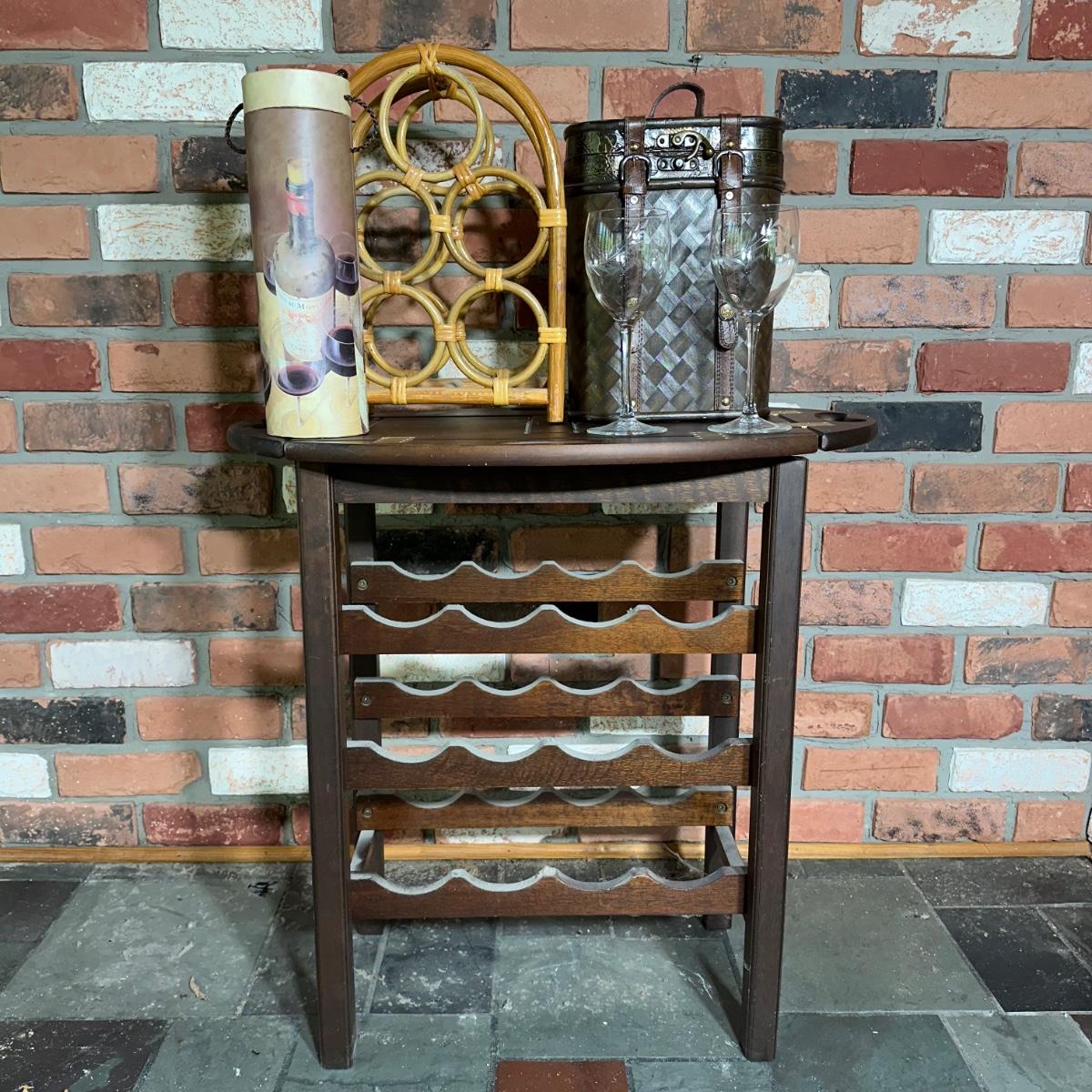 LOT 135P: Vintage Wooden Wine Rack w/ Removable Tray Table, Wine Rack & More