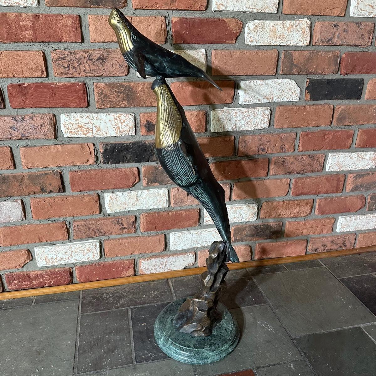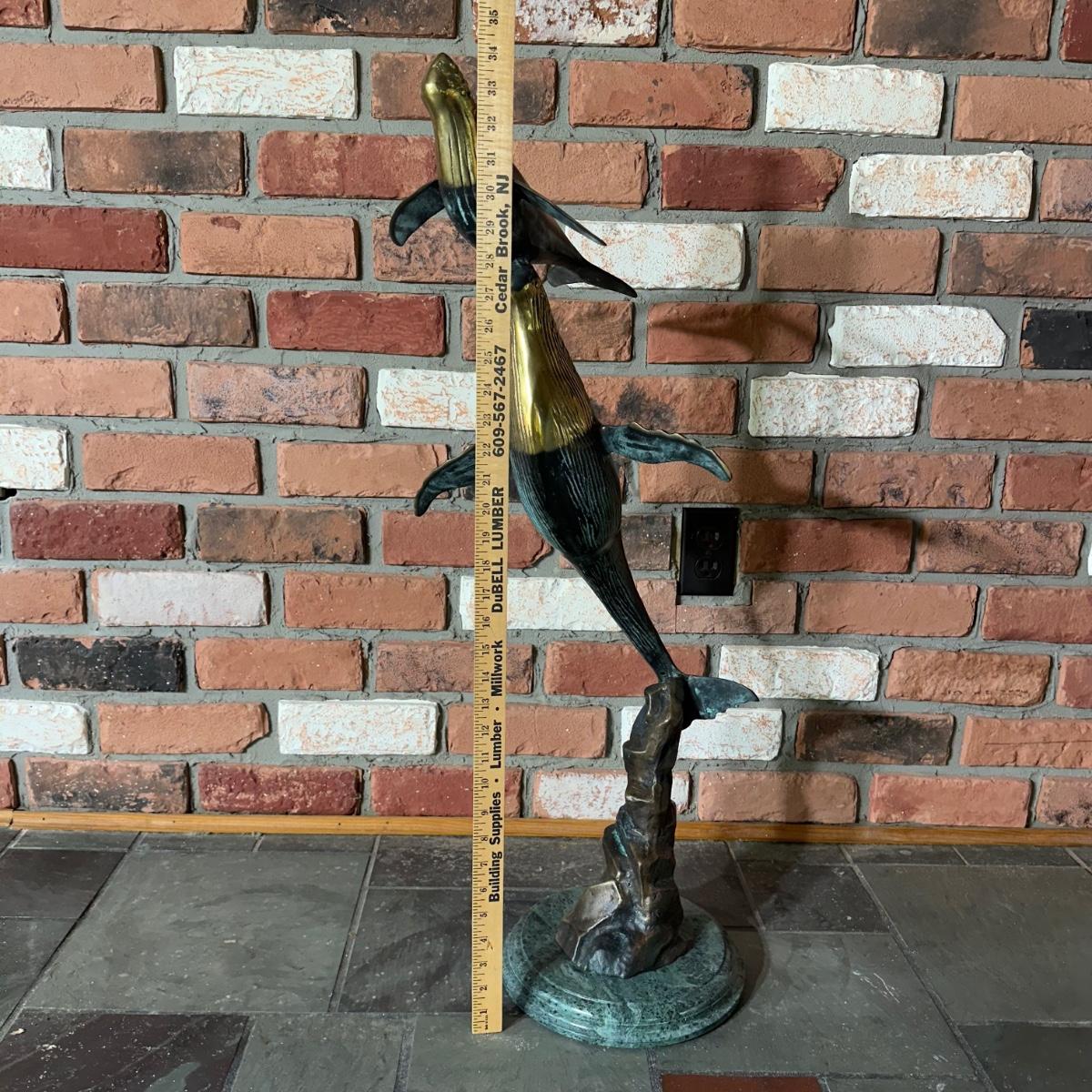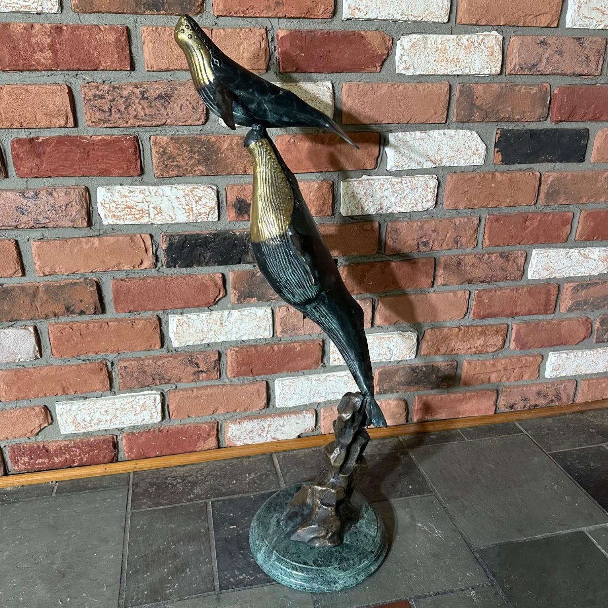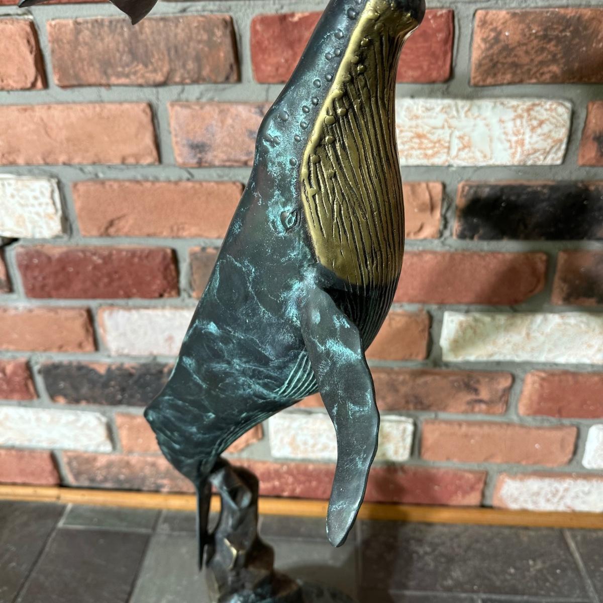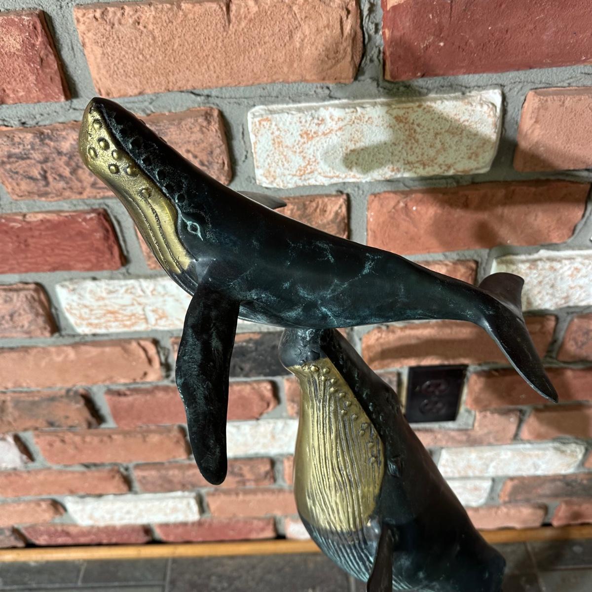 LOT 138P: Large 34" San Pacific International Marble Base Humpback Whale with Calf Sculpture