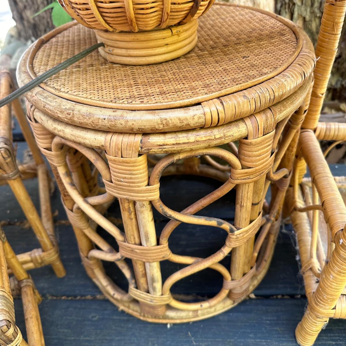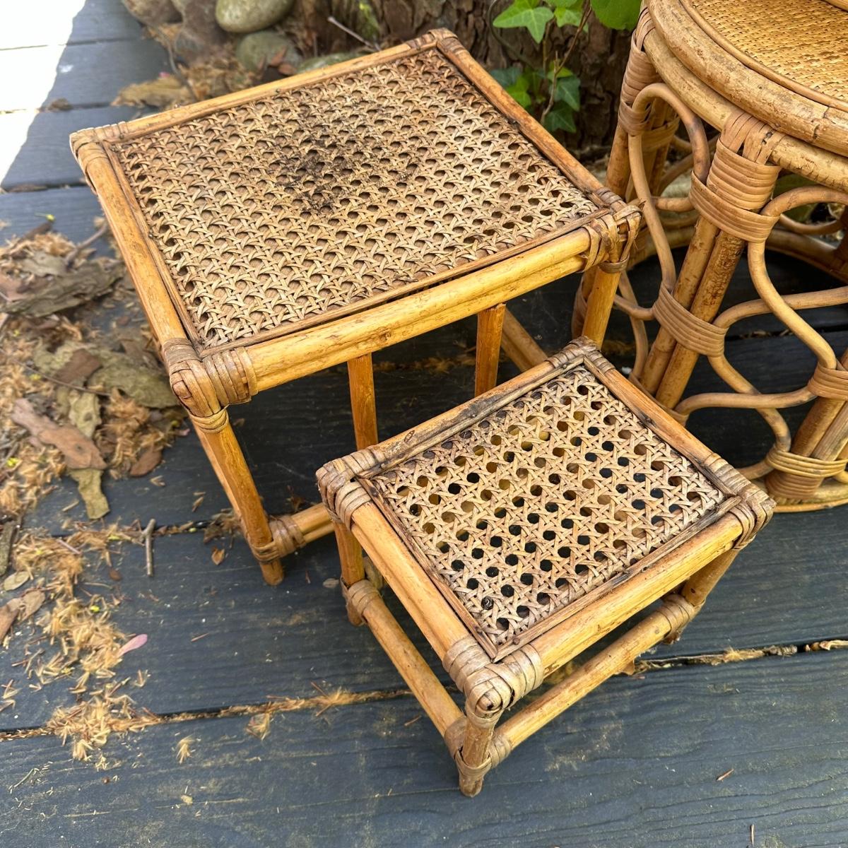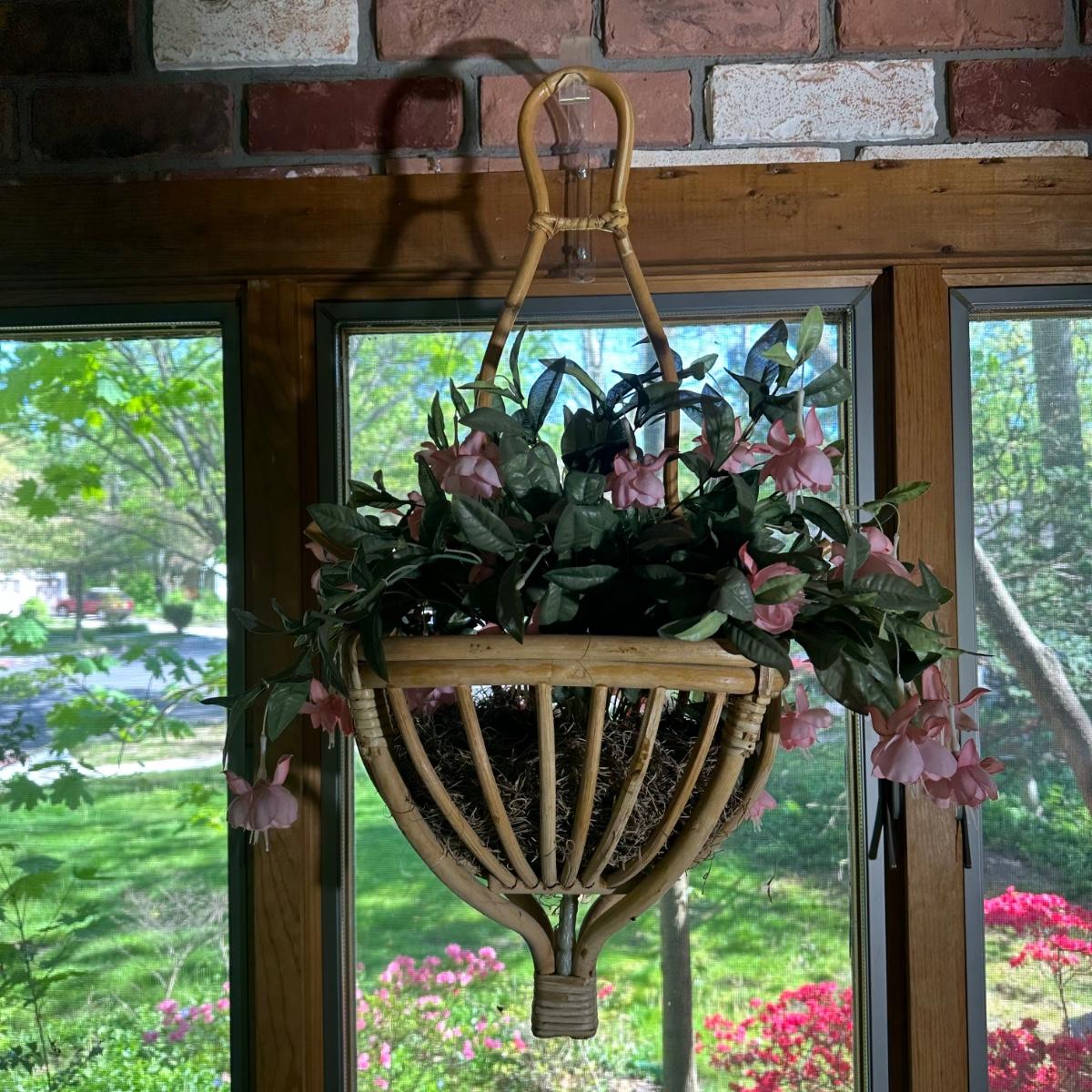 LOT 148P: Rattan Lamp, Stools, Plant Hangers & More
