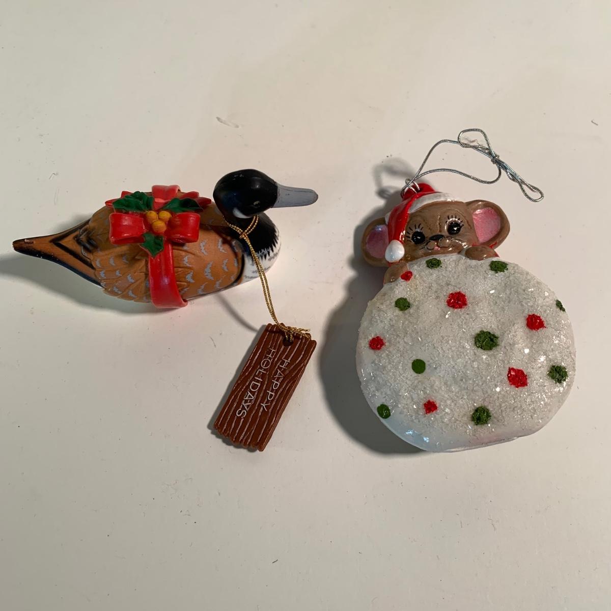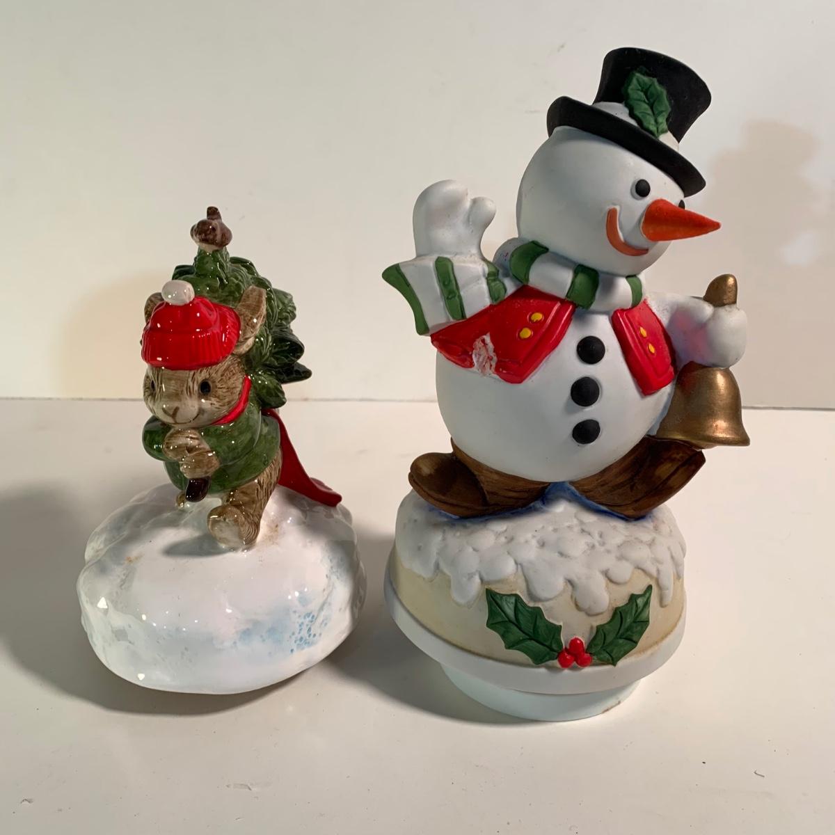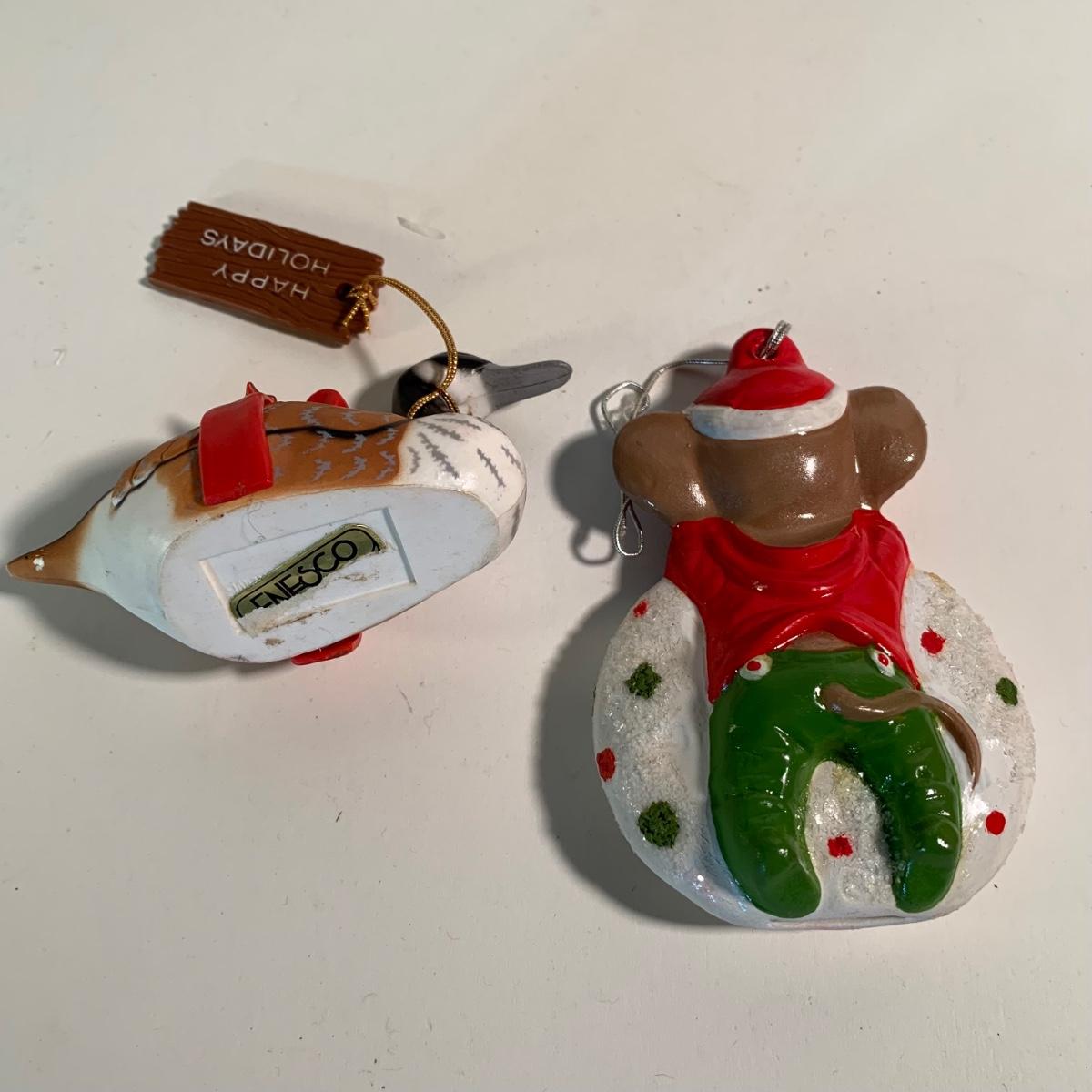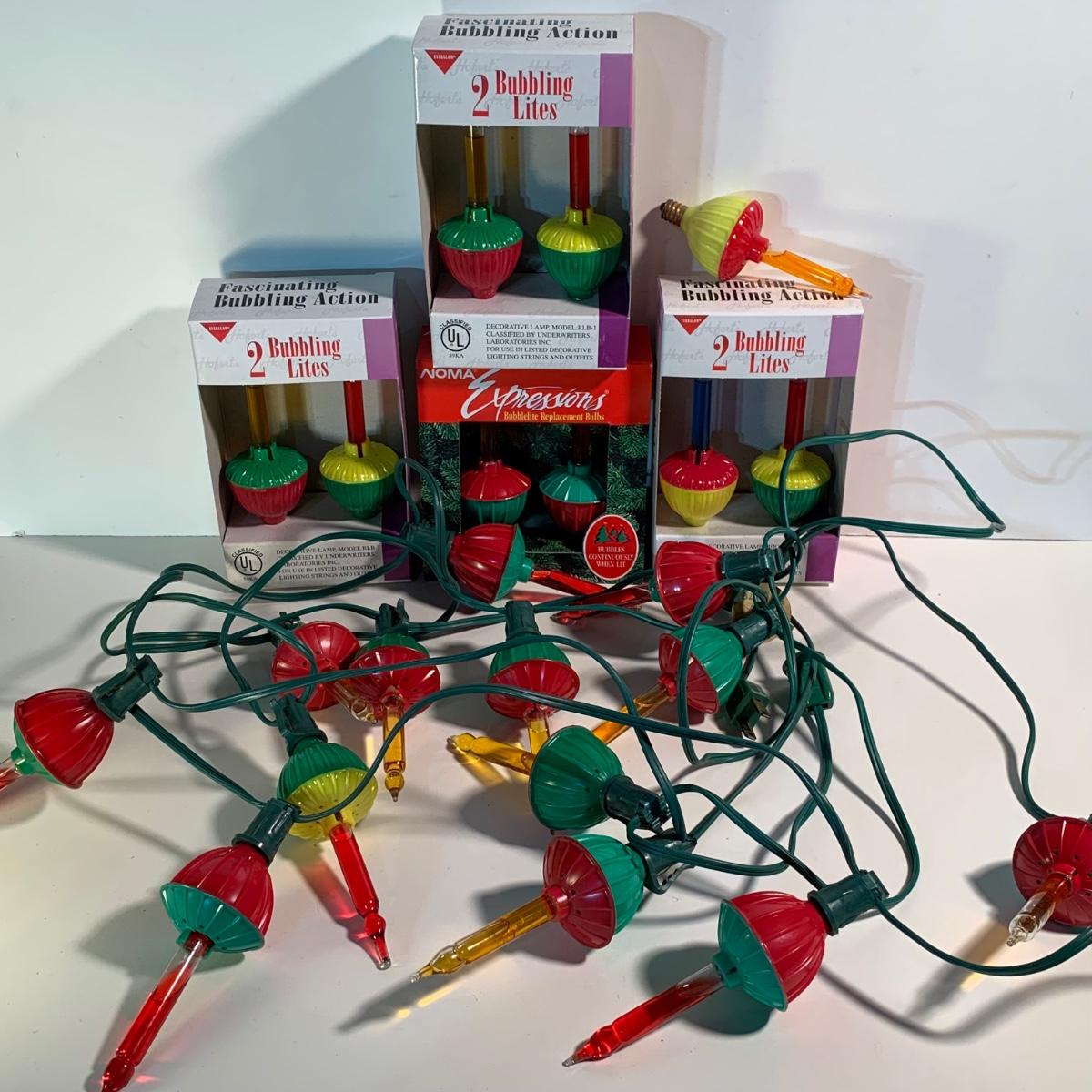 LOT 199 B: Vintage Bubble Christmas Lights W/ Replacements, Enesco Ceramic Snowmen & Plastic Goose Ornament, & More
