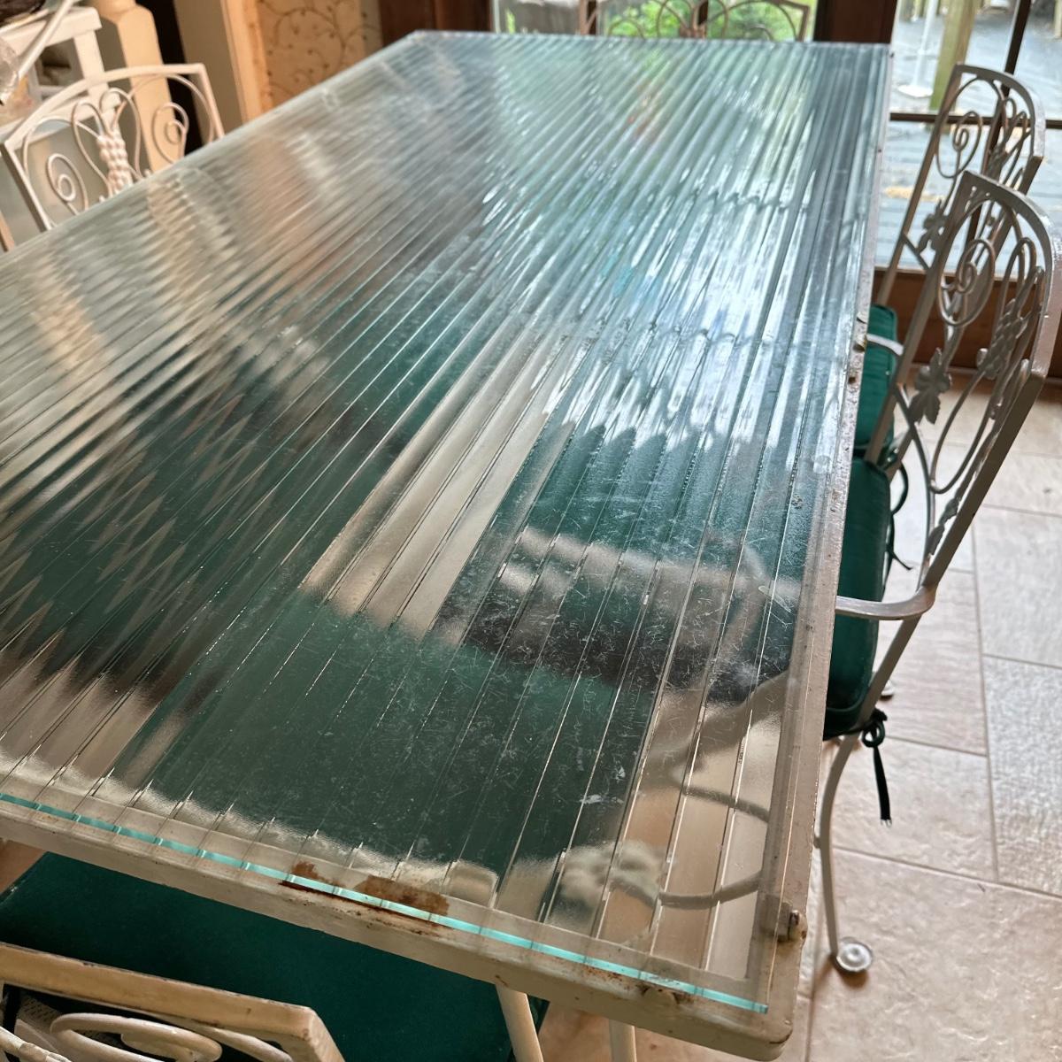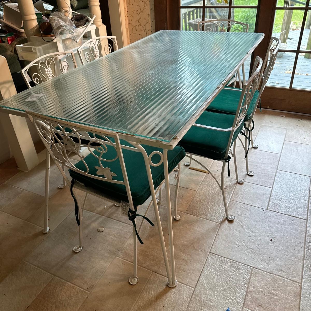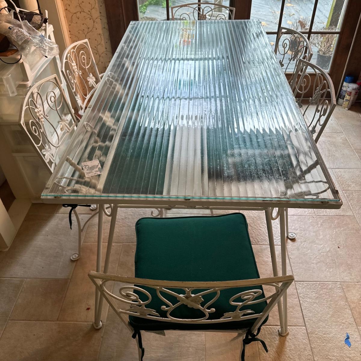 LOT 210K: Old Castle Tempered Glass Top Dining Table w/ 6 Chairs