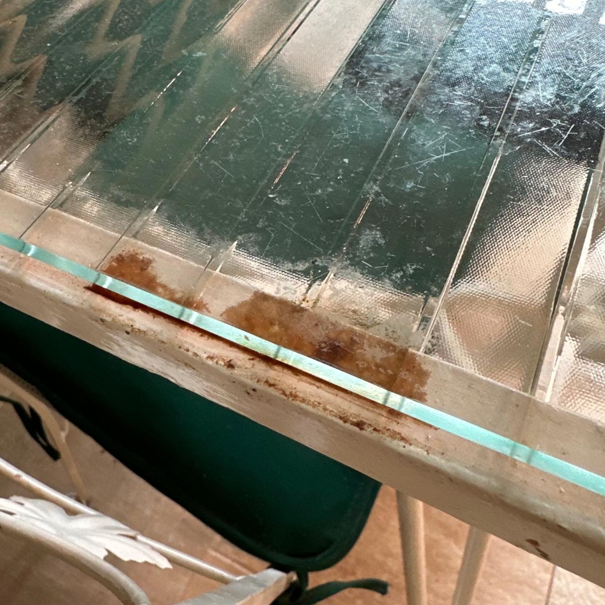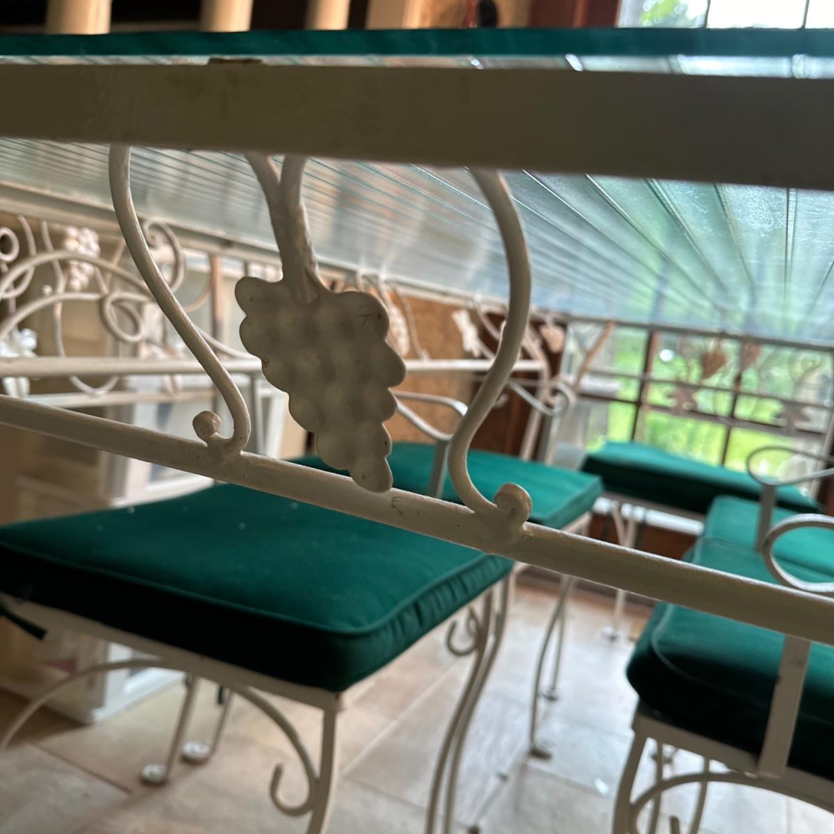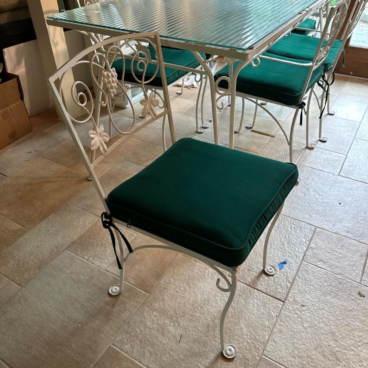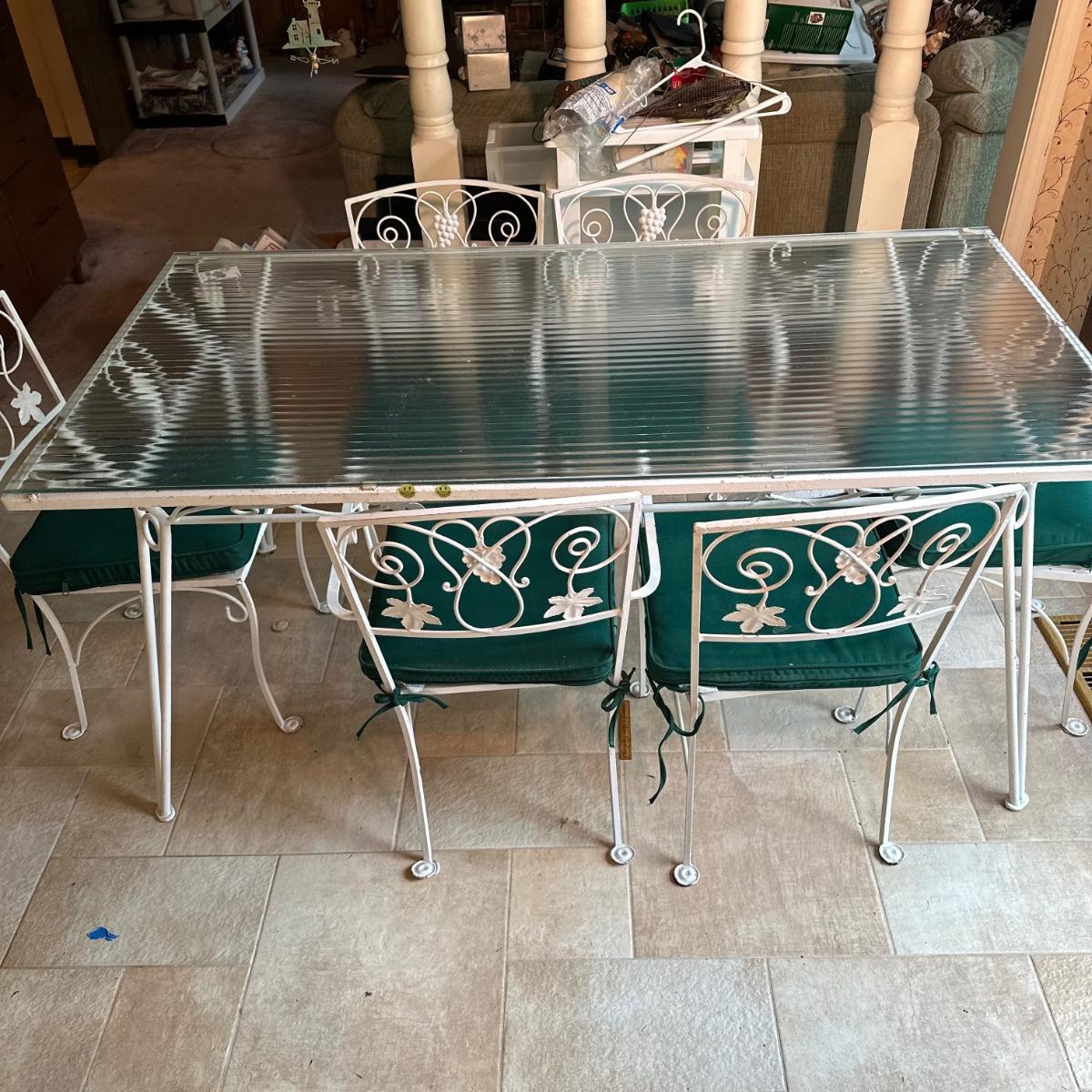 LOT 210K: Old Castle Tempered Glass Top Dining Table w/ 6 Chairs