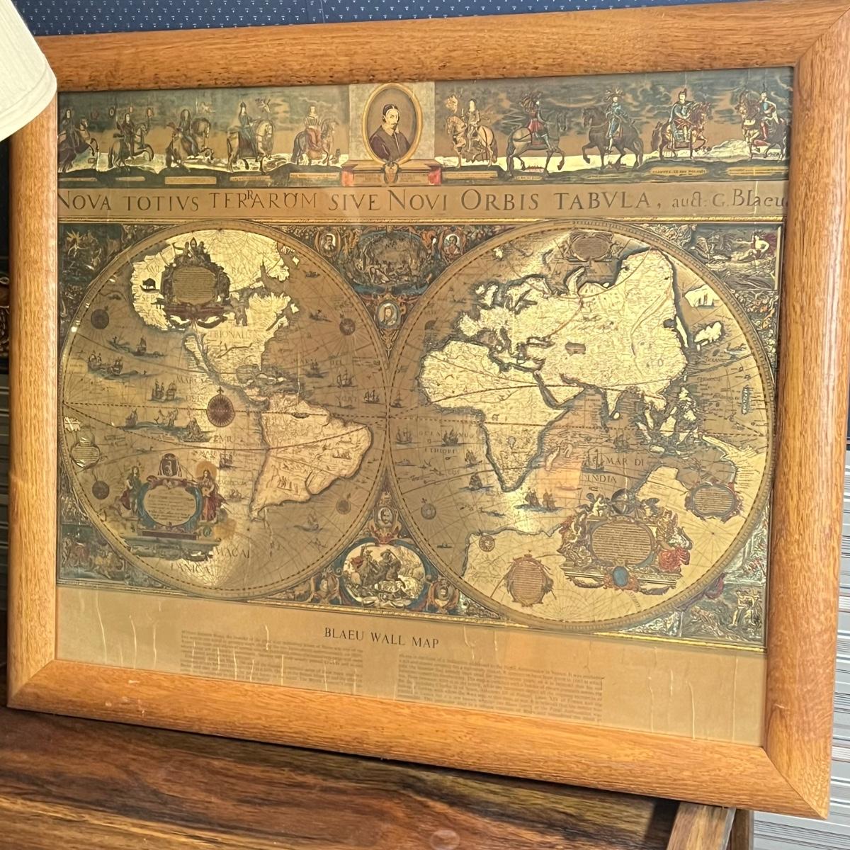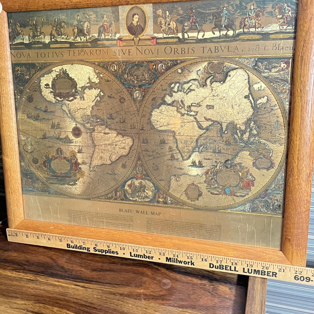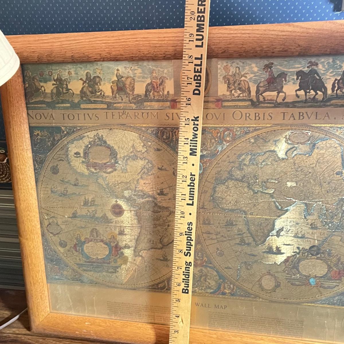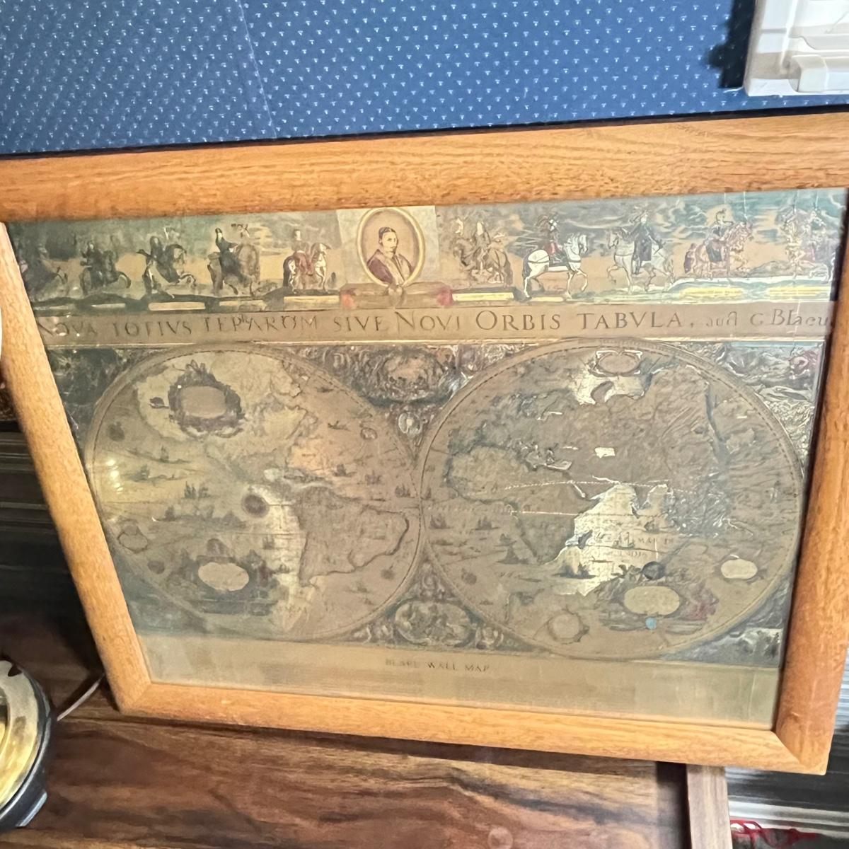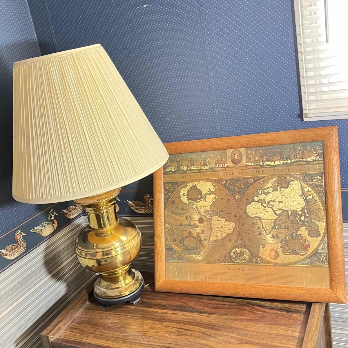 LOT 235X: Decorative Map Wall Hanging and Brass Lamp