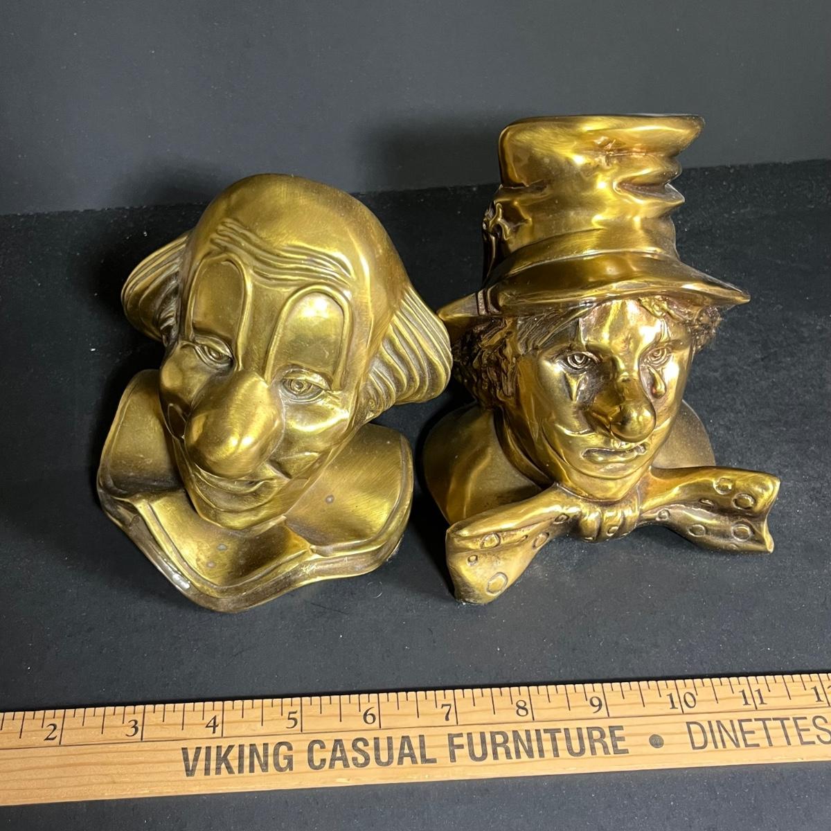 LOT 237M: Pair of Vintage Brass Clown Bookends