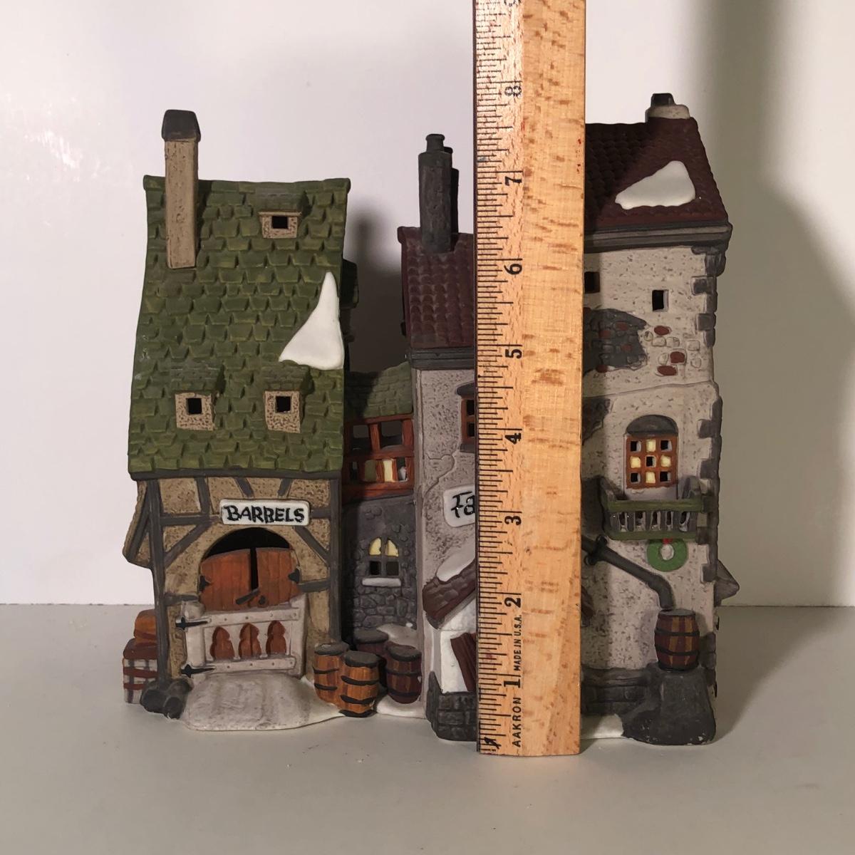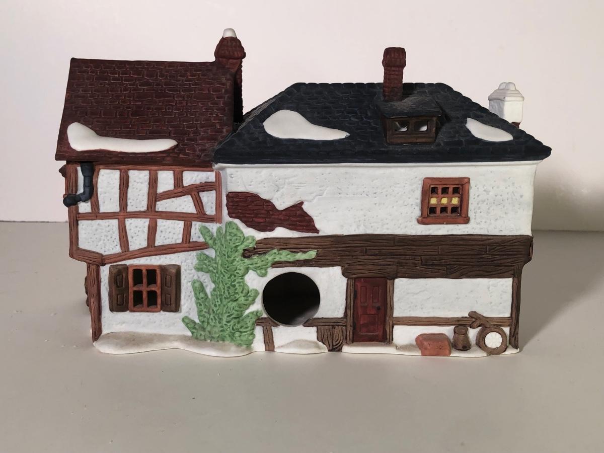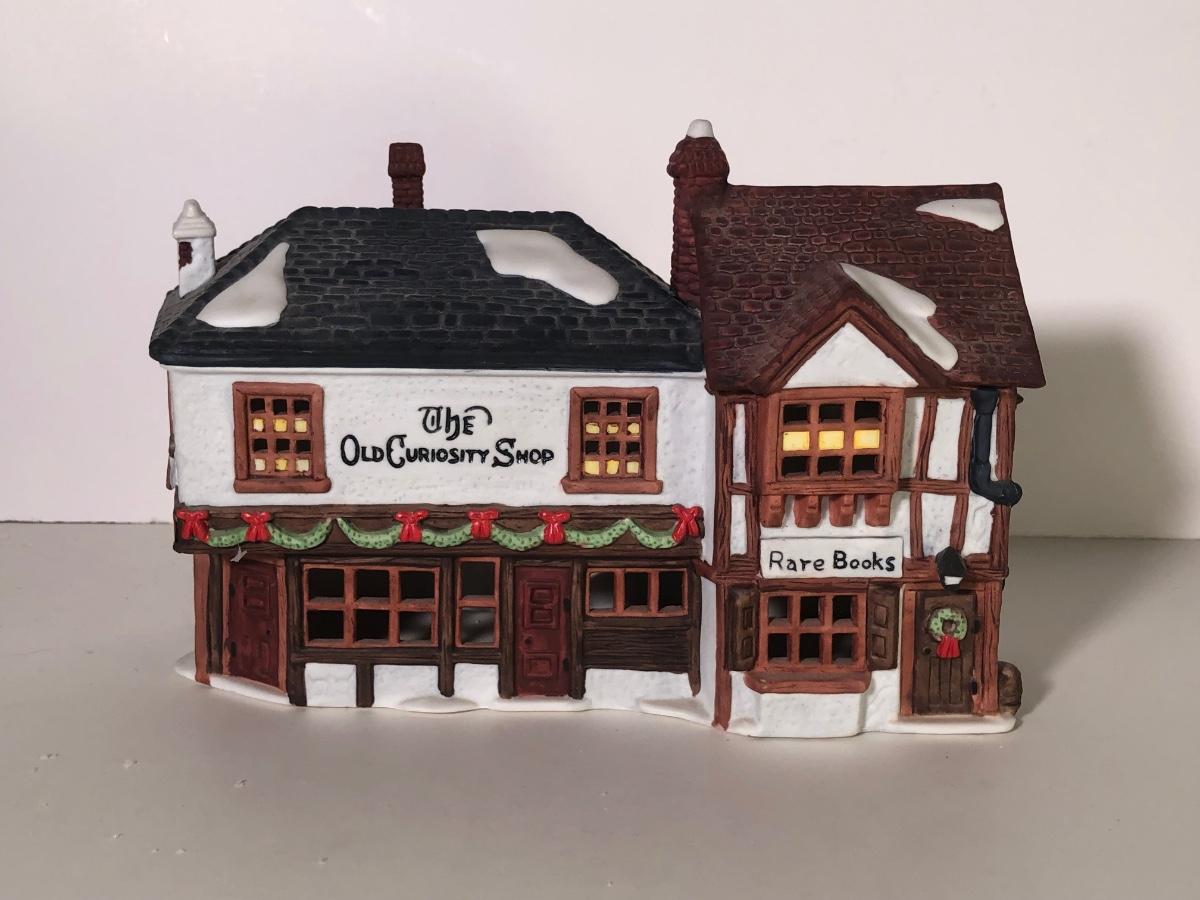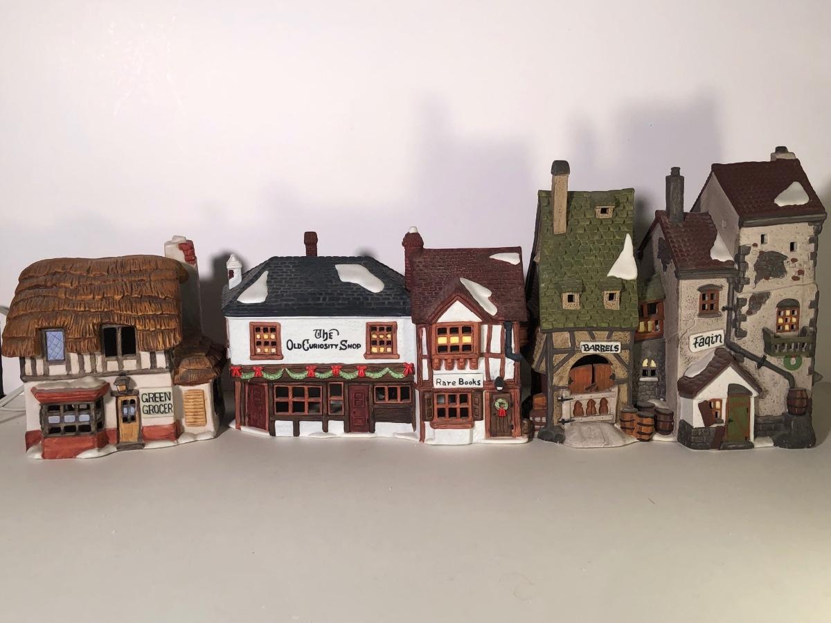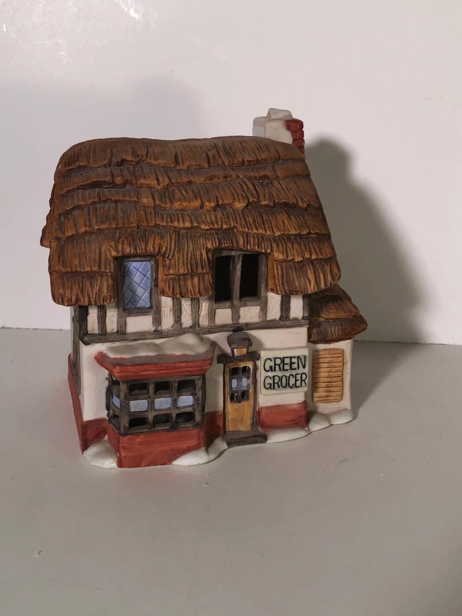 LOT 247G: Department 56 Dickens' Village - 1990 Oliver Twist Fagin's Hide-A-Way #5552-2, 1984Green Grocer & 1987 Old Curiosity Shoppe