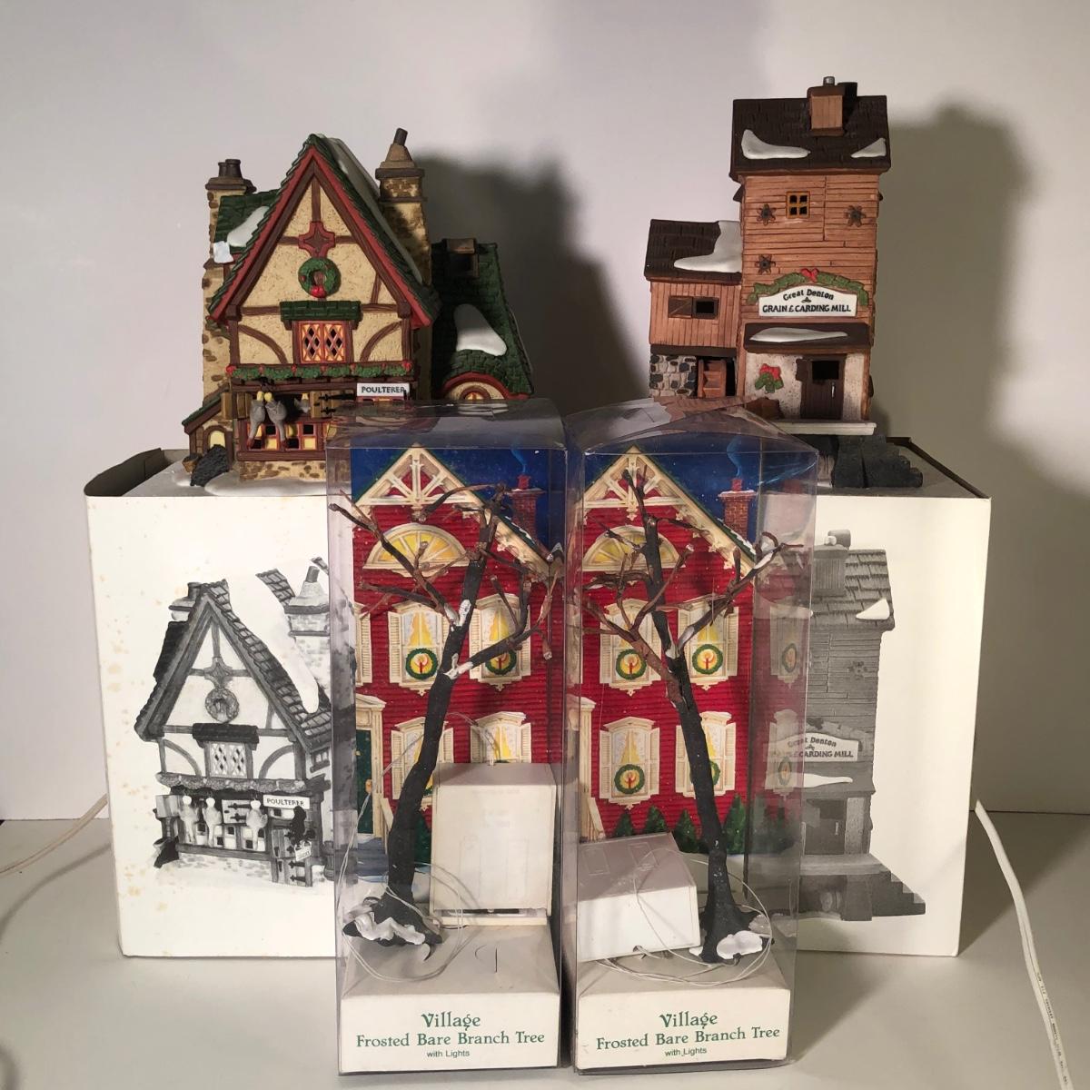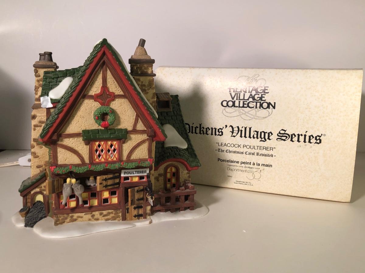 LOT 248G: Dept 56 Dickens' Village w/ Boxes - 1997 Leacock Poulterer, 1993 Great Denton Mill & More
