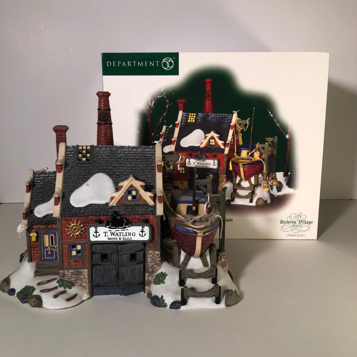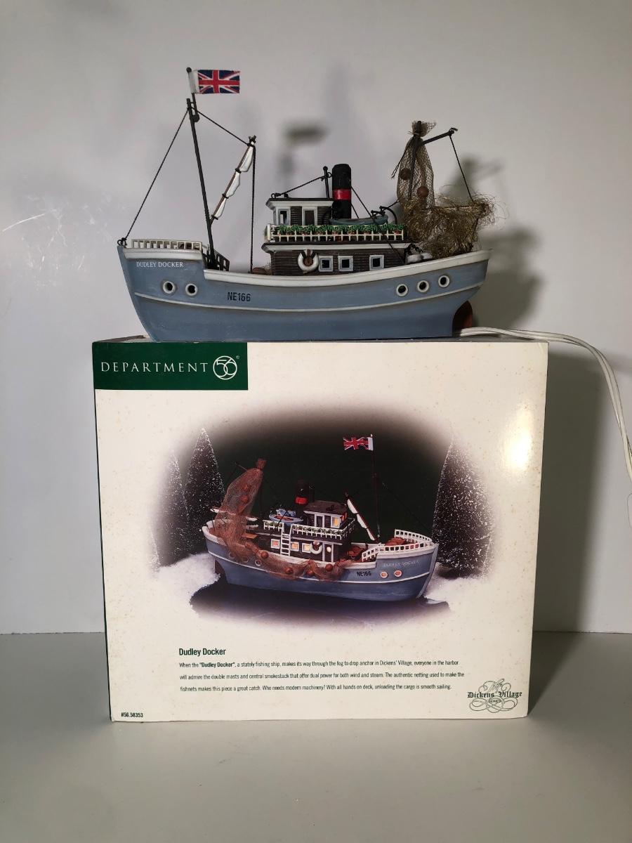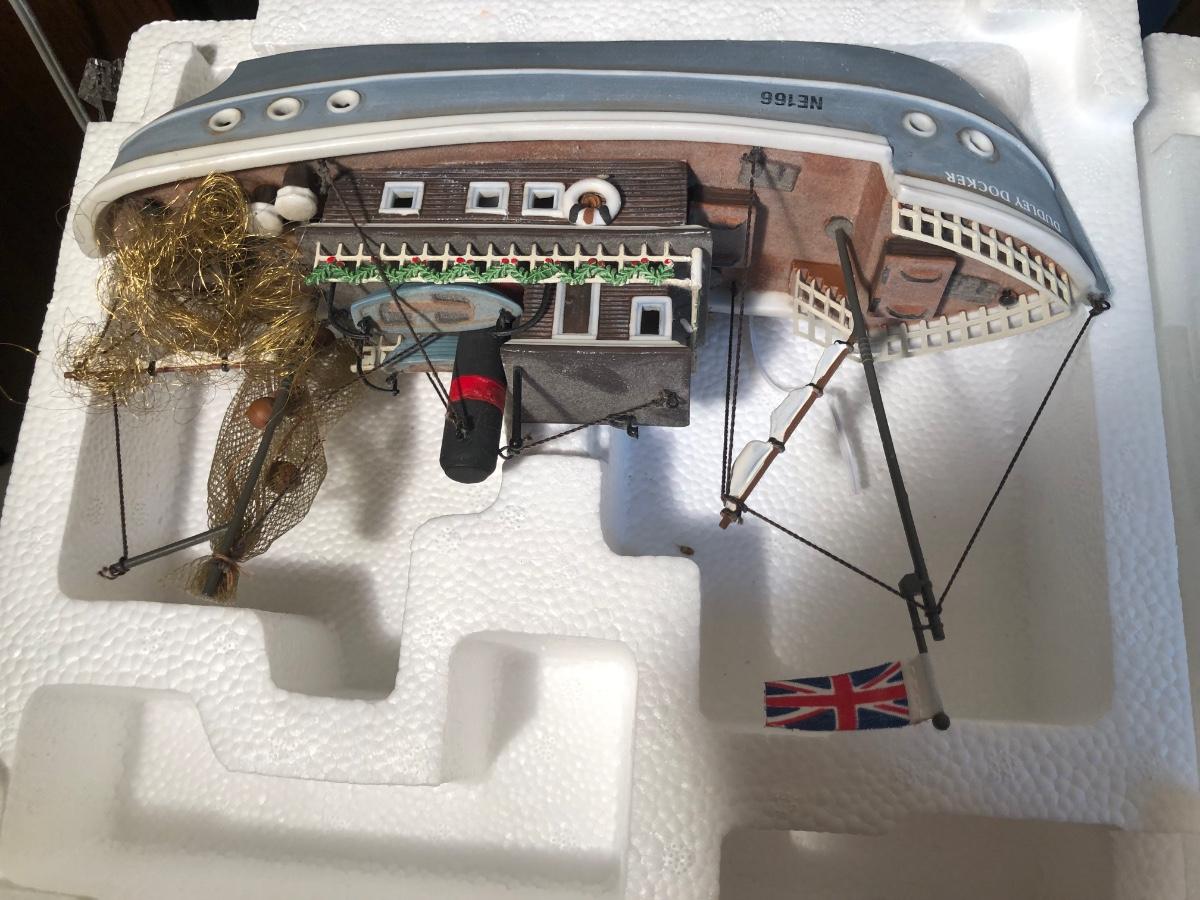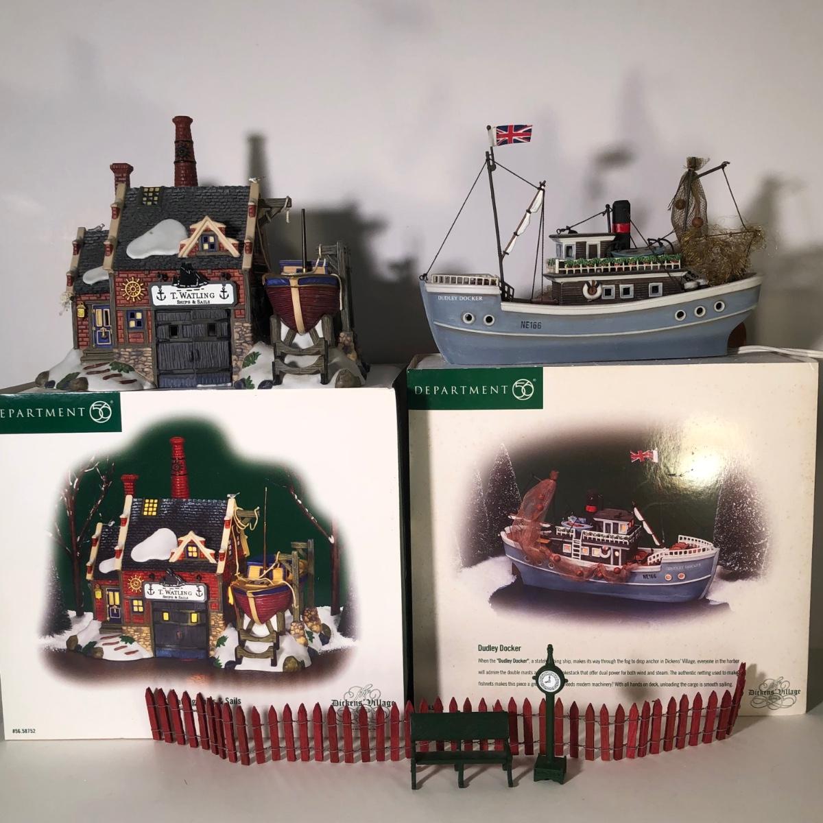 LOT 249G: Department 56 Dickens' Village w/ Boxes & More - 1999 Dudley Docker & 2006 T. Walting Ships and Sails