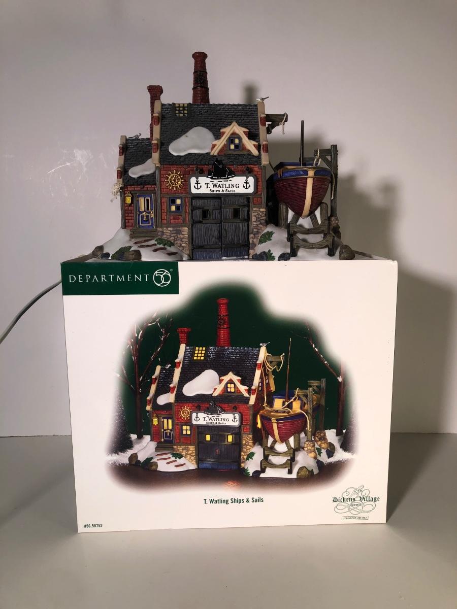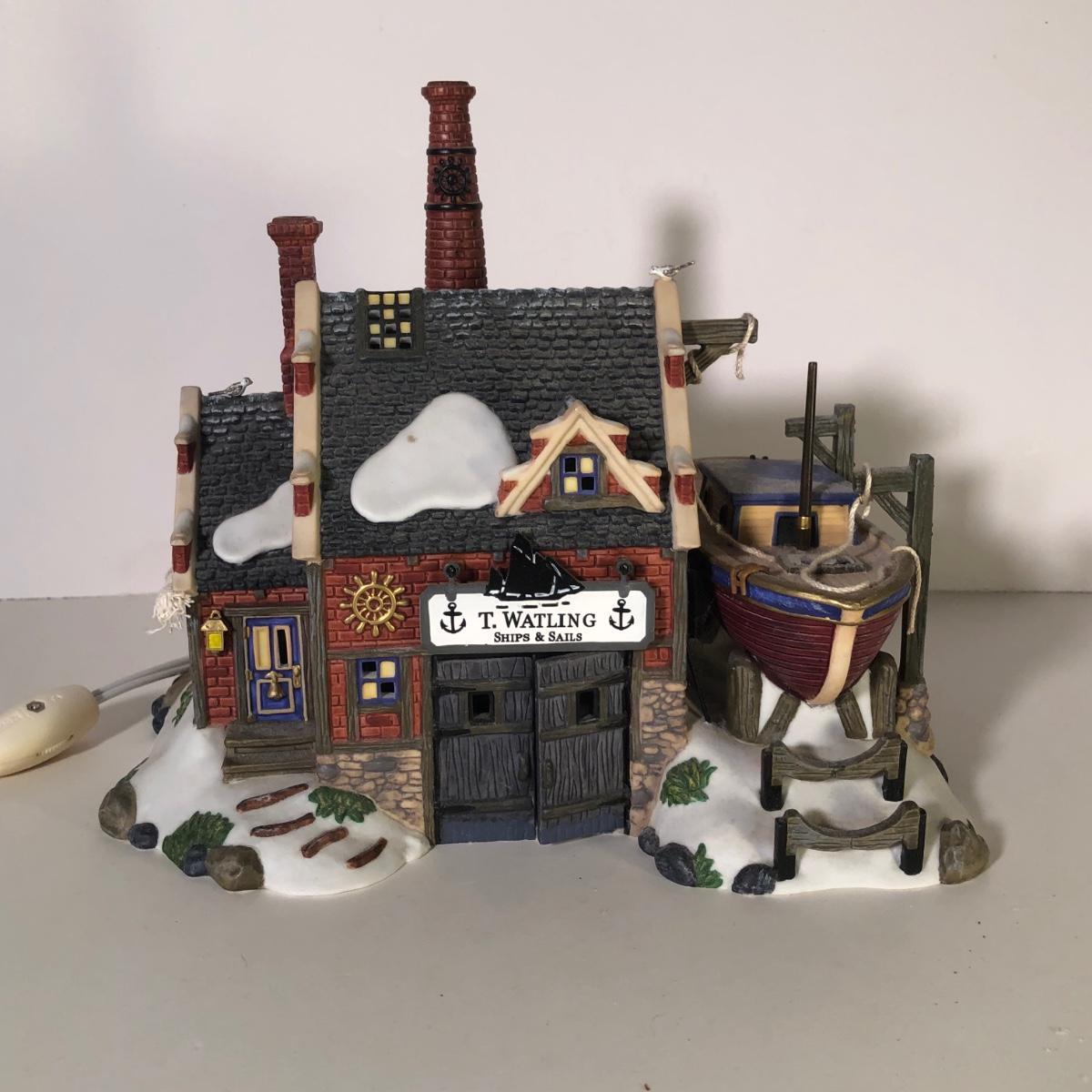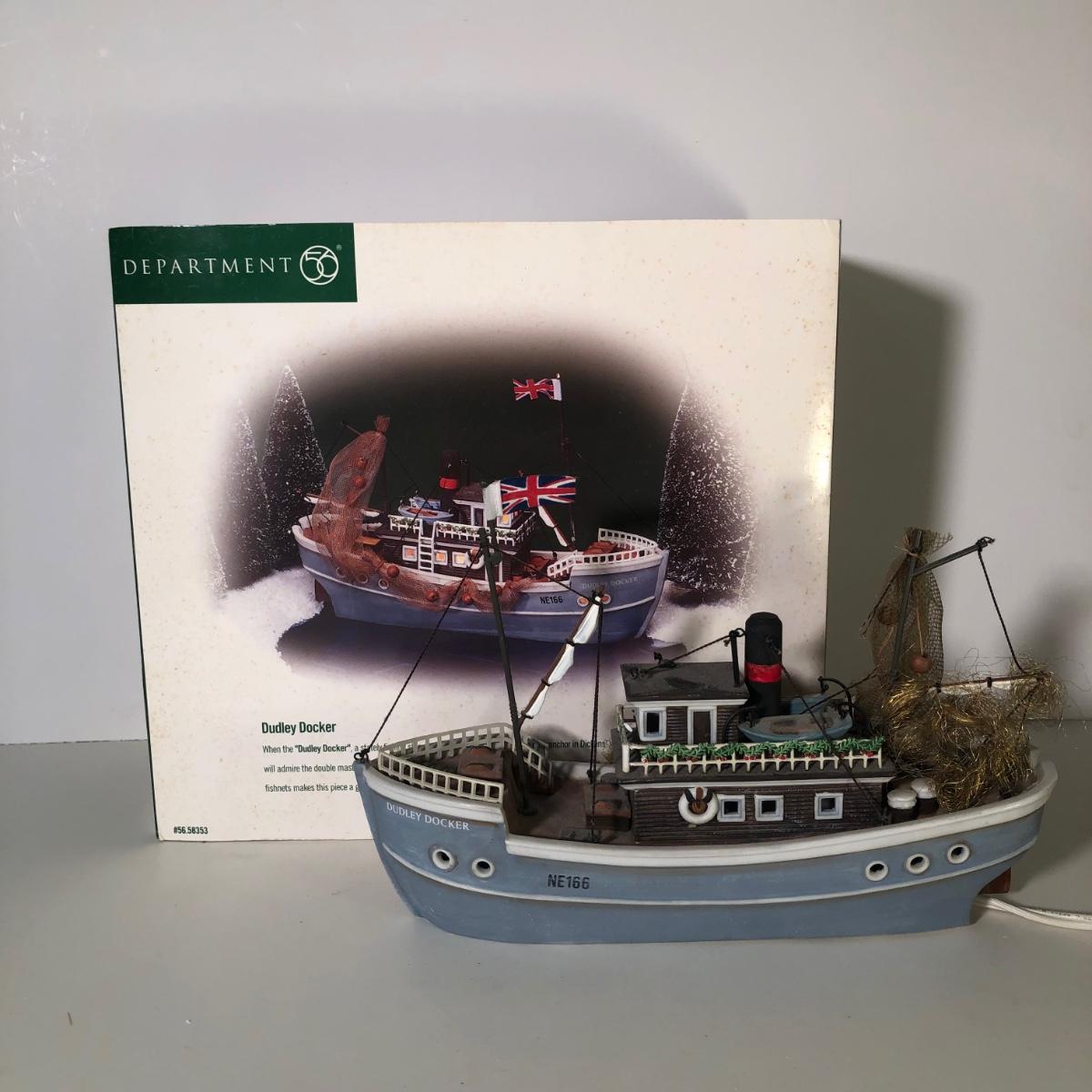 LOT 249G: Department 56 Dickens' Village w/ Boxes & More - 1999 Dudley Docker & 2006 T. Walting Ships and Sails