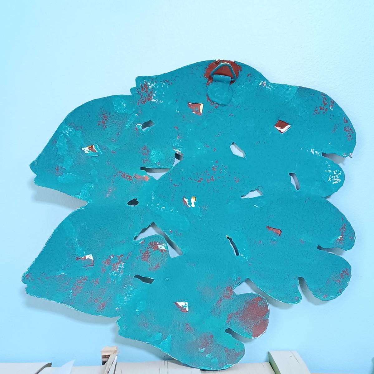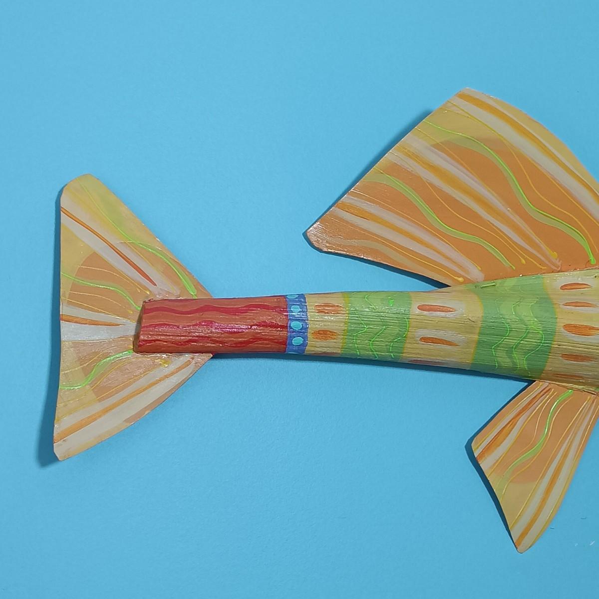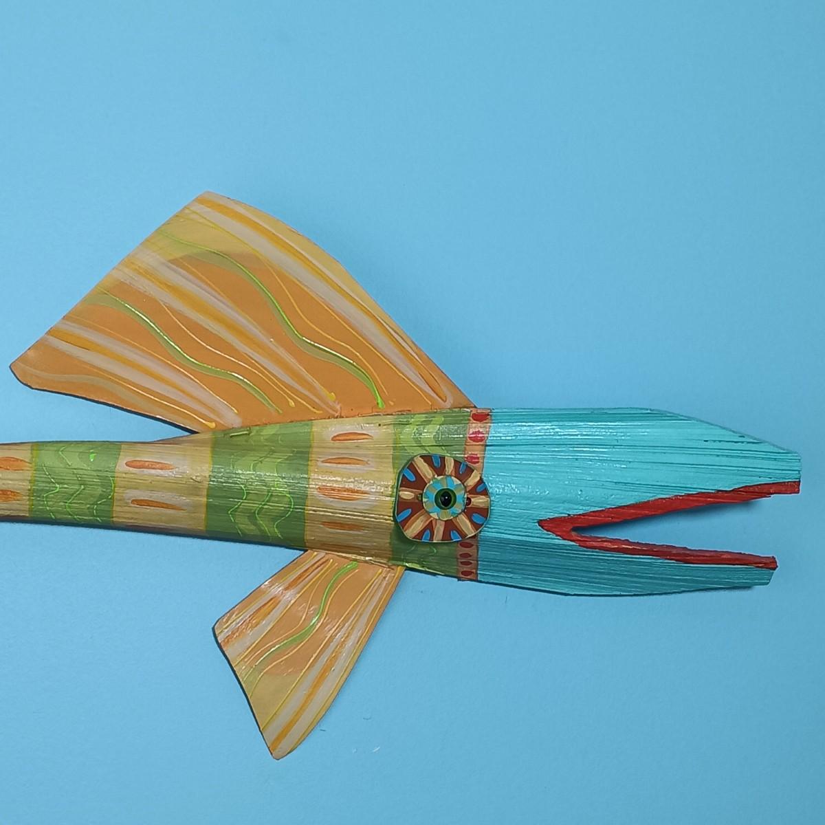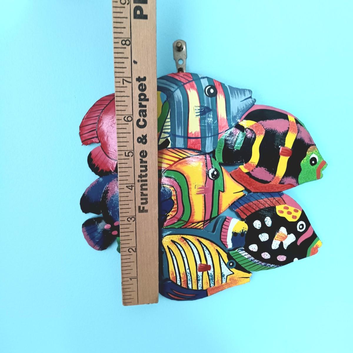 LOT 28: Signed Palm Frond Fish & Painted Metal School of Fish Wall Art