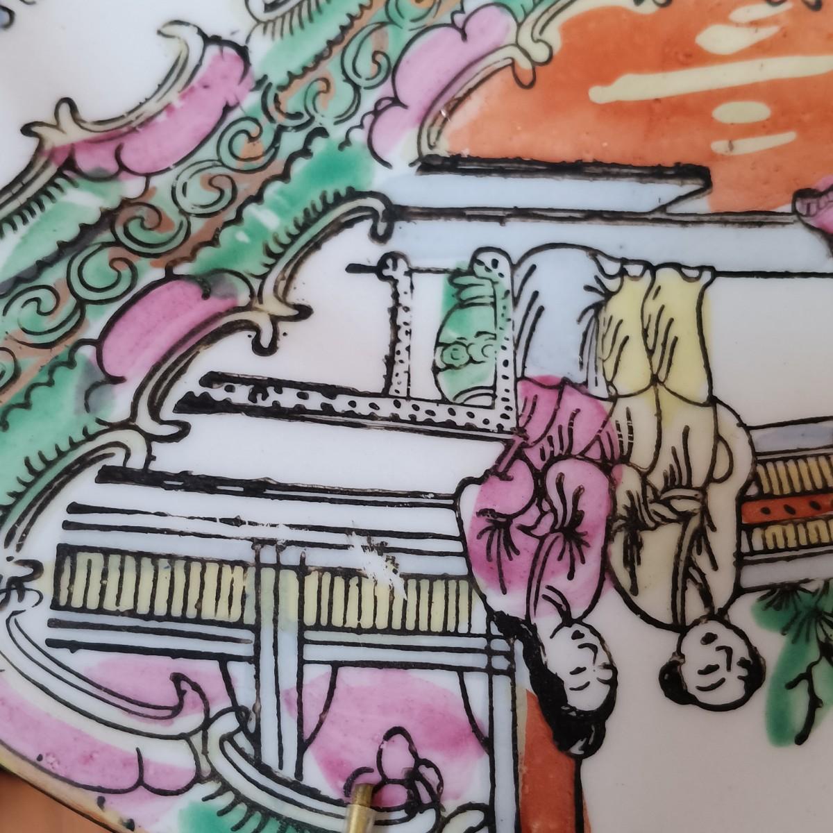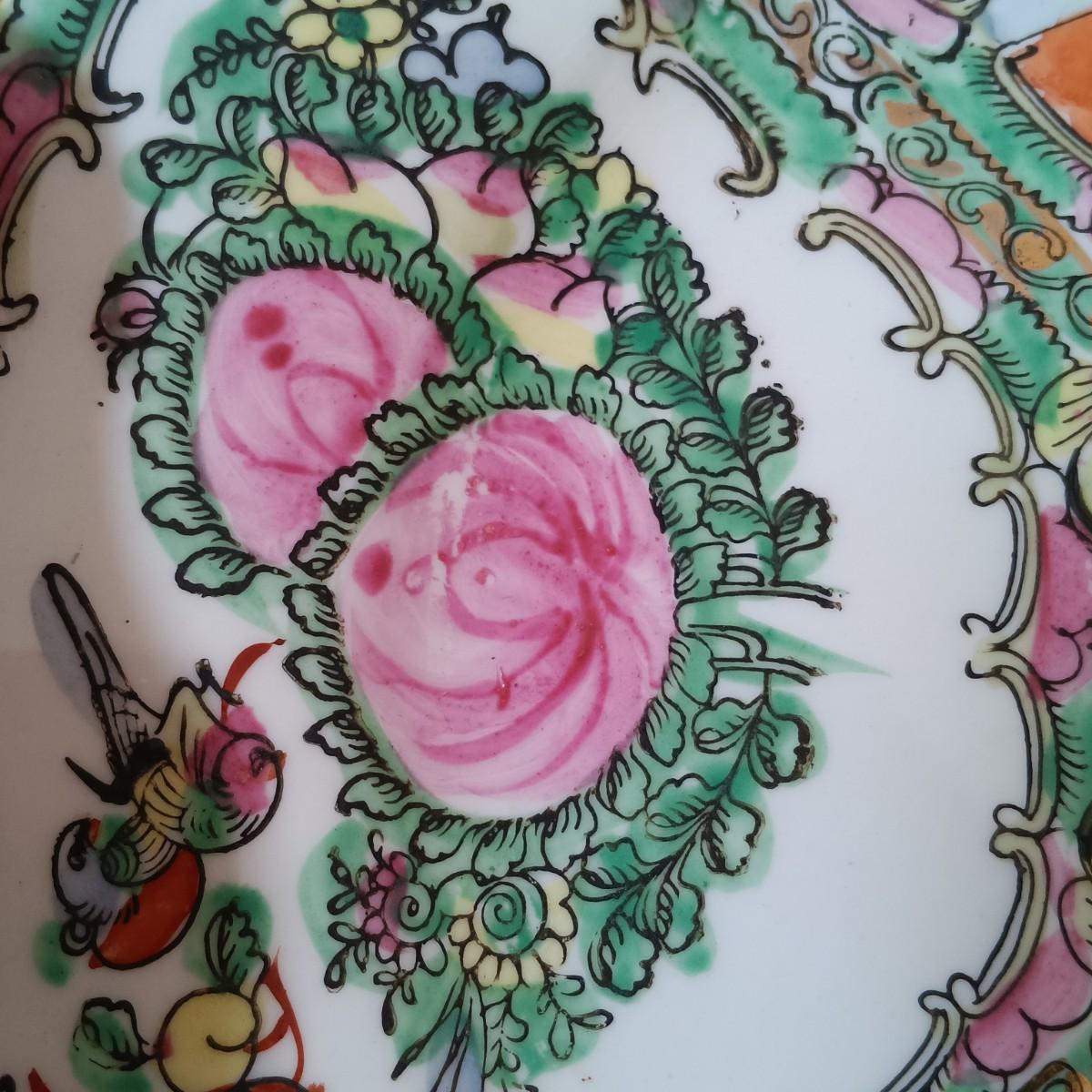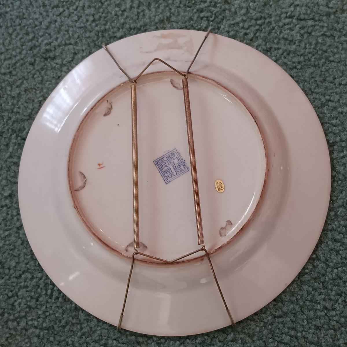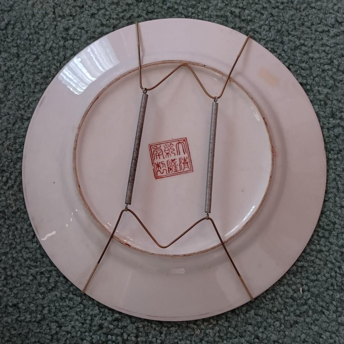 LOT 77: Set of 3 Satsuma-Style and Famille Rose Chinese Plates on Brass Wall Display w/ Floral Arrangement
