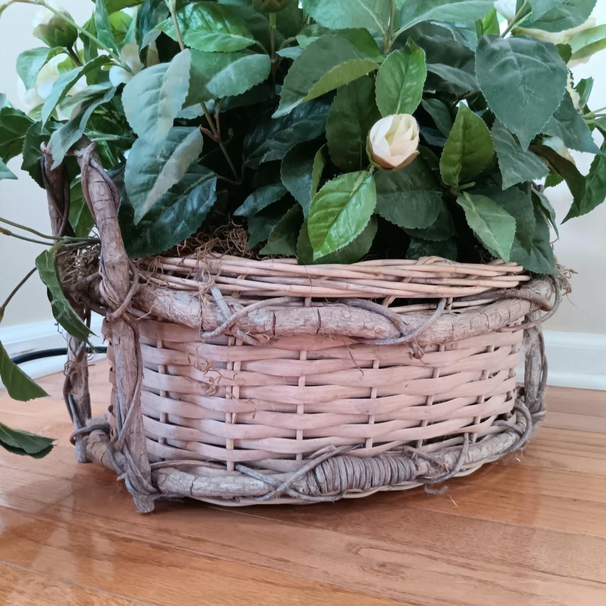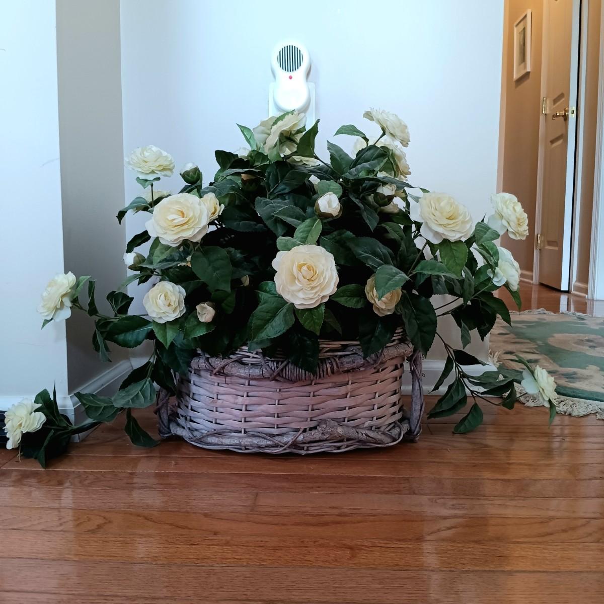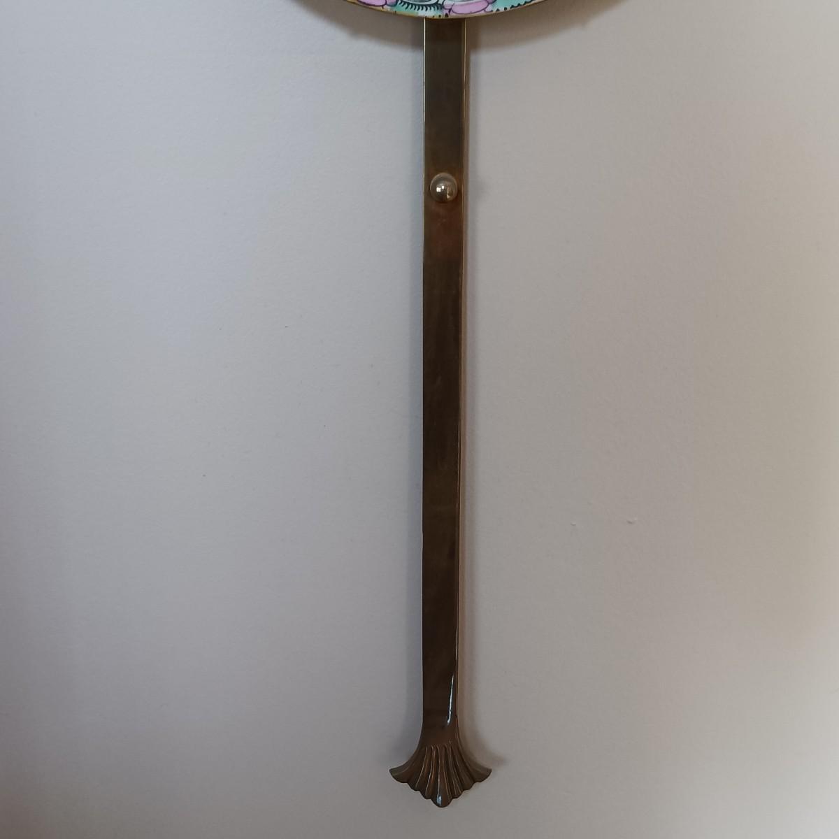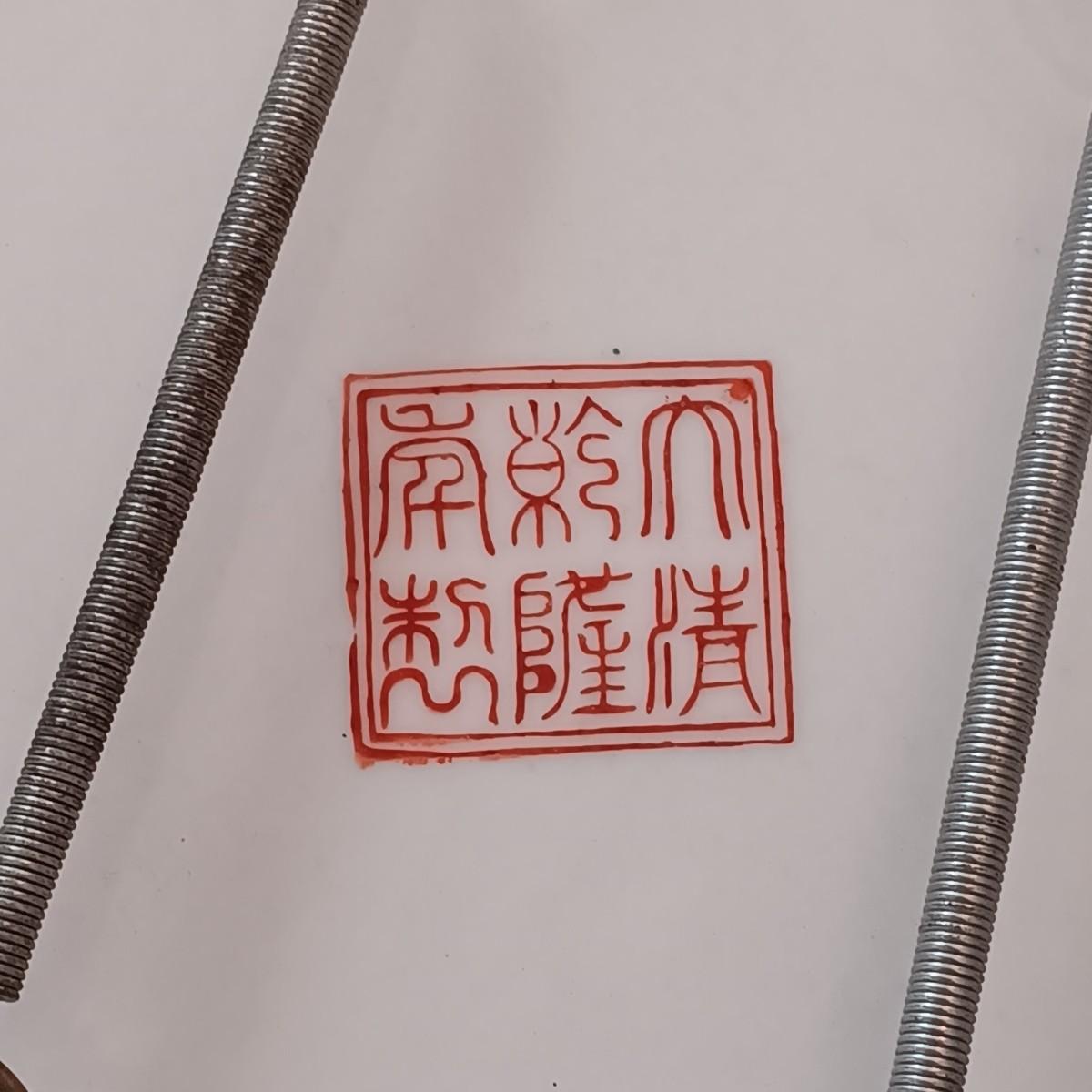 LOT 77: Set of 3 Satsuma-Style and Famille Rose Chinese Plates on Brass Wall Display w/ Floral Arrangement