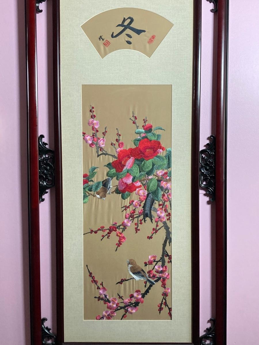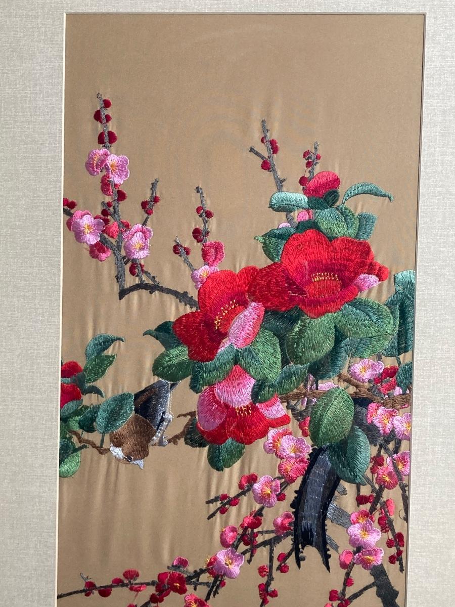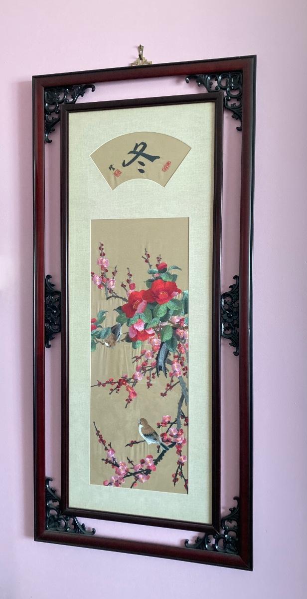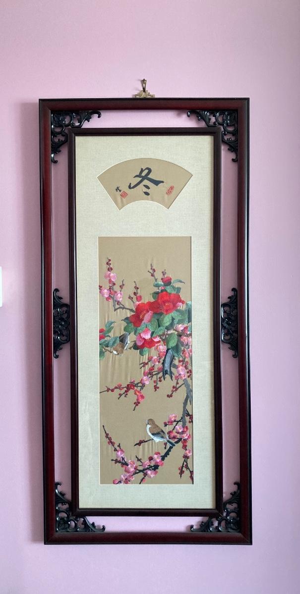 LOT 116: Asian Silk Floral Wall Panel