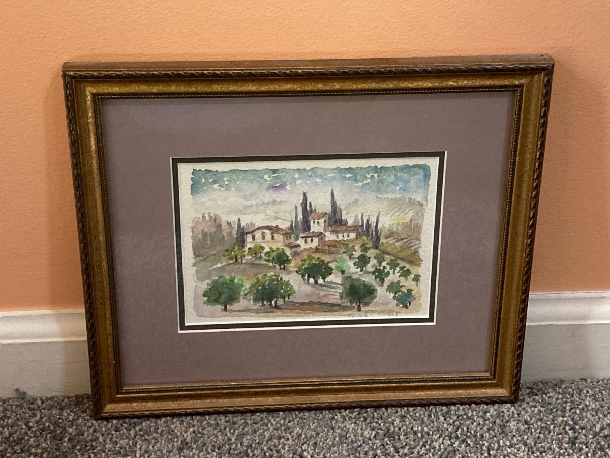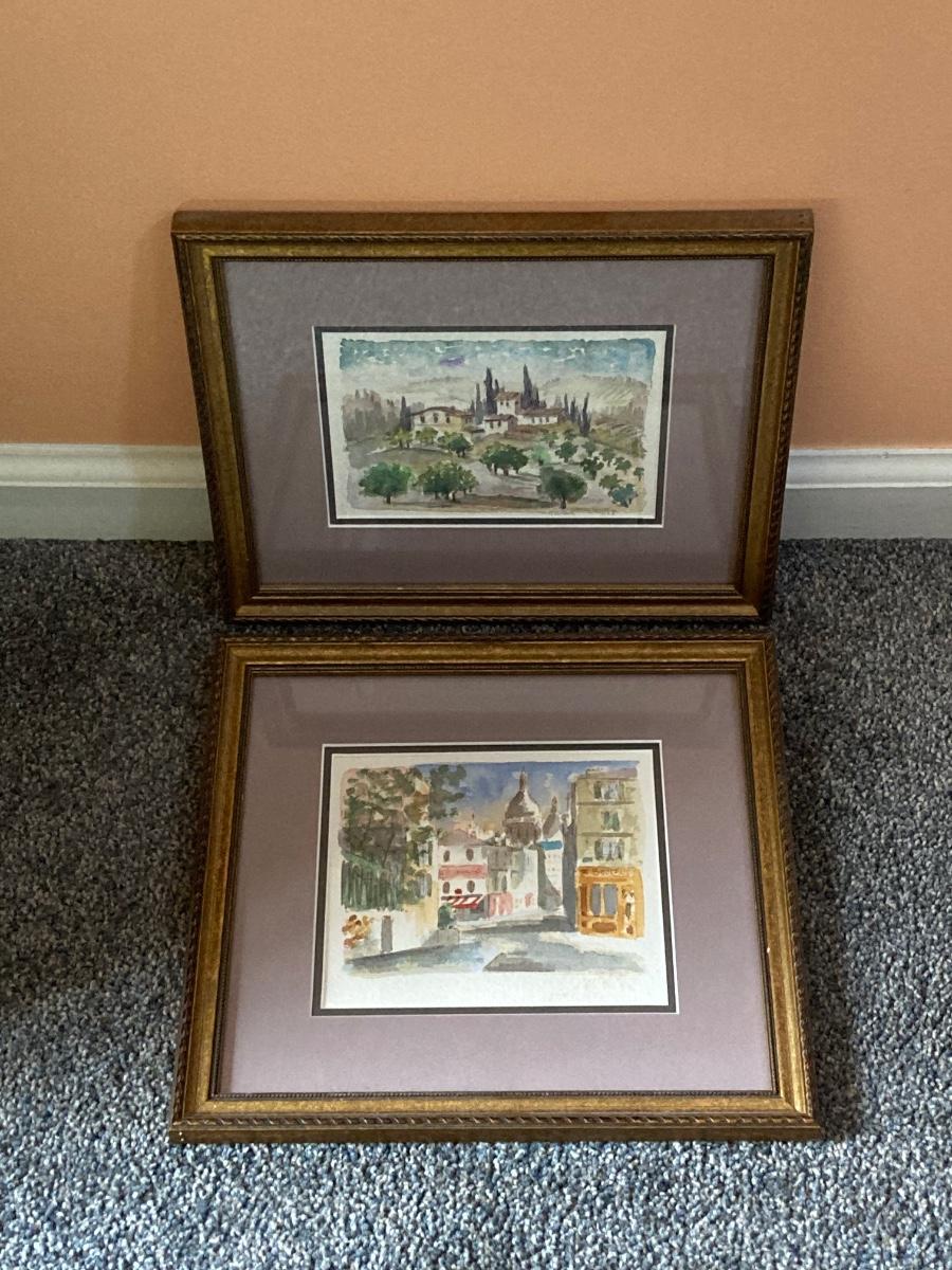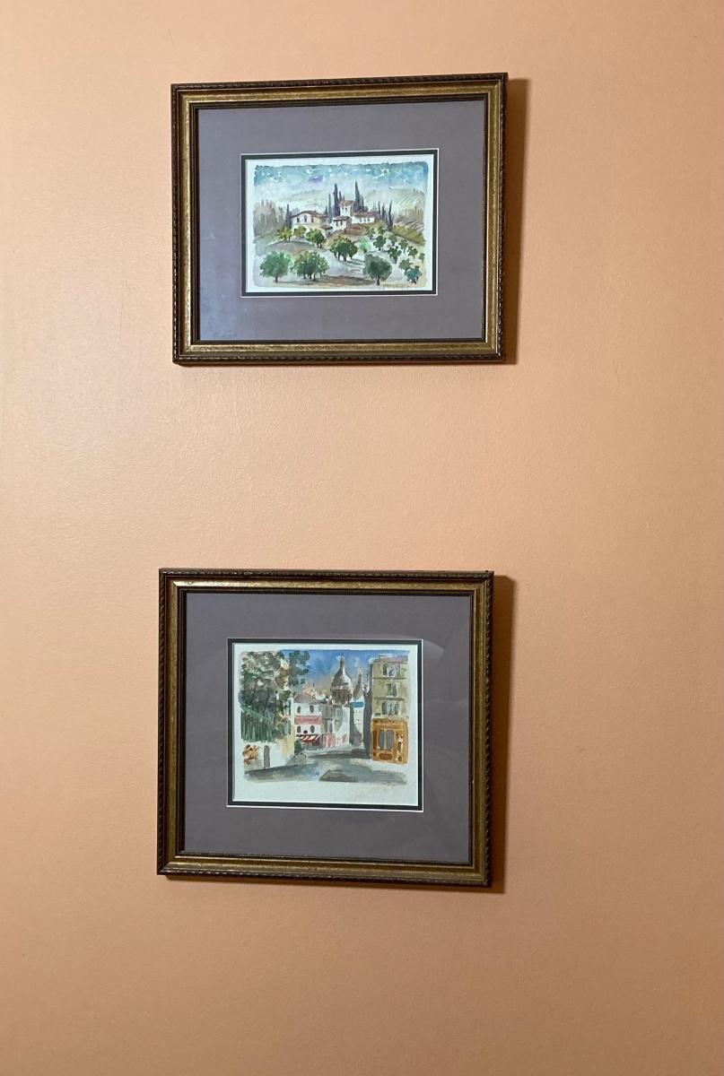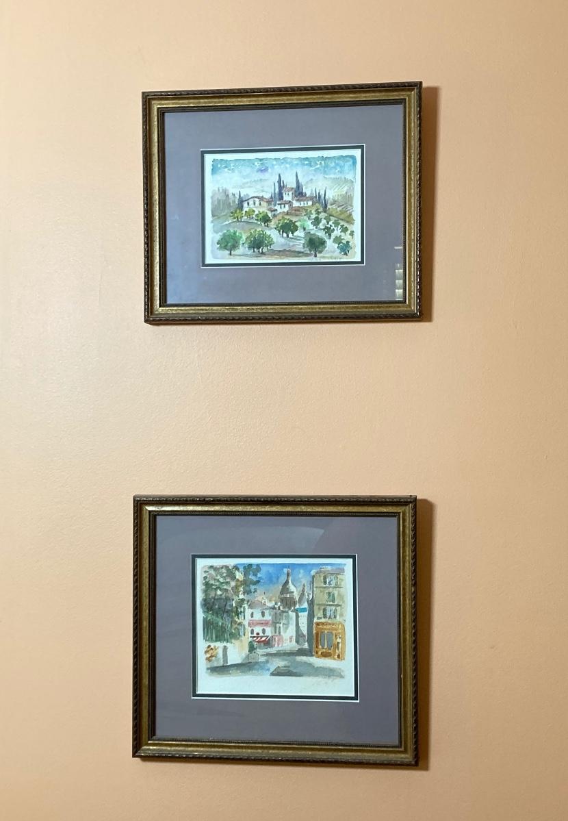 LOT 123: Pair of Signed Watercolor Wall Hangings