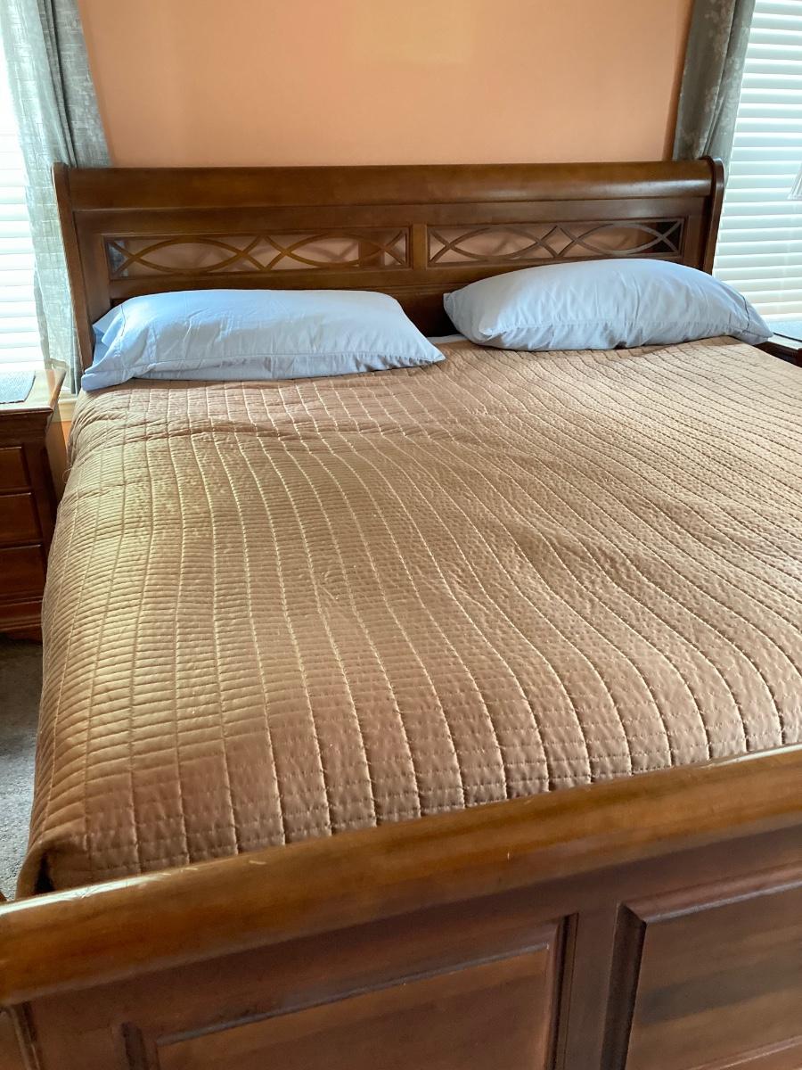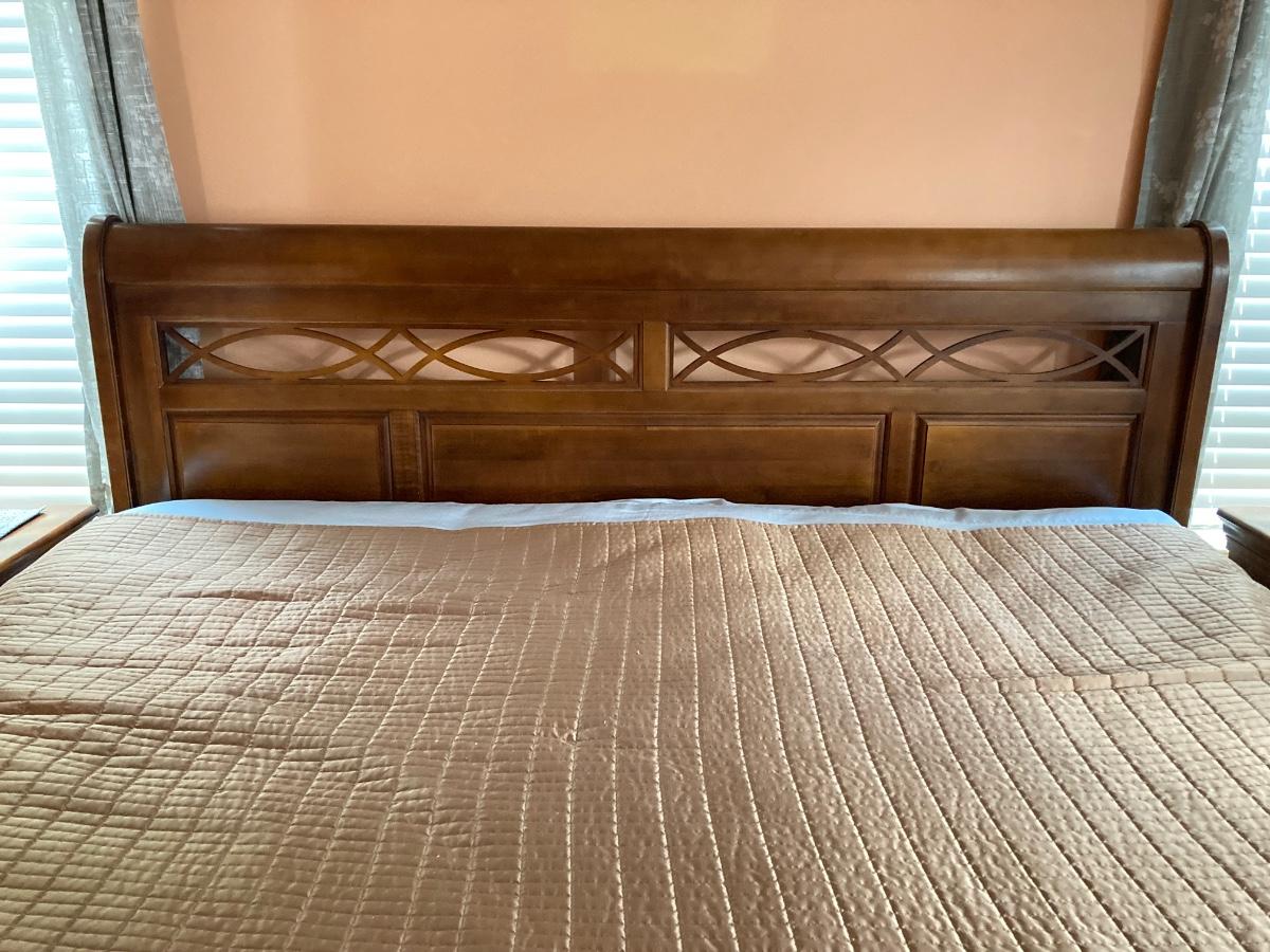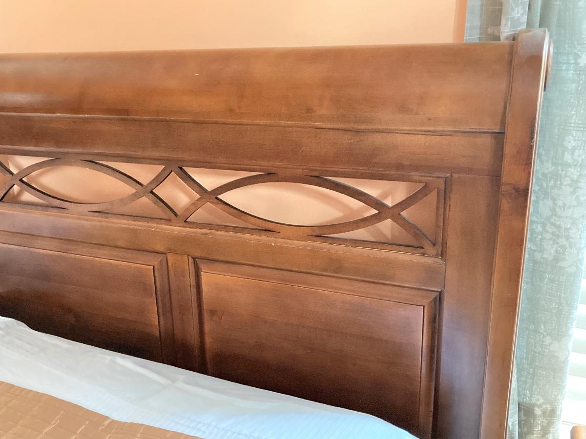 LOT 126: Five Piece Wood Bedroom Suite - King Size Frame, Two Dressers and 2 Night Stands