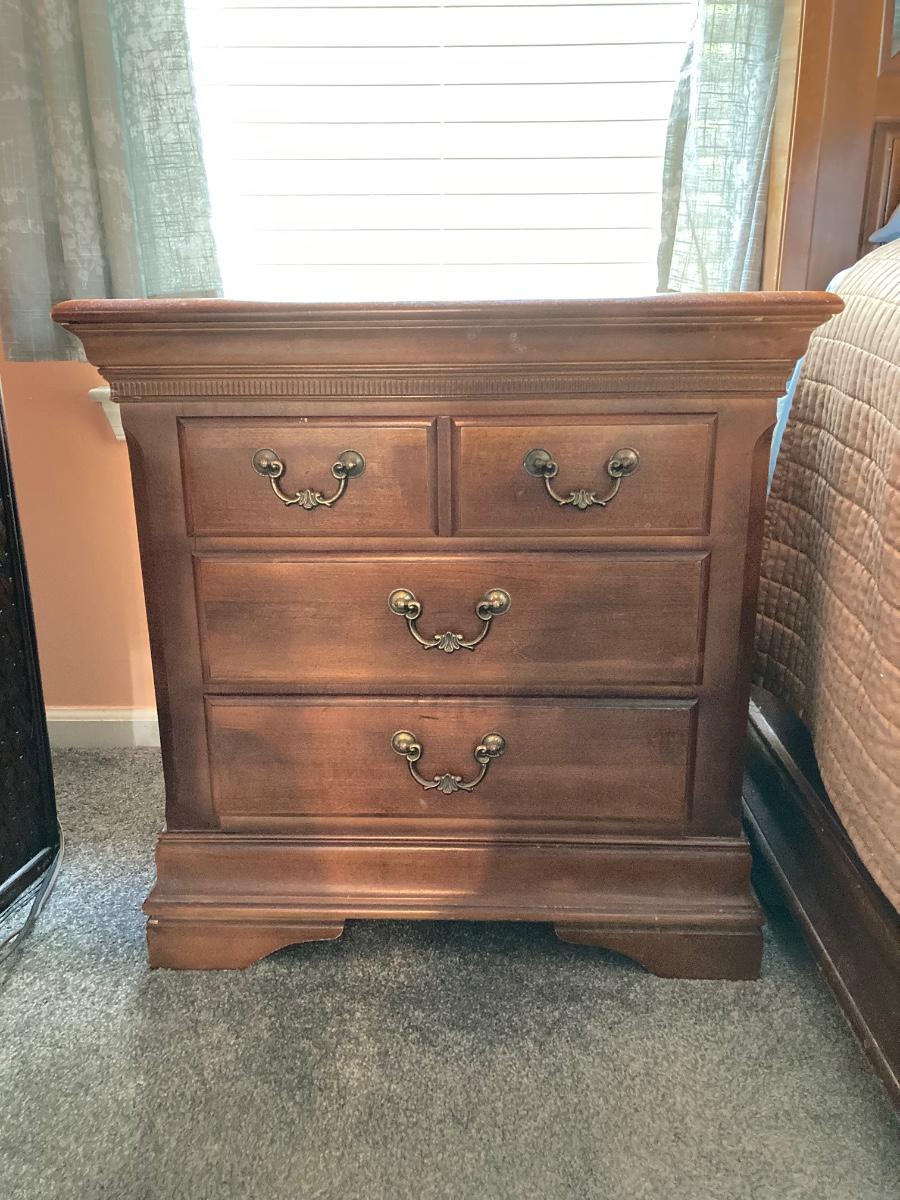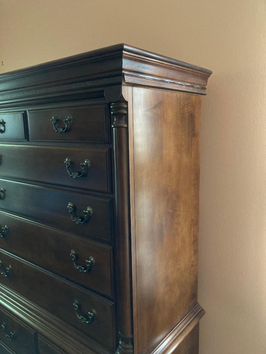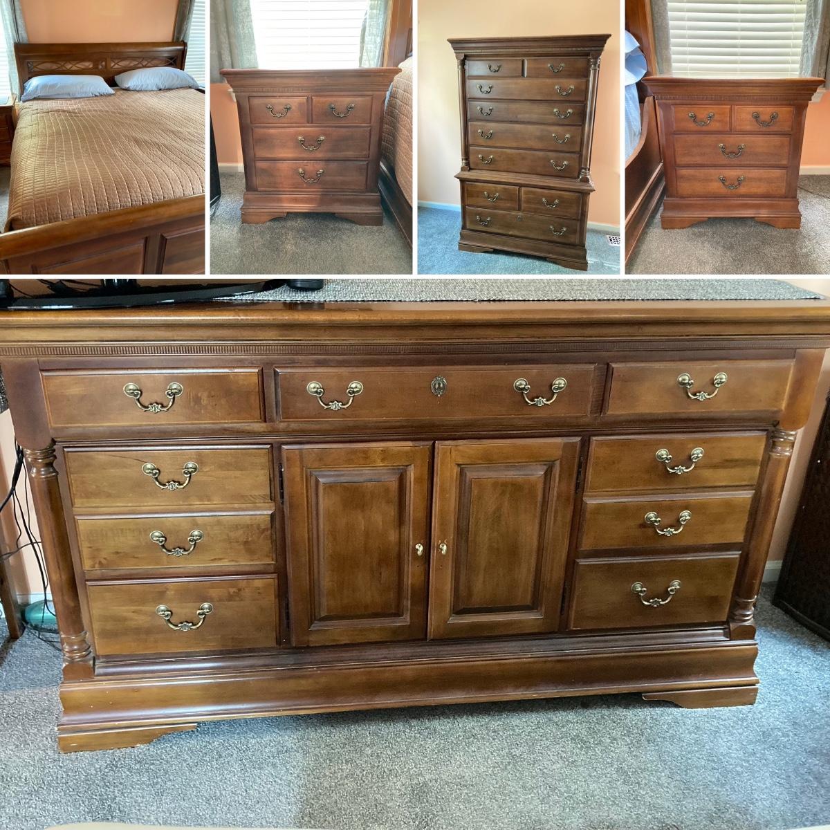 LOT 126: Five Piece Wood Bedroom Suite - King Size Frame, Two Dressers and 2 Night Stands