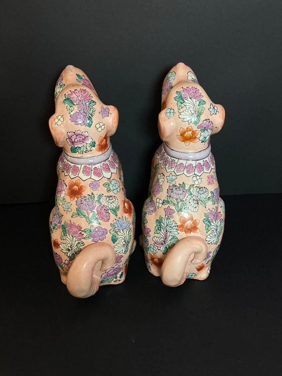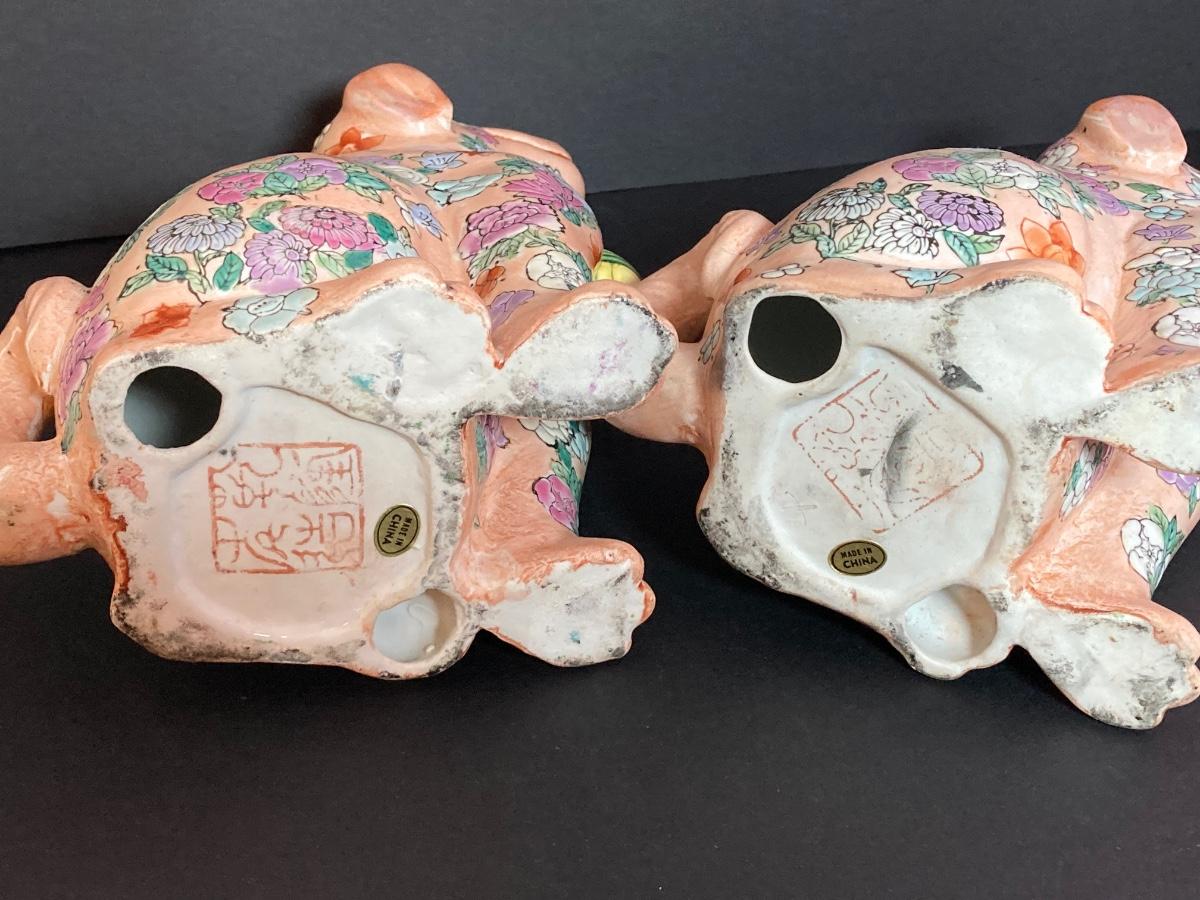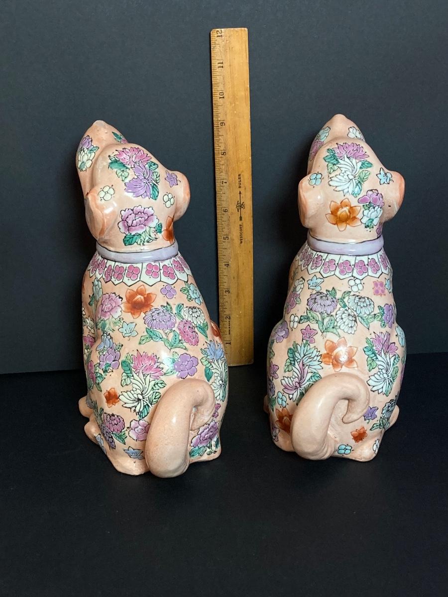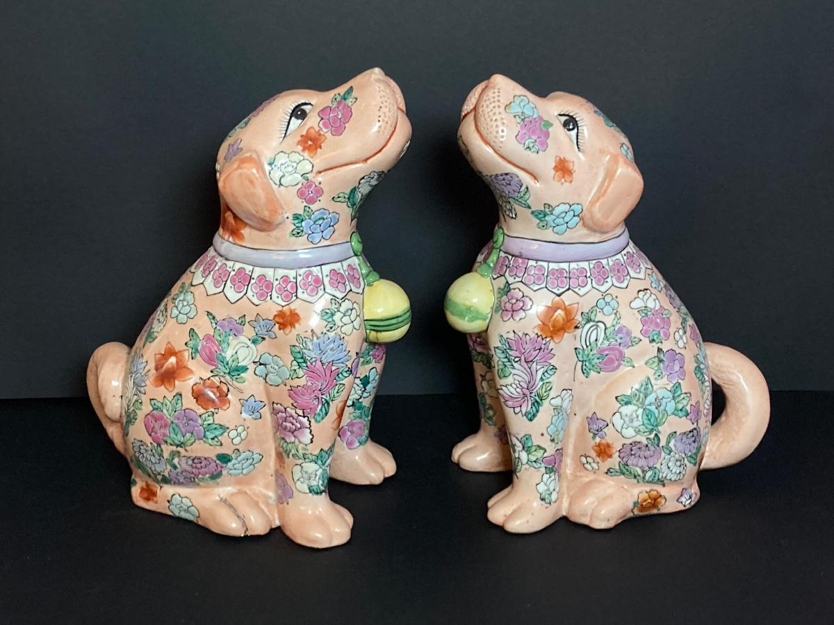 LOT 130: Pair of Colorful Asian Floral Painted Dog Sculptures
