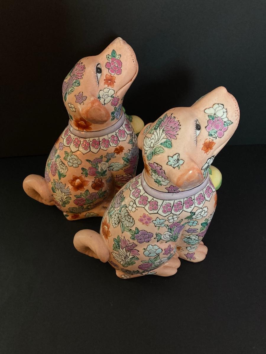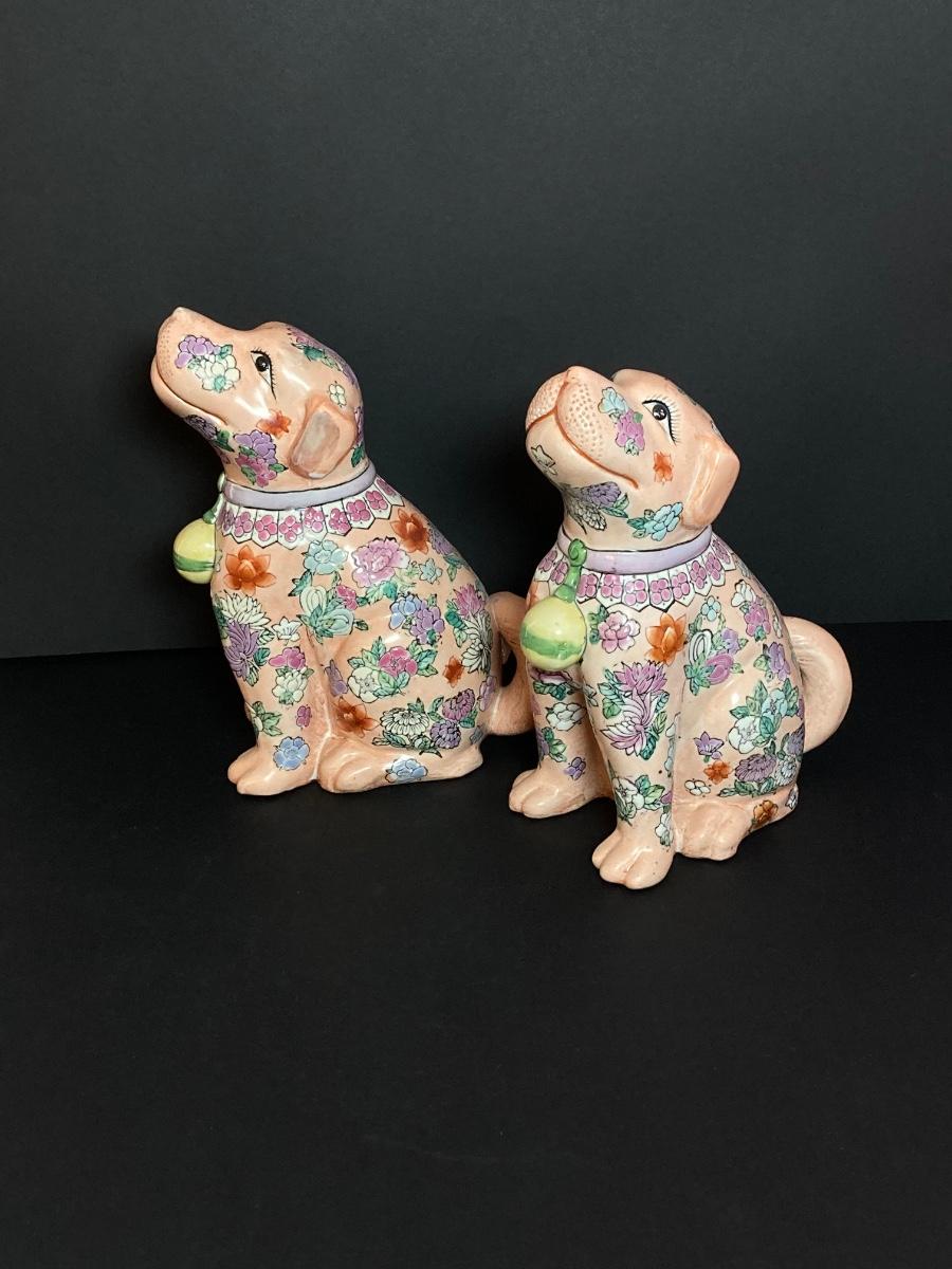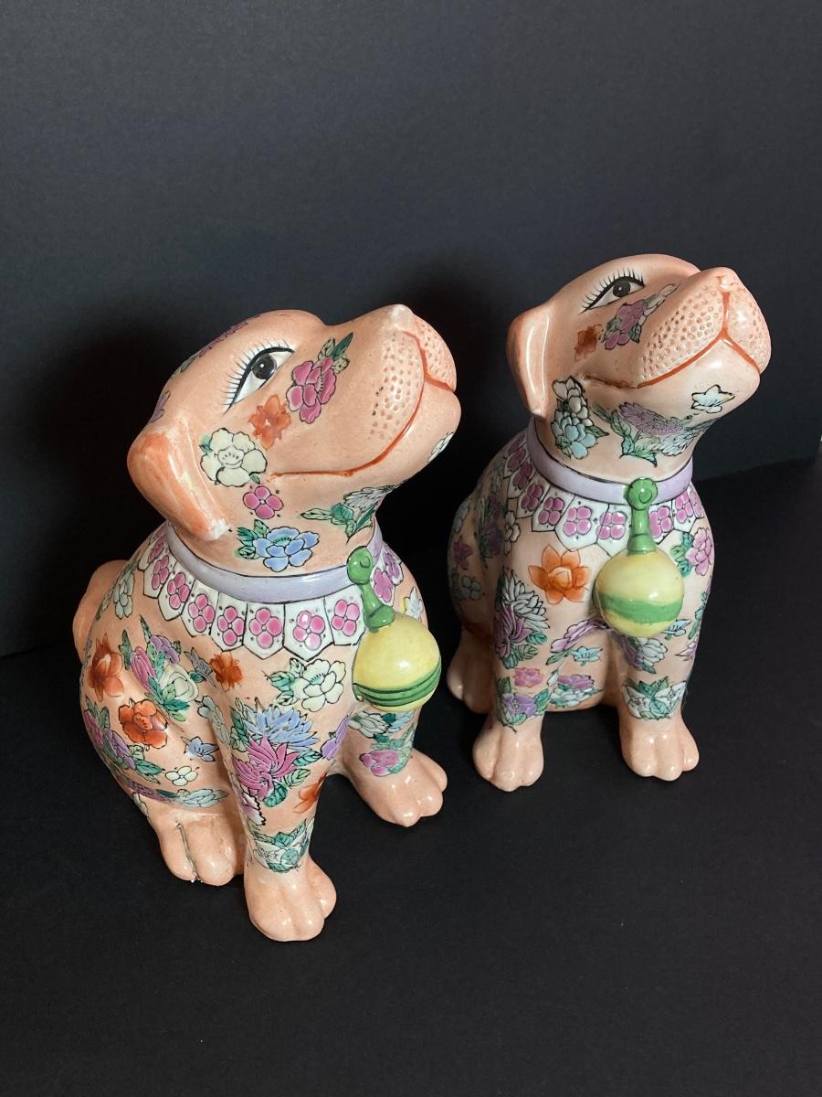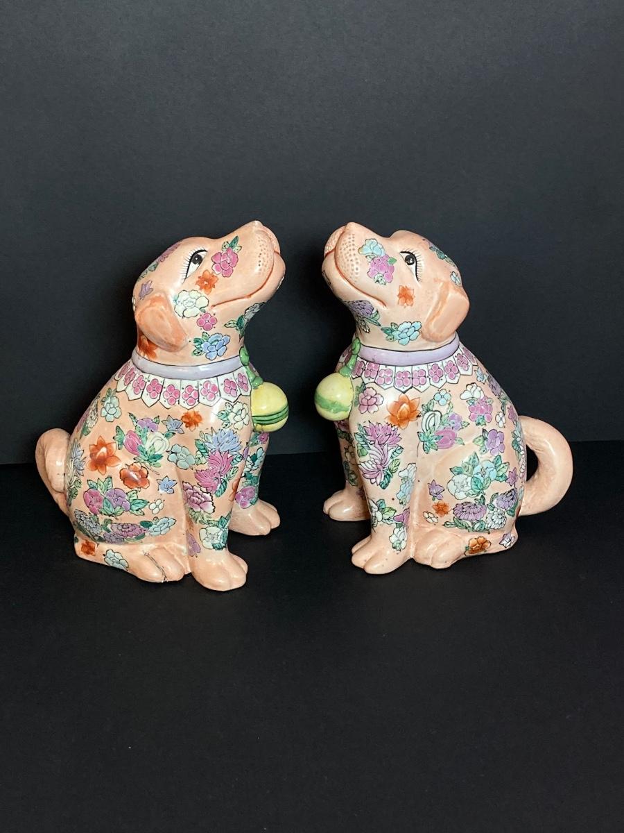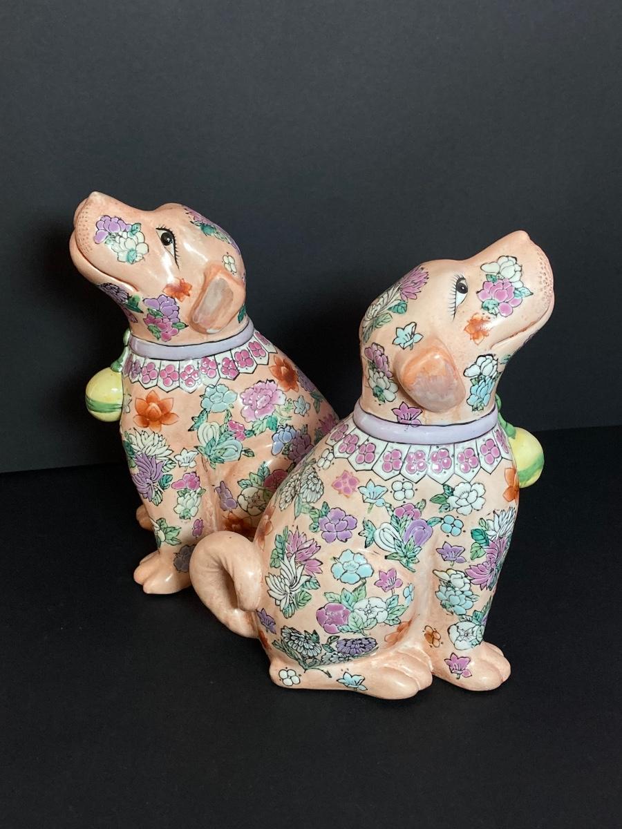 LOT 130: Pair of Colorful Asian Floral Painted Dog Sculptures