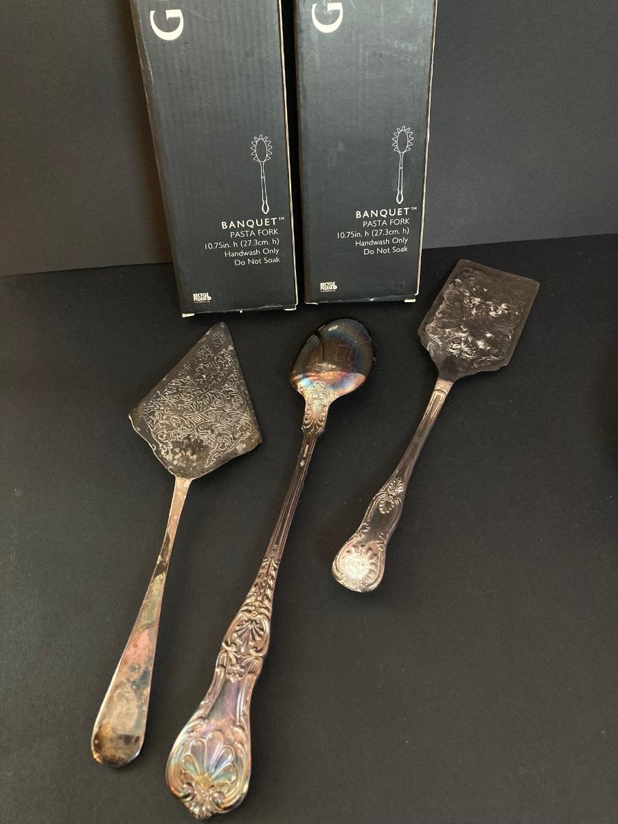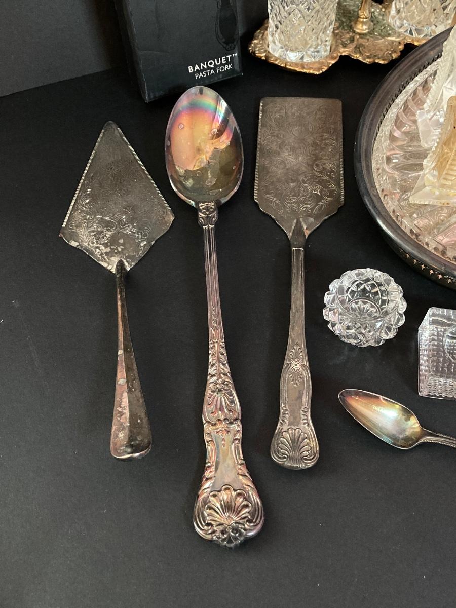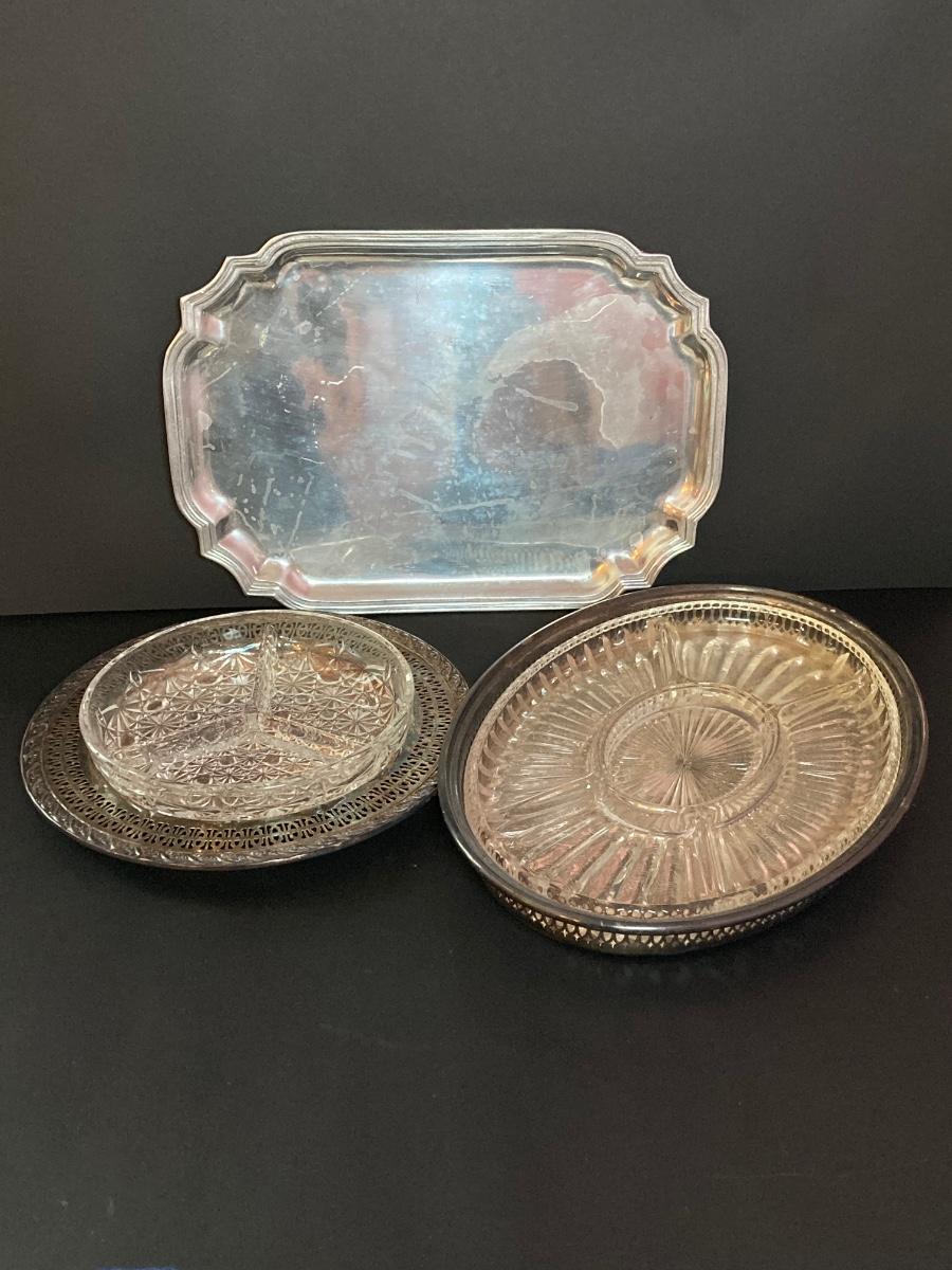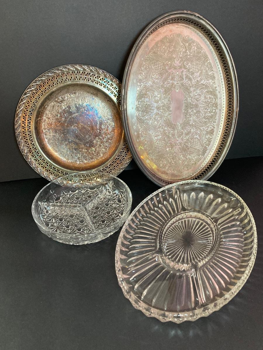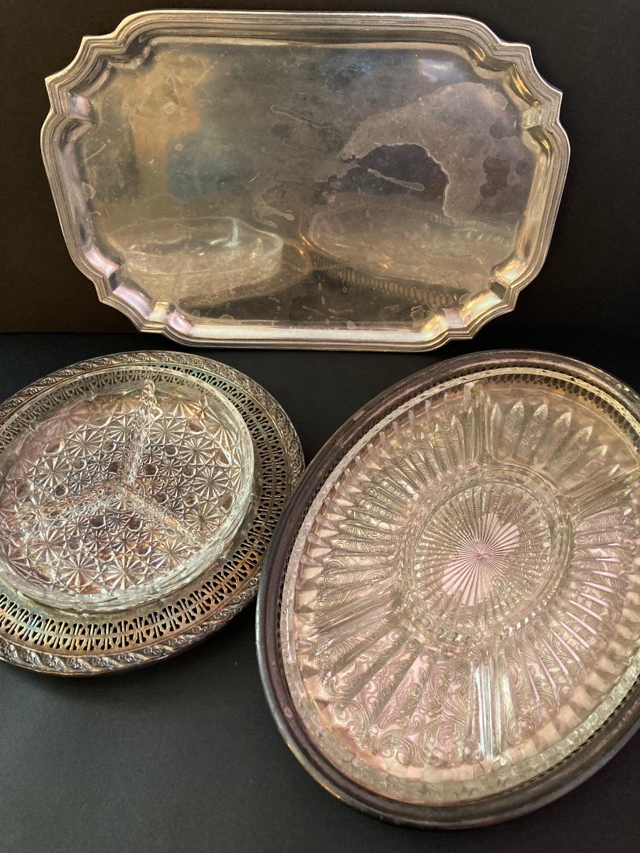LOT 138: Large Serving Collection - Silver Plate, Pewter, Gorham, Cut Glass and More
