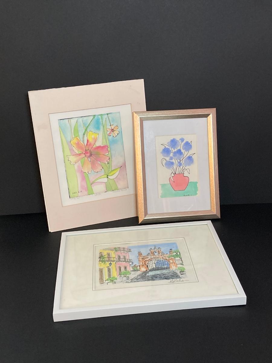LOT 140: Collection of Signed Water Color Wall Hangings - "Laud", Wilfred Labiosa and Rosetta C.