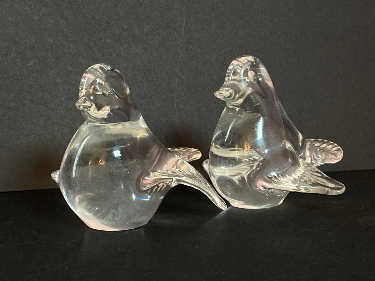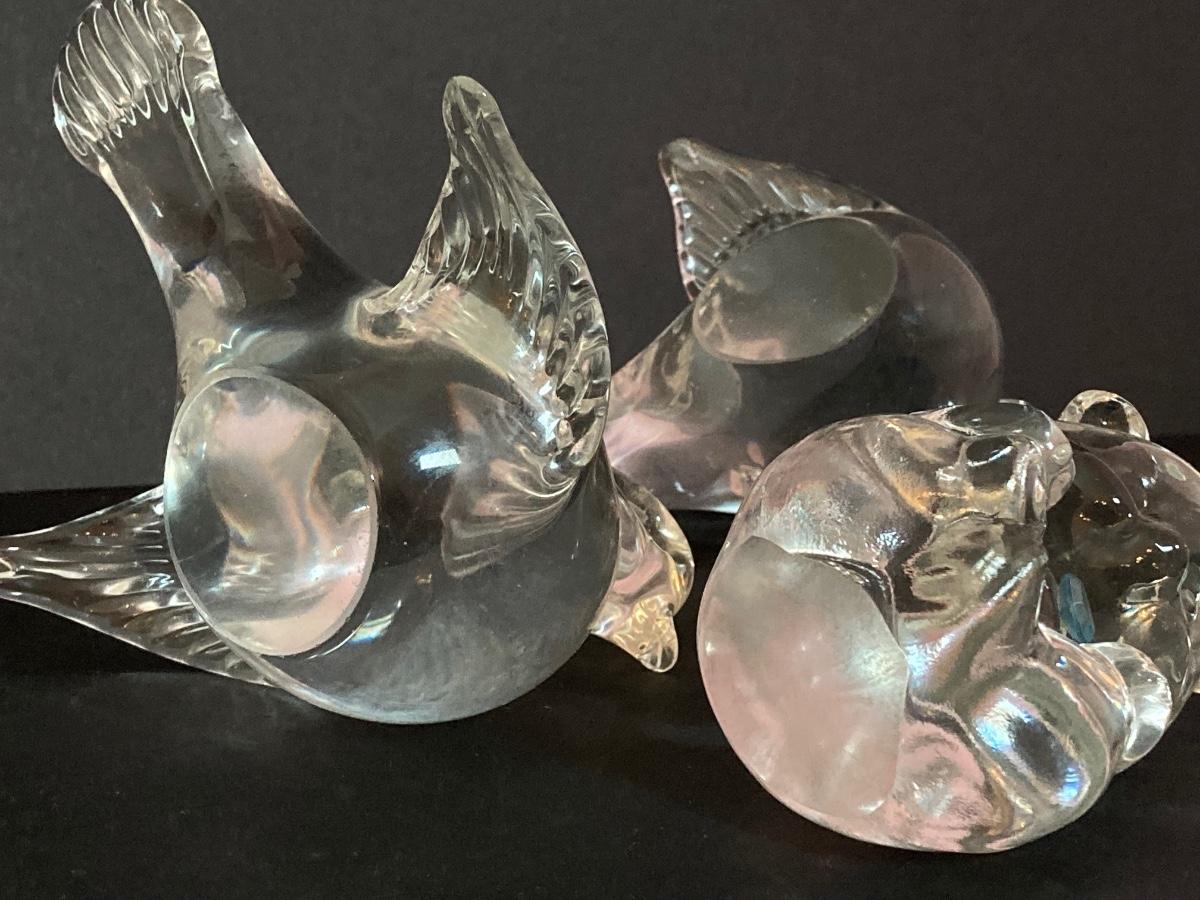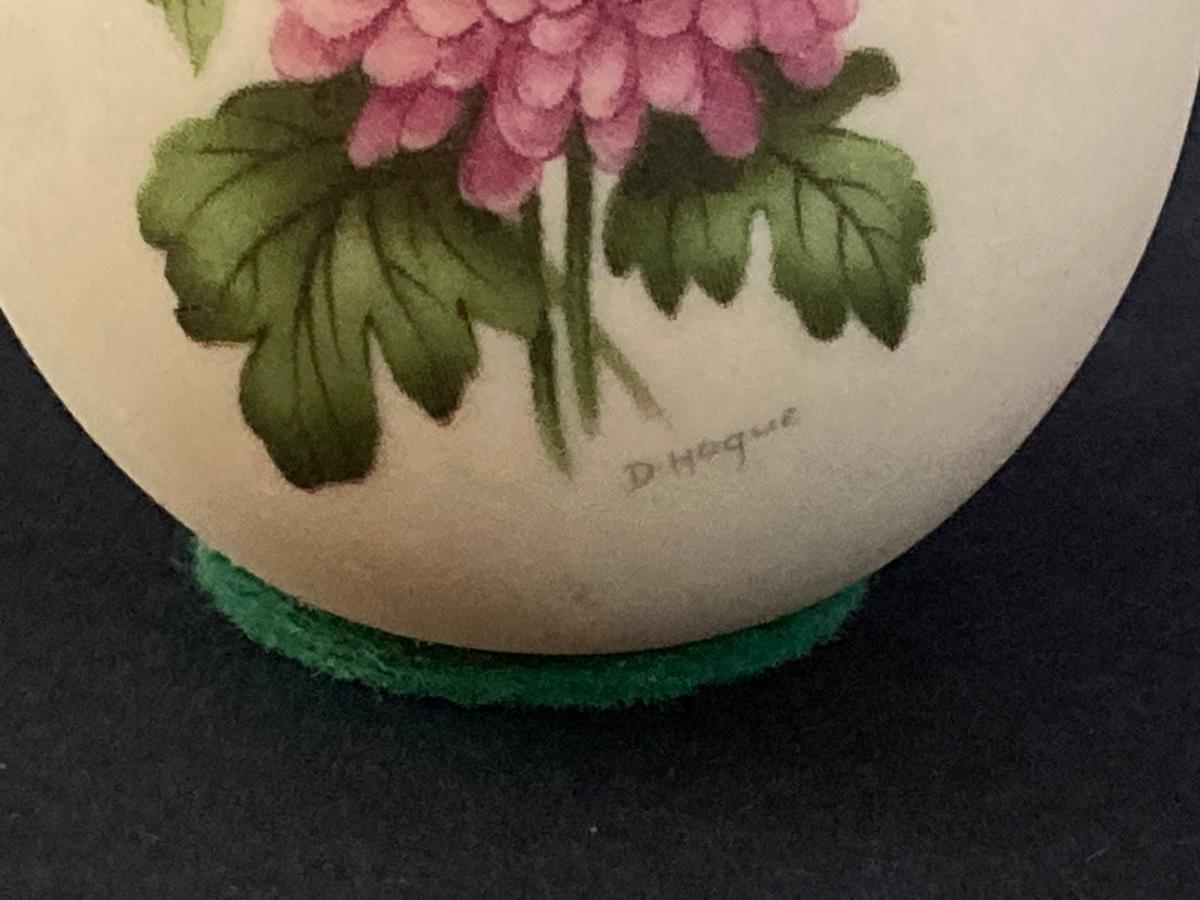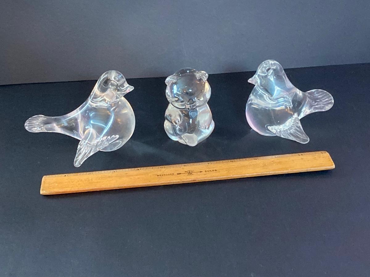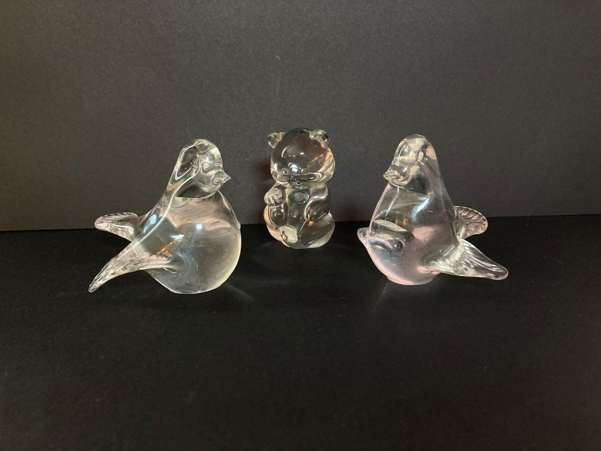 LOT 141: Signed Ivory Satin Hand Painted Egg (D. Hague), Glass Birds & Bear Figurines & Mikasa Picture Frames