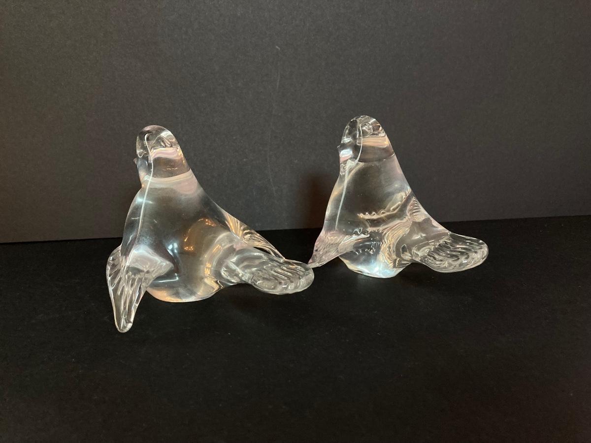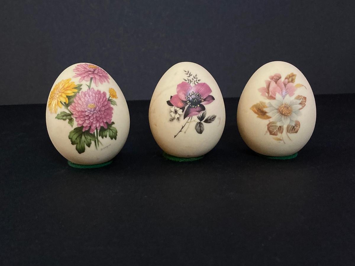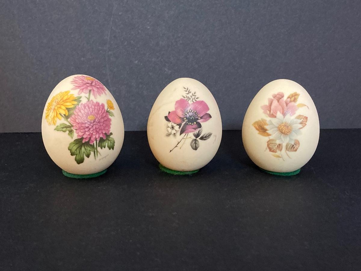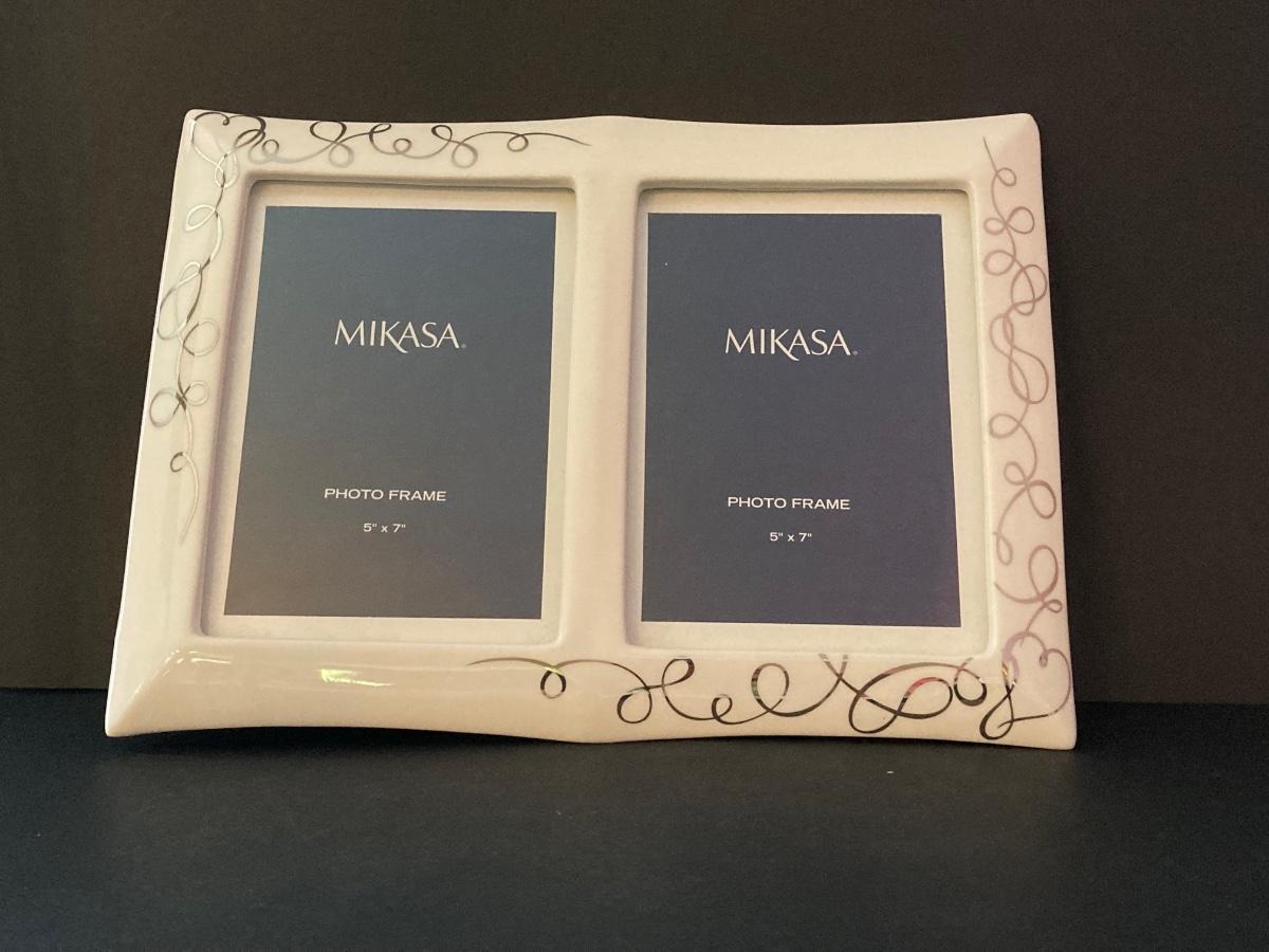 LOT 141: Signed Ivory Satin Hand Painted Egg (D. Hague), Glass Birds & Bear Figurines & Mikasa Picture Frames