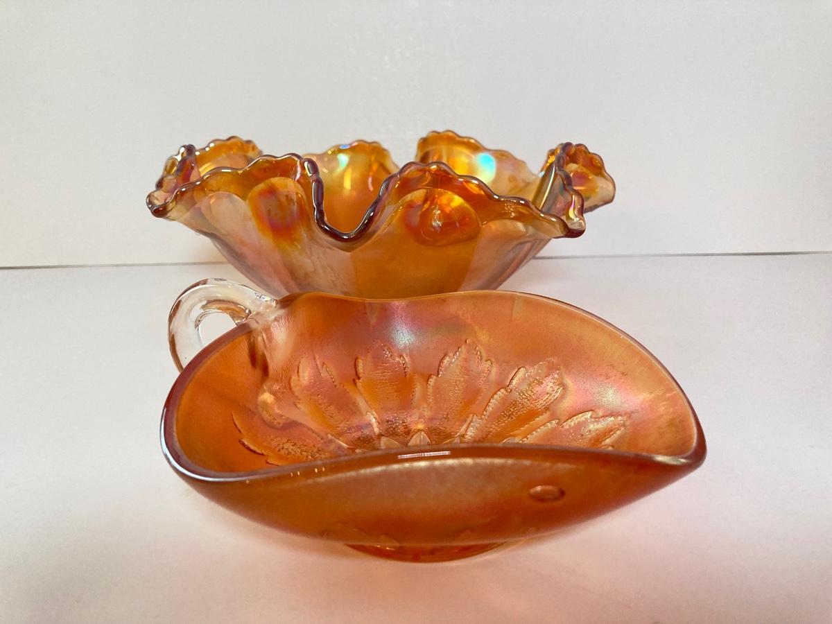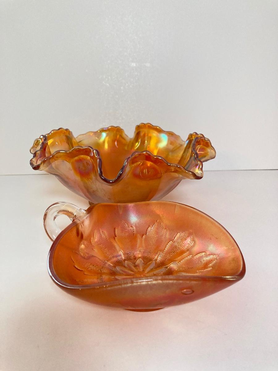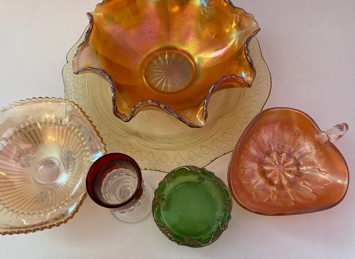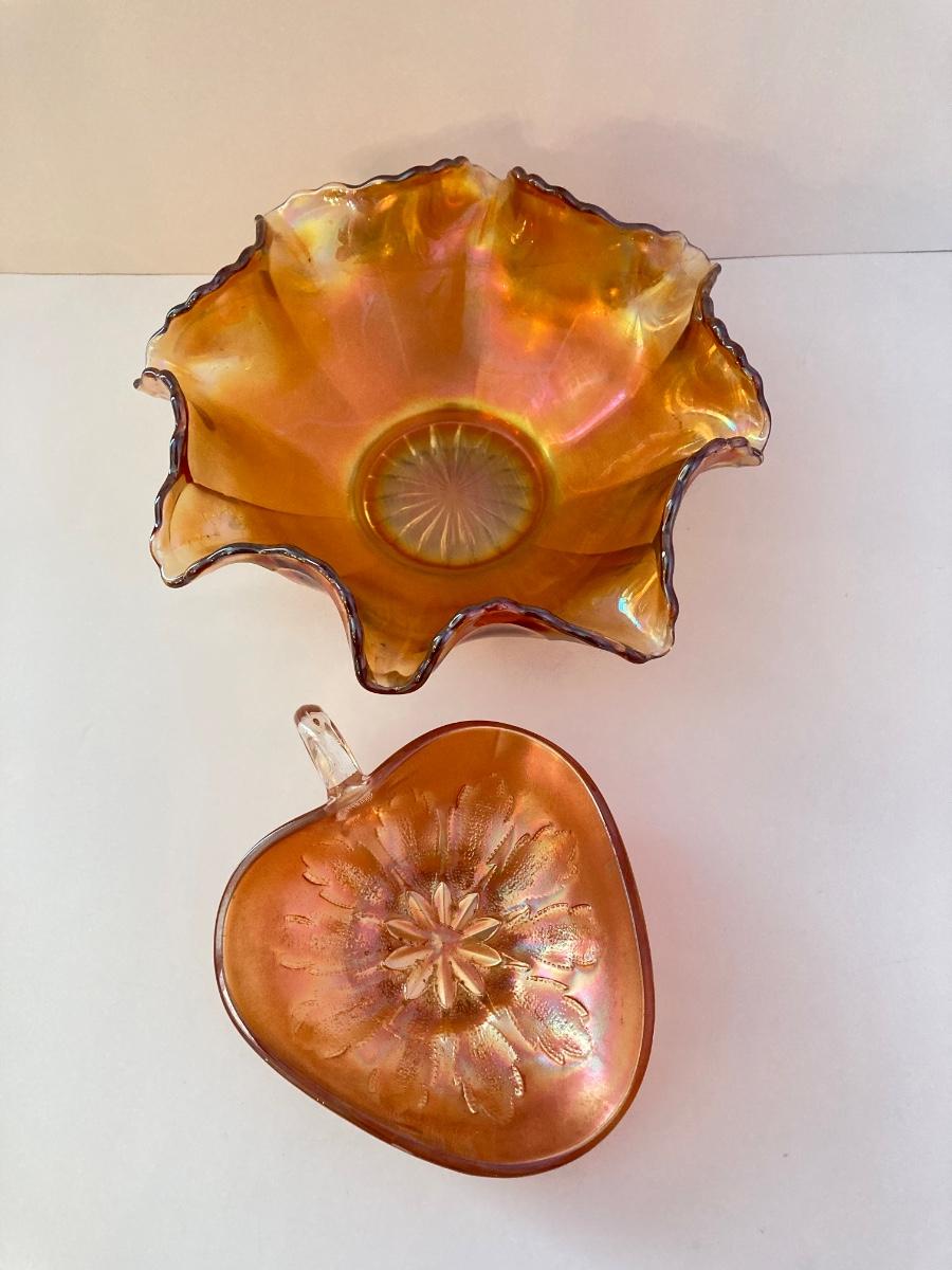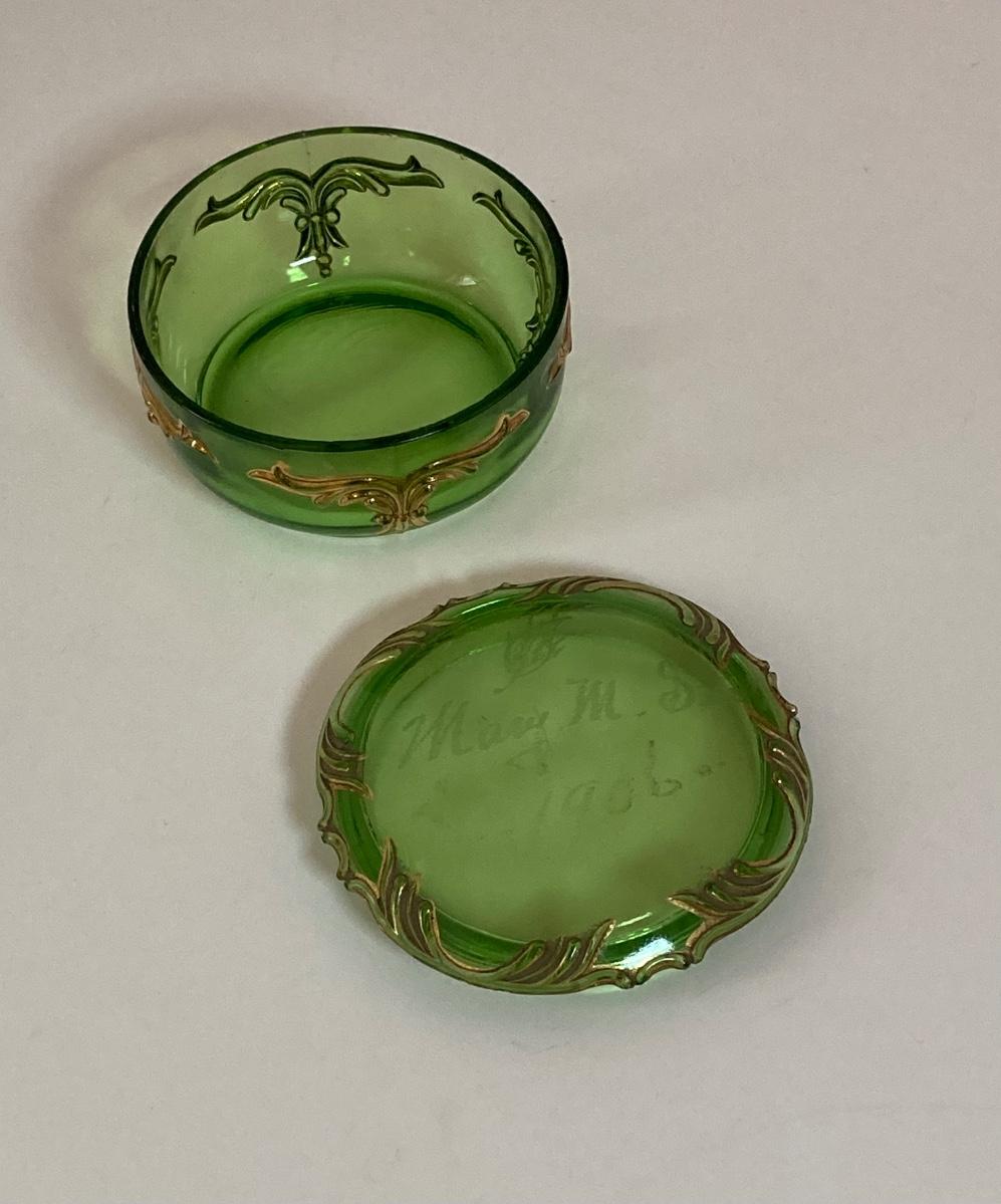 LOT 142: Collection of Antique / Vintage Glass - Carnival, Etched Personalized Trinket Dish, Berwick PA Souvenir