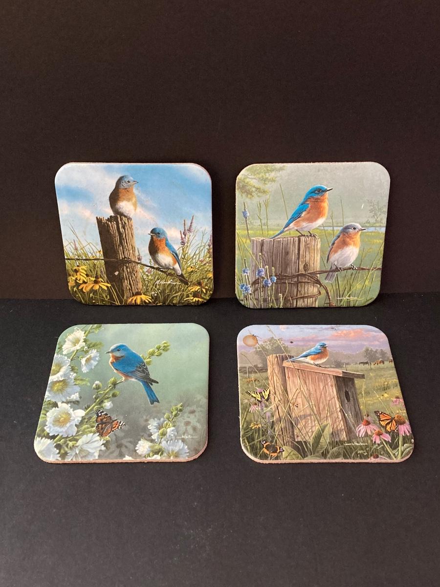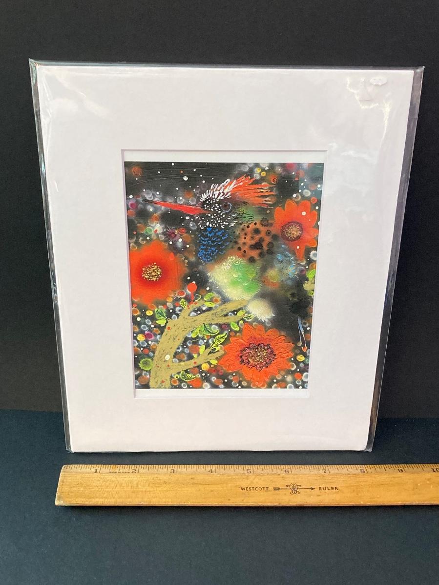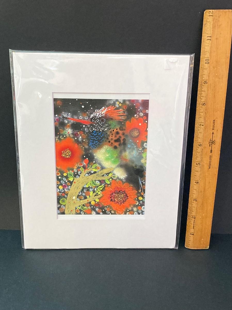 LOT 146: Bird Themed Collection - Painting by Artist Enzhao Liu, Bird Books, Coasters and Celestron Binoculars