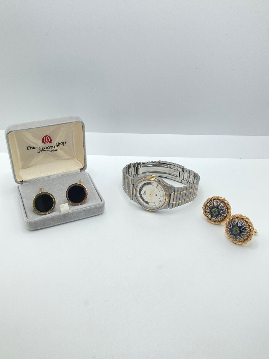 LOT 153: Seiko Watch and Two Pair of Vintage Cufflinks