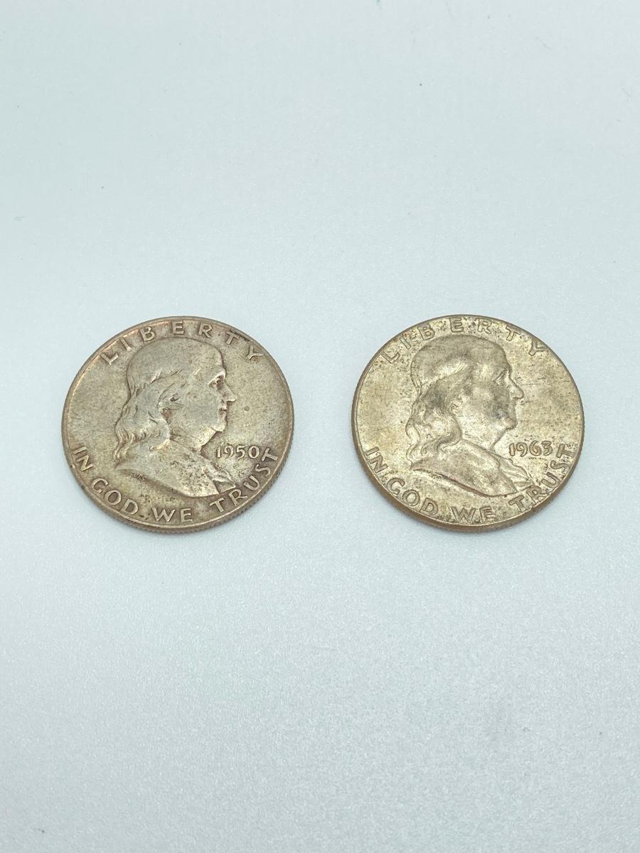 LOT 160: Two Silver Franklin Half Dollar Coins