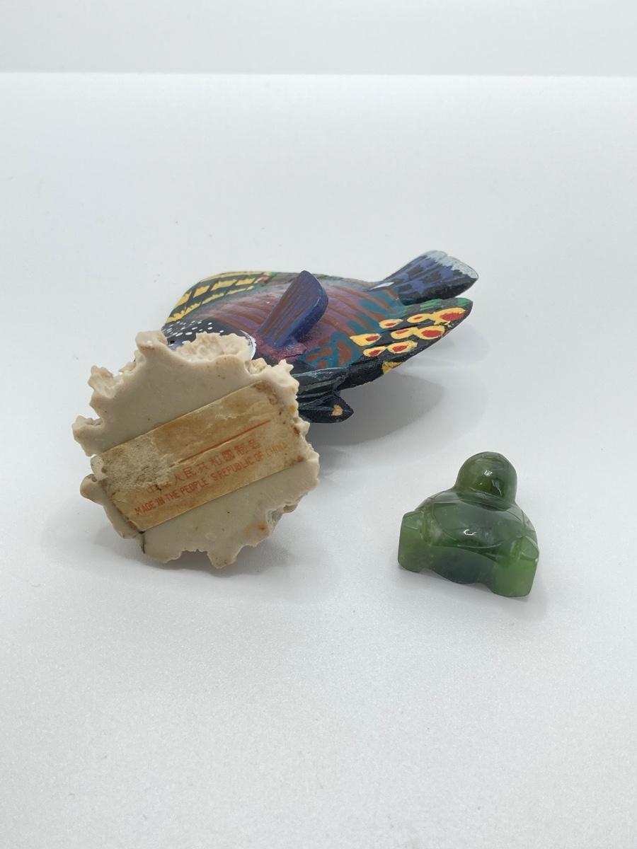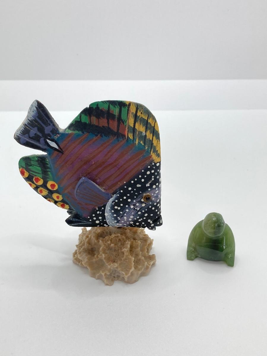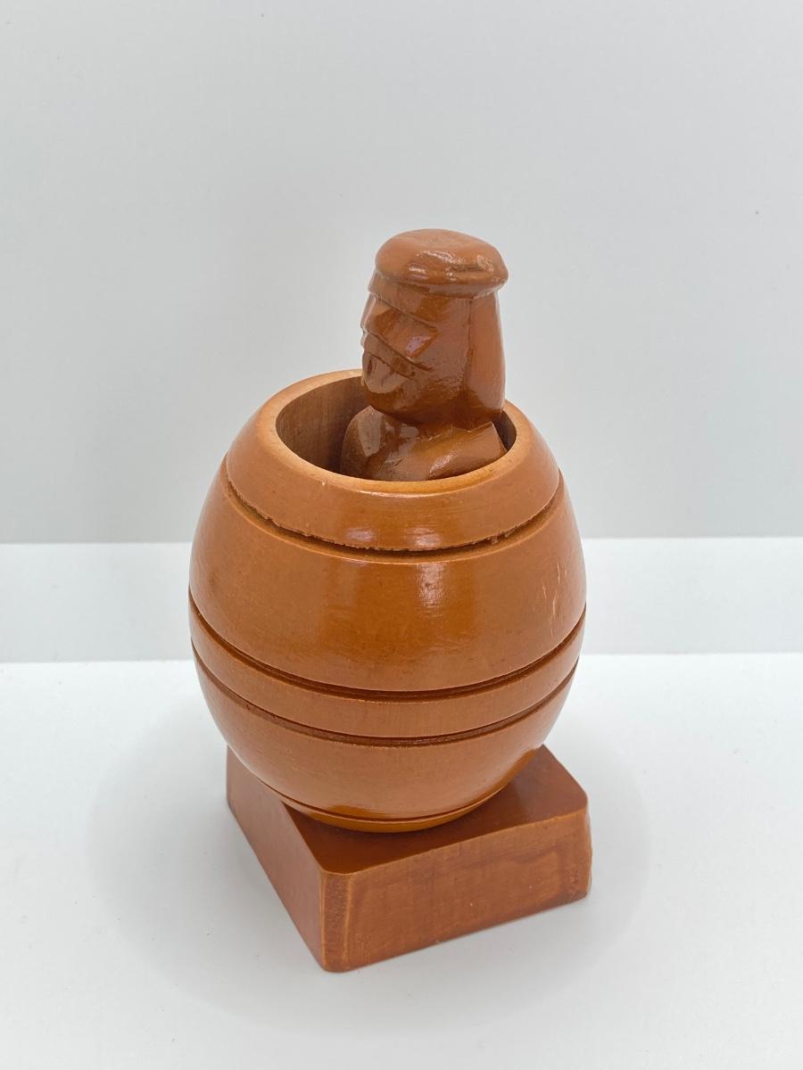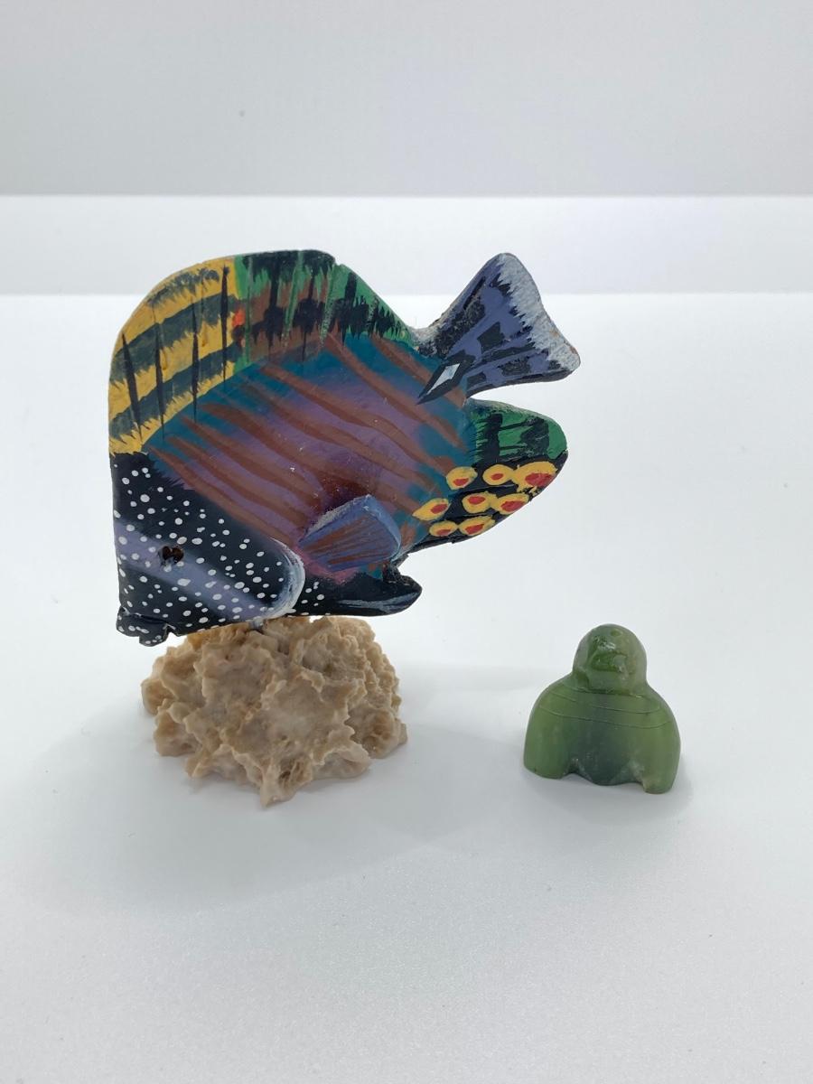 LOT 162: Vintage Collection - Pocket Knives, Honolulu Hawaii Coin, Miniature Buddha, Painted Tropical Fish and Novelty Carved Wooden Barrel with Naked Man